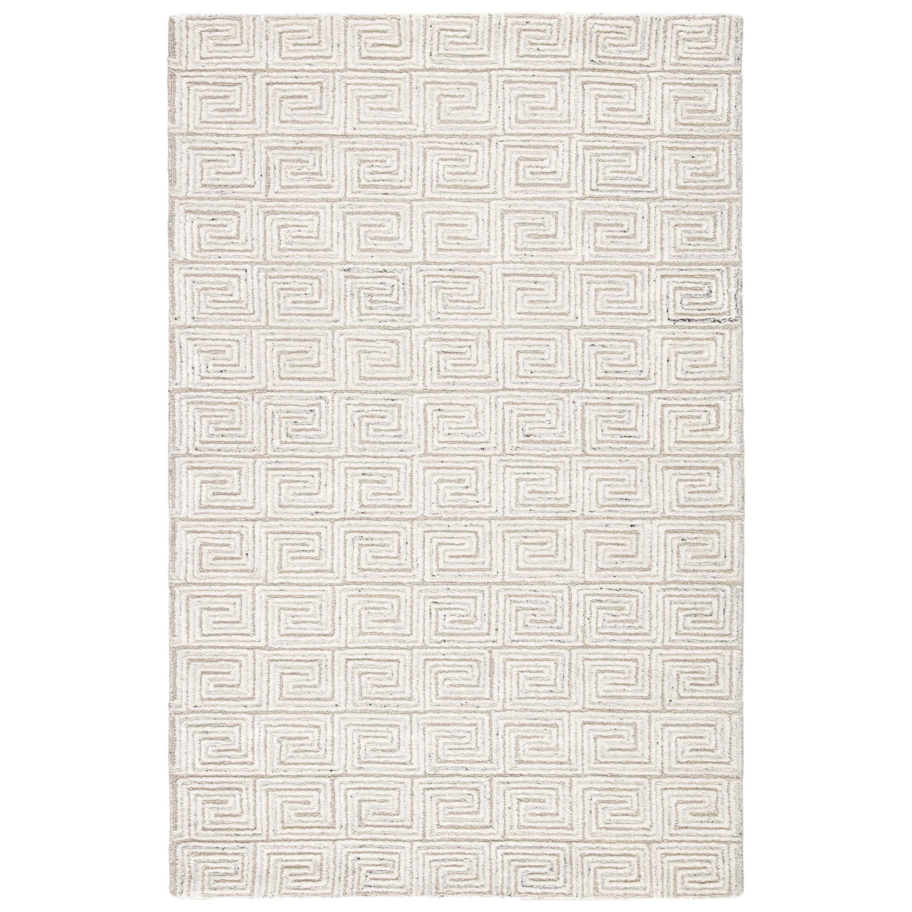 The Capital collection takes classic motifs to a whole new level of chic. The Harkness area rug showcases a striking Greek key design in a texture-rich looped and cut pile. Viscose adds a subtle luster and soft feel to the natural wool fibers, while a stunning white colorway with flecks of gray makes a glam statement.