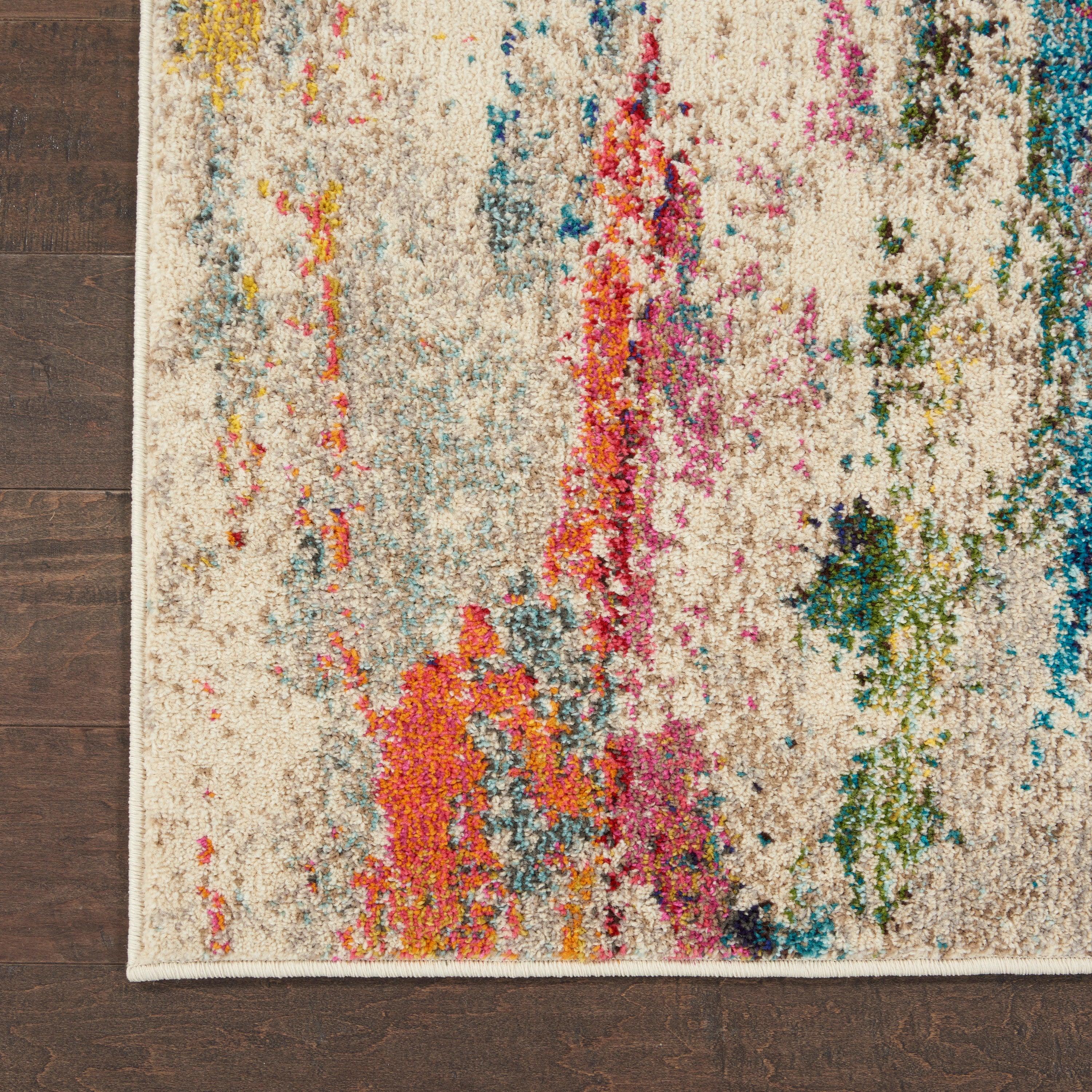 mesmerizing Celestial CES12 Ivory Multi area rug from Nourison's celestial-inspired collection. Dive into cosmic consciousness as you bring this heavenly piece into your space. The rug boasts rich, saturated colors that blend seamlessly to create unique and vivid designs, exuding a dramatic beauty like no other.