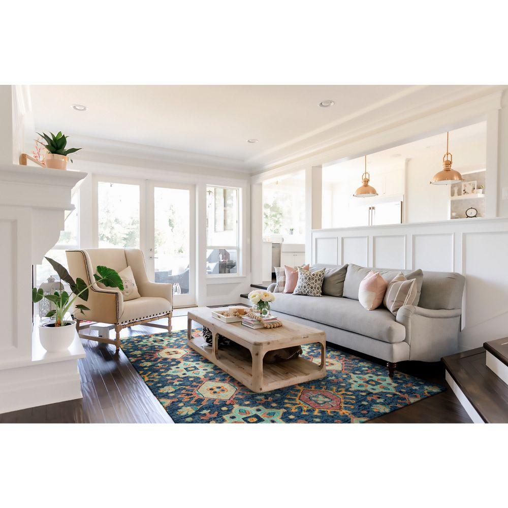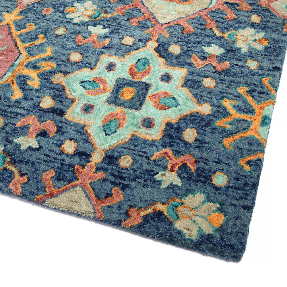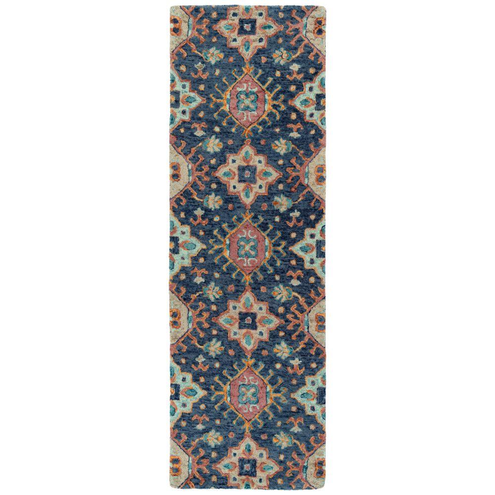 Chancellor CHA10 22 Navy from the Chancellor Collection, drawing inspiration from the opulent fashion of the French baroque era. The intricate patterns and vibrant hues exude elegance, making a statement in any space. Crafted from 100% imported wool using space-dyeing techniques, these hand-tufted rugs boast premium quality. Each rug features a dense pile, meticulously serged by hand, and backed with Kaleen's durable cotton canvas for longevity.