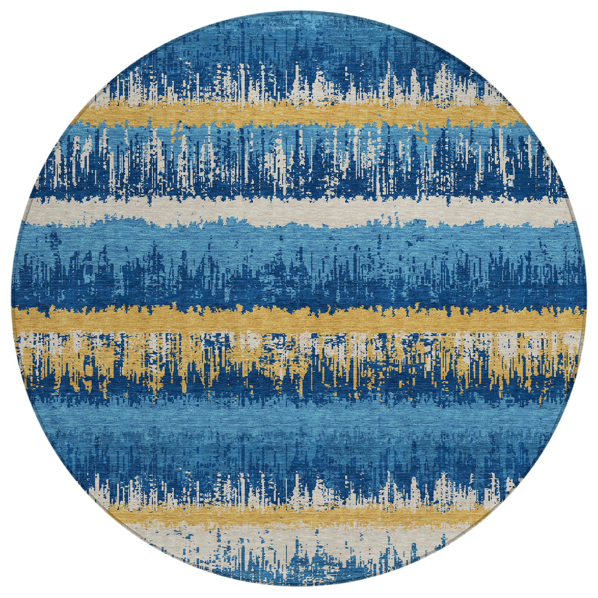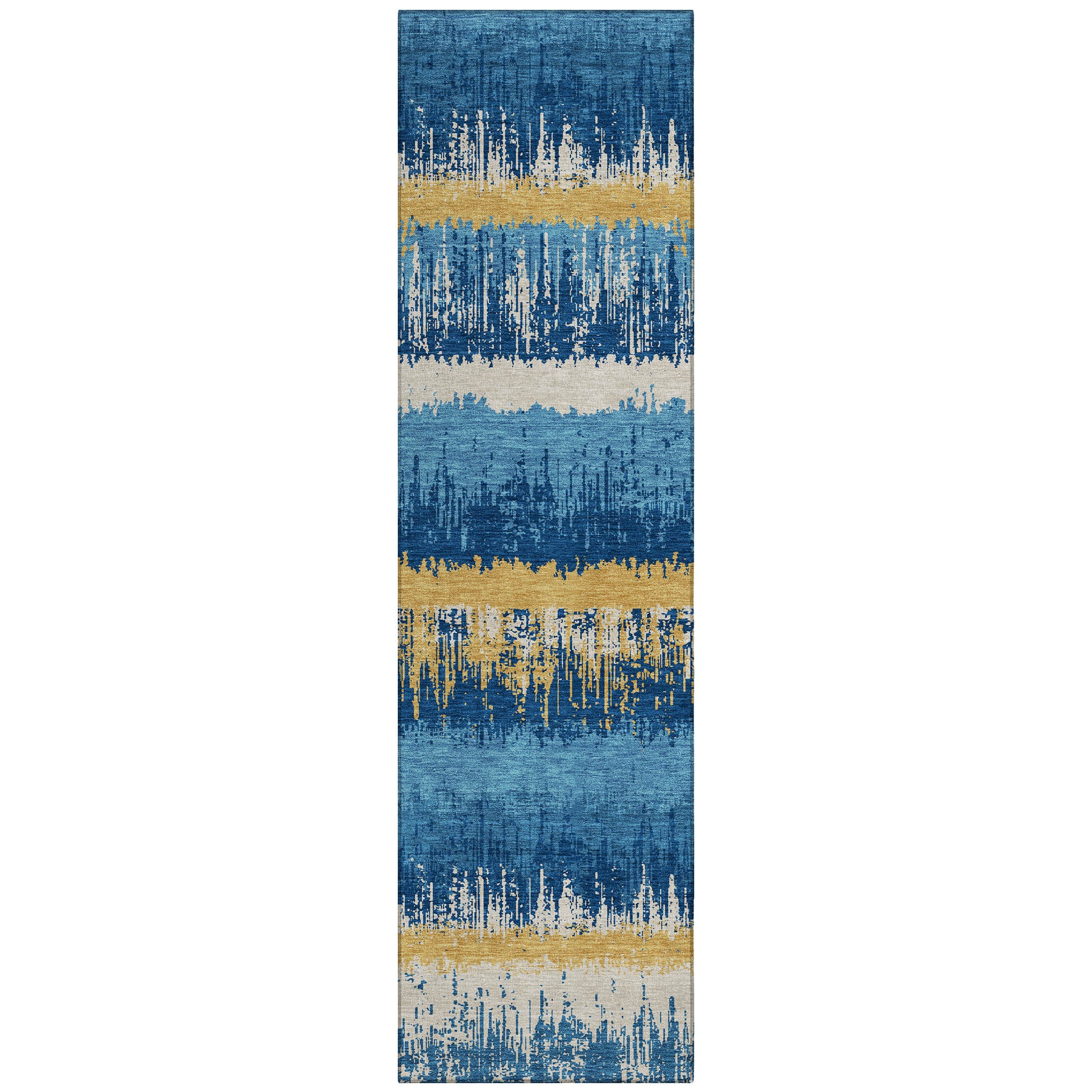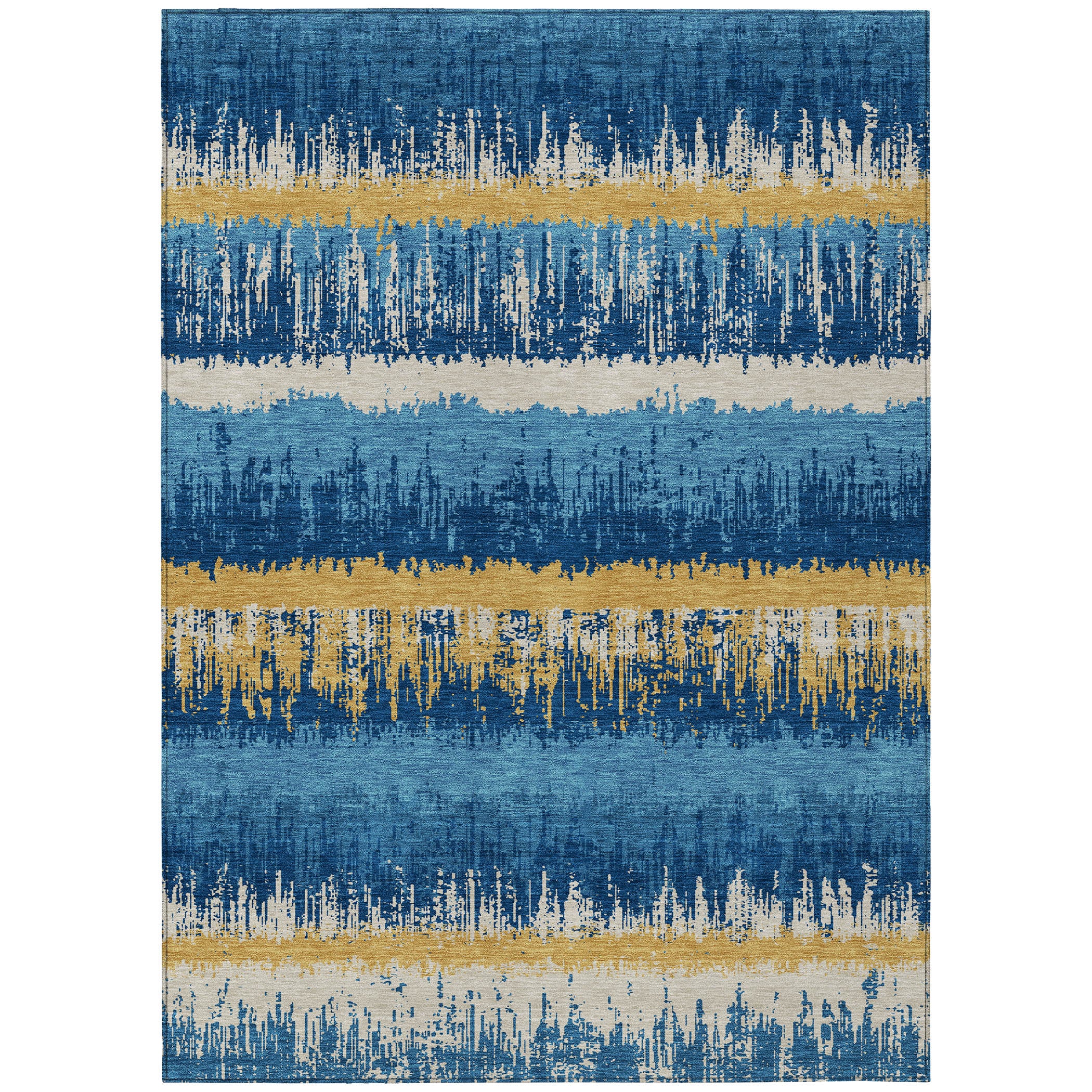 The sleek horizontal stripes and subtle drip effects of our transitional area rug will elevate your homes aesthetic with modern sophistication. This versatile design seamlessly integrates into any space. Crafted to last, its UV stabilized for use in both indoor and outdoor environments and boasts an ultra-thin profile for convenience. Additionally, the machine-washable material and pet-friendly quality make it an ideal choice for families looking for both style and practicality.