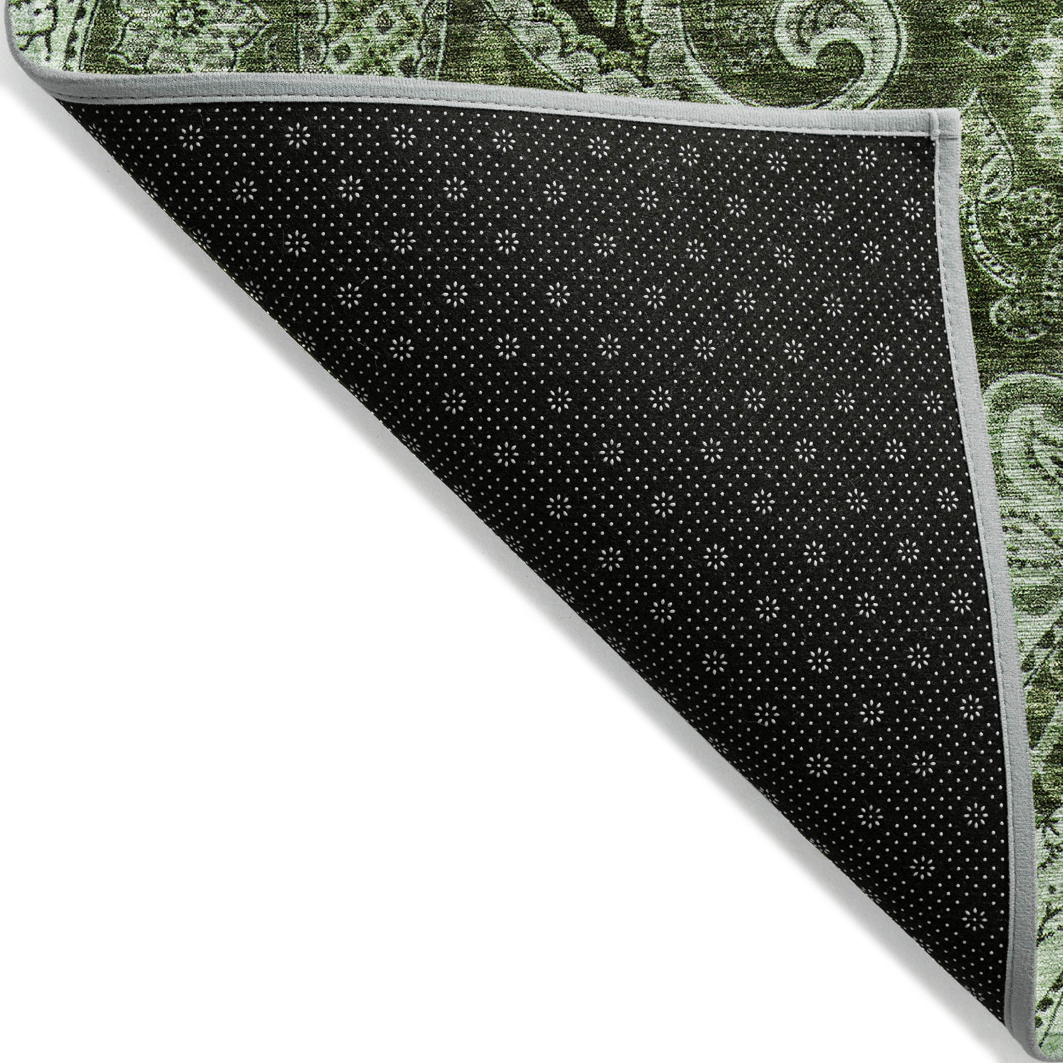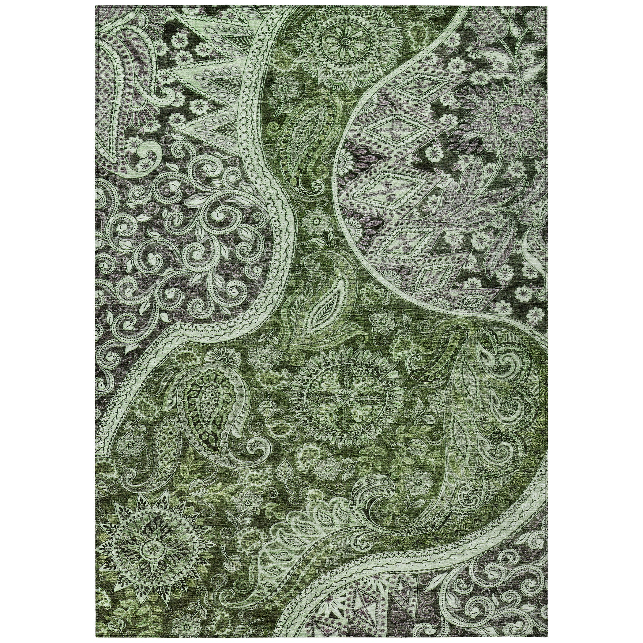 Enhance your living space with our exquisite area rug, featuring a large central swirl surrounded by intricate motifs that capture the eye. This transitional piece beautifully blends classic and contemporary styles, adding a touch of elegance to any room. It's UV stabilized to resist fading indoors or out, ultra-thin for easy placement, machine-washable for hassle-free care, and designed to be family and pet-friendly.