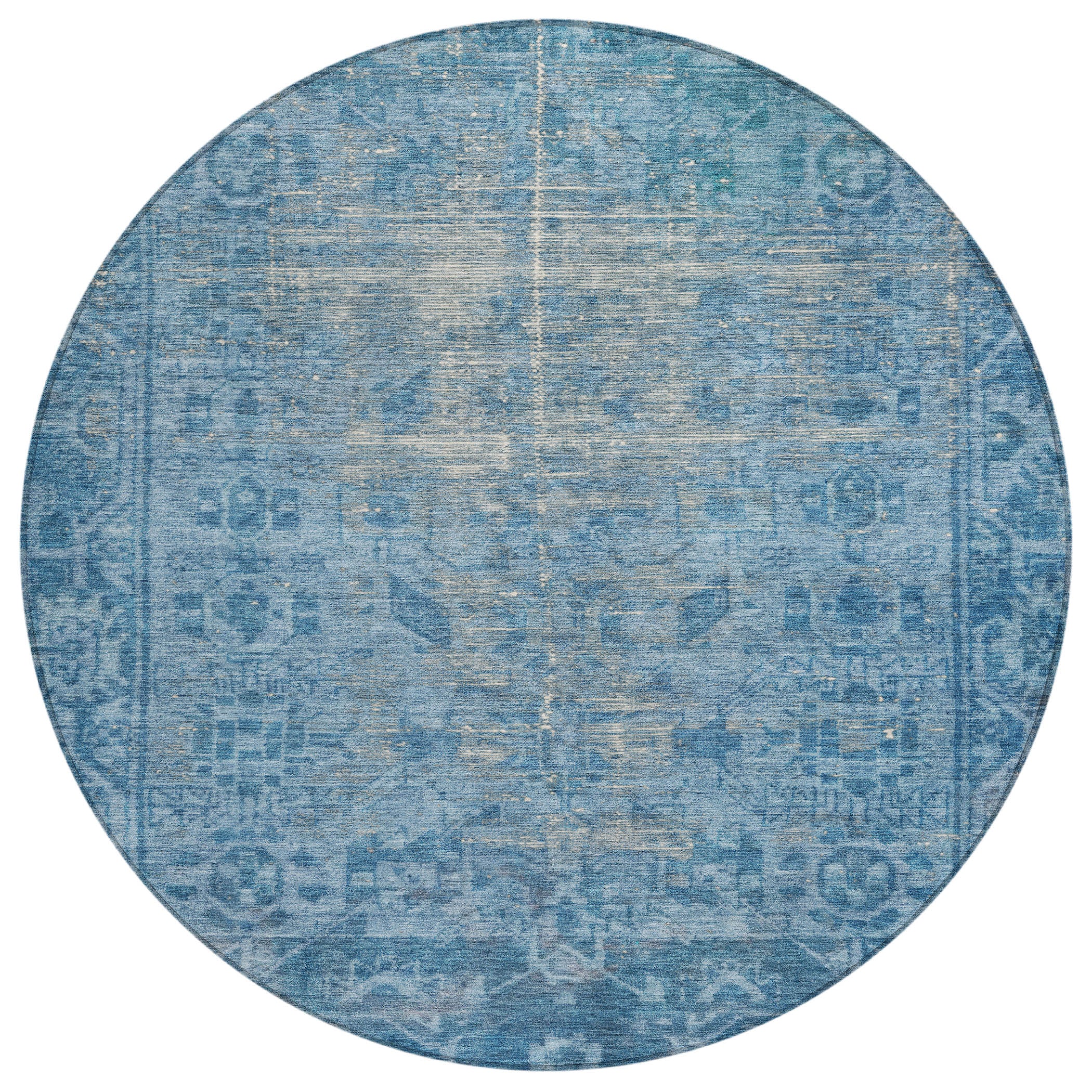 Showcasing a traditional design with distressed motifs and a border, this rug brings timeless elegance to your home. The global pattern enhances its sophisticated appeal. UV stabilized for versatile indoor or outdoor use, the ultra-thin construction ensures effortless maintenance. Machine-washable and family and pet-friendly, it’s perfect for busy households.