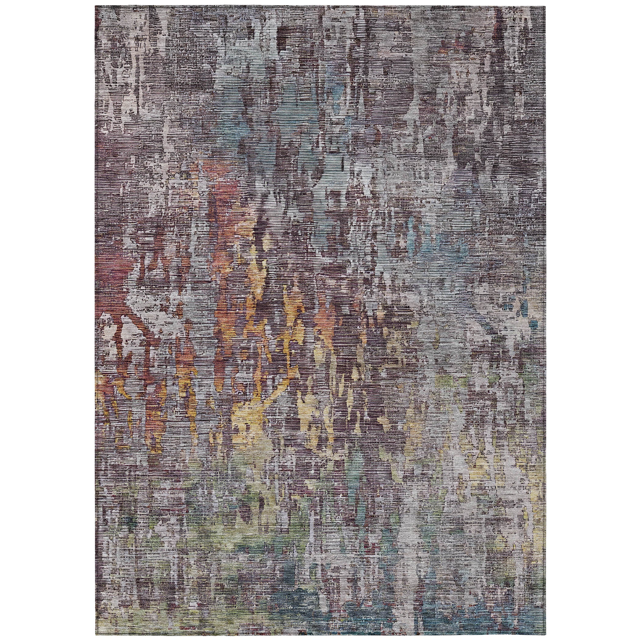 Soft color splashes give this rug a contemporary feel, ideal for transitional style spaces with its modern pattern. The muted tones add a touch of elegance and freshness. UV stabilized for indoor or outdoor use, it ensures lasting appeal. The ultra-thin profile lies flat and is machine-washable for convenience. Family and pet-friendly, this rug merges beauty with functionality.