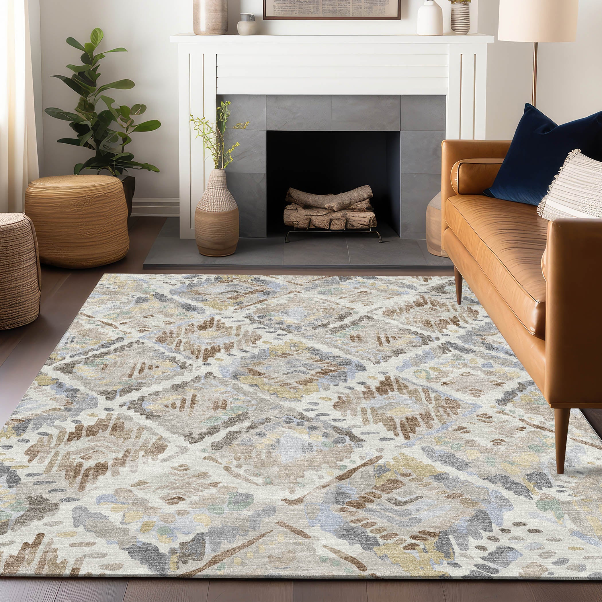 This rug’s large diamond lattice pattern brings a sophisticated yet contemporary feel to transitional interiors. The bold design offers a refined and stylish look, making it adaptable for different settings. Designed with UV-stabilized fibers, it suits both indoor and outdoor use. The ultra-thin build allows for convenient positioning and maintenance, and its machine-washable feature simplifies cleaning. Family and pet friendly, this rug blends elegance and functionality seamlessly.