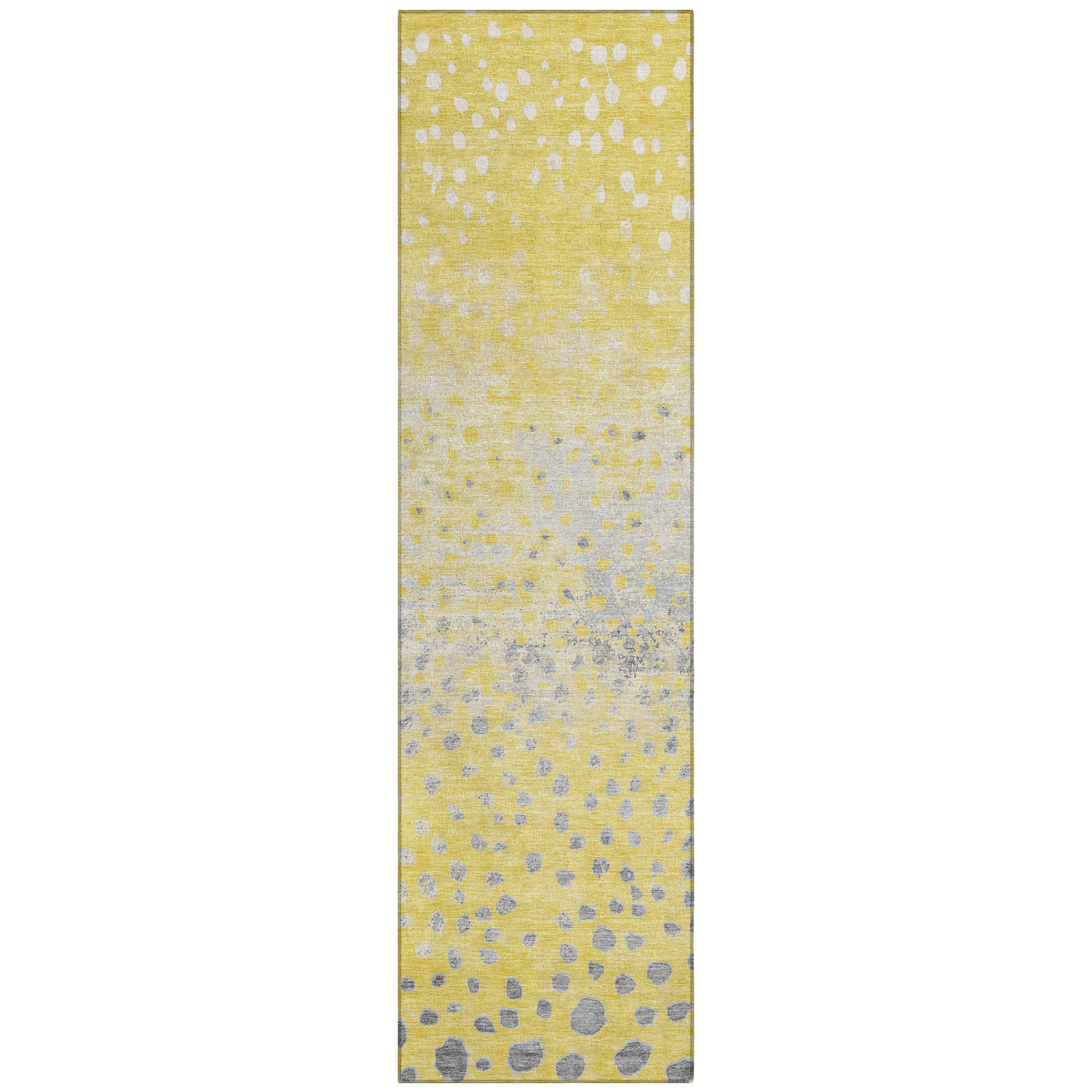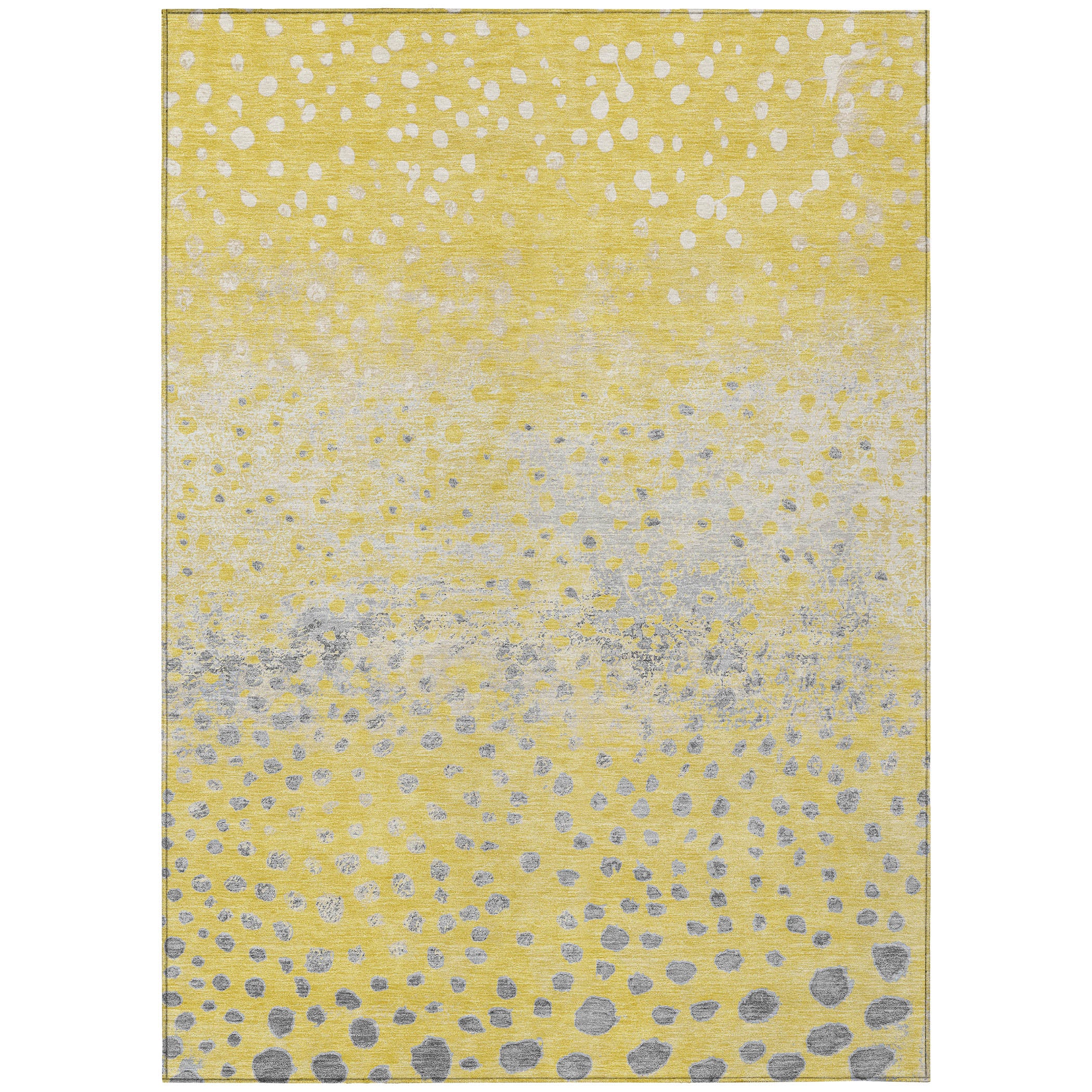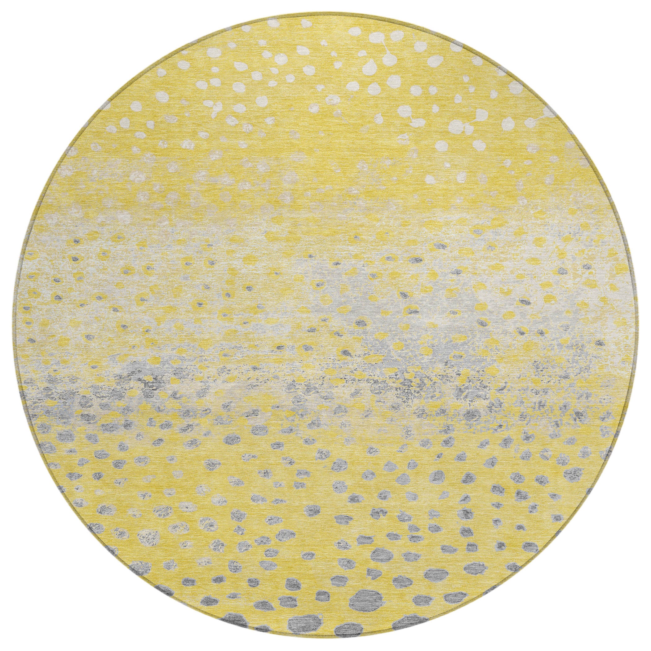 Enliven your space with the vibrant design of random-sized dots that float softly in this transitional rug. The dot pattern brings a lively touch to any room. UV stabilized for versatile use, it boasts an ultra-thin construction. This machine-washable rug is family and pet-friendly, making it a practical choice for busy households.