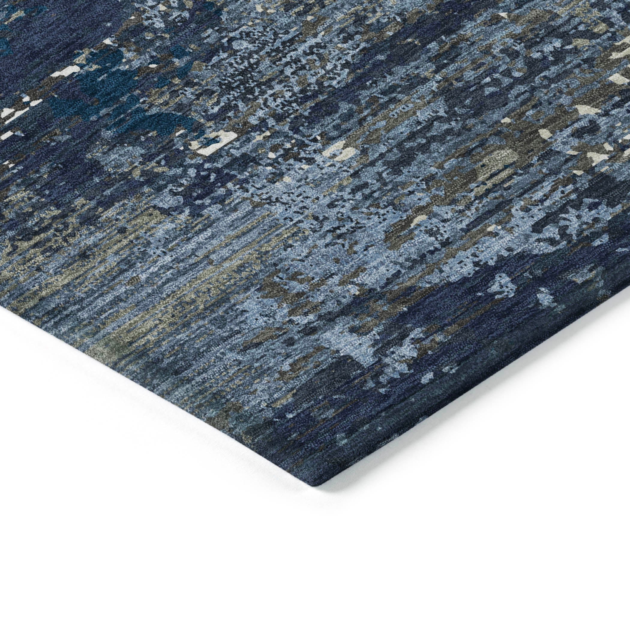 Enhance your space with the innovative textured-like effect that forms a modern design in this transitional rug. The pattern brings a fresh and sophisticated look to your home. UV stabilized for versatile use, it boasts an ultra-thin construction. This machine-washable rug is perfect for family and pet-friendly homes, providing both style and practicality.