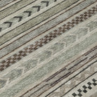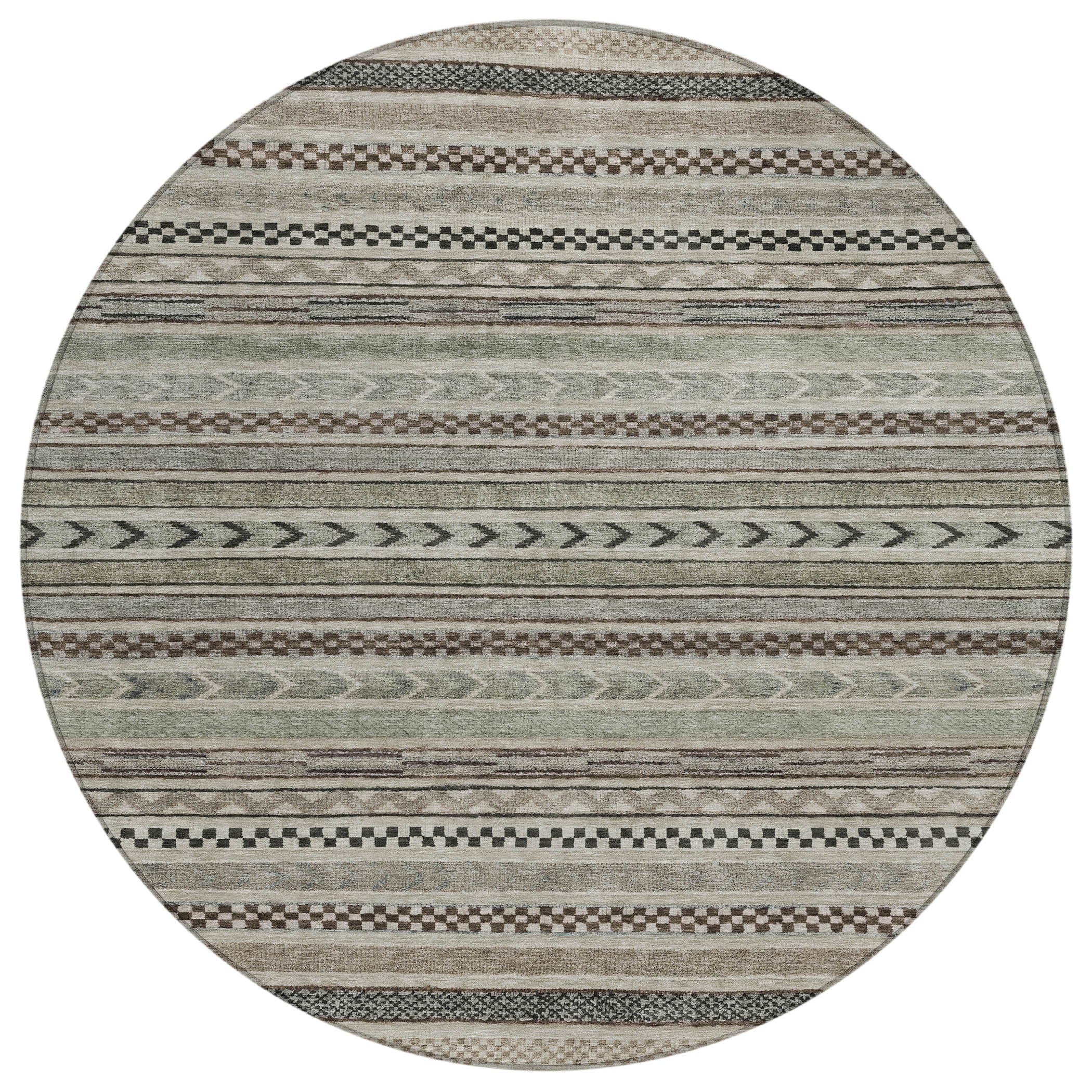 This transitional rug showcases small stripes with various motifs in horizontal patterns, creating a rich and textured design that suits any decor style. The stripe pattern adds a refined and sophisticated touch to your living space. UV stabilized for indoor or outdoor use, this rug is built to last while retaining its vibrant look. Its ultra-thin design ensures a smooth fit under furniture, and it's conveniently machine-washable. Ideal for family and pet-friendly environments, this rug combines practicality with aesthetic appeal.