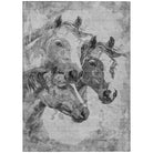 With three horse heads showcased in a distressed pattern, this rug brings an elegant transitional flair to any room. The detailed, weathered design highlights the beauty of the horses, perfectly complementing modern interiors. Its robust construction and simple upkeep make it a practical and stylish choice.