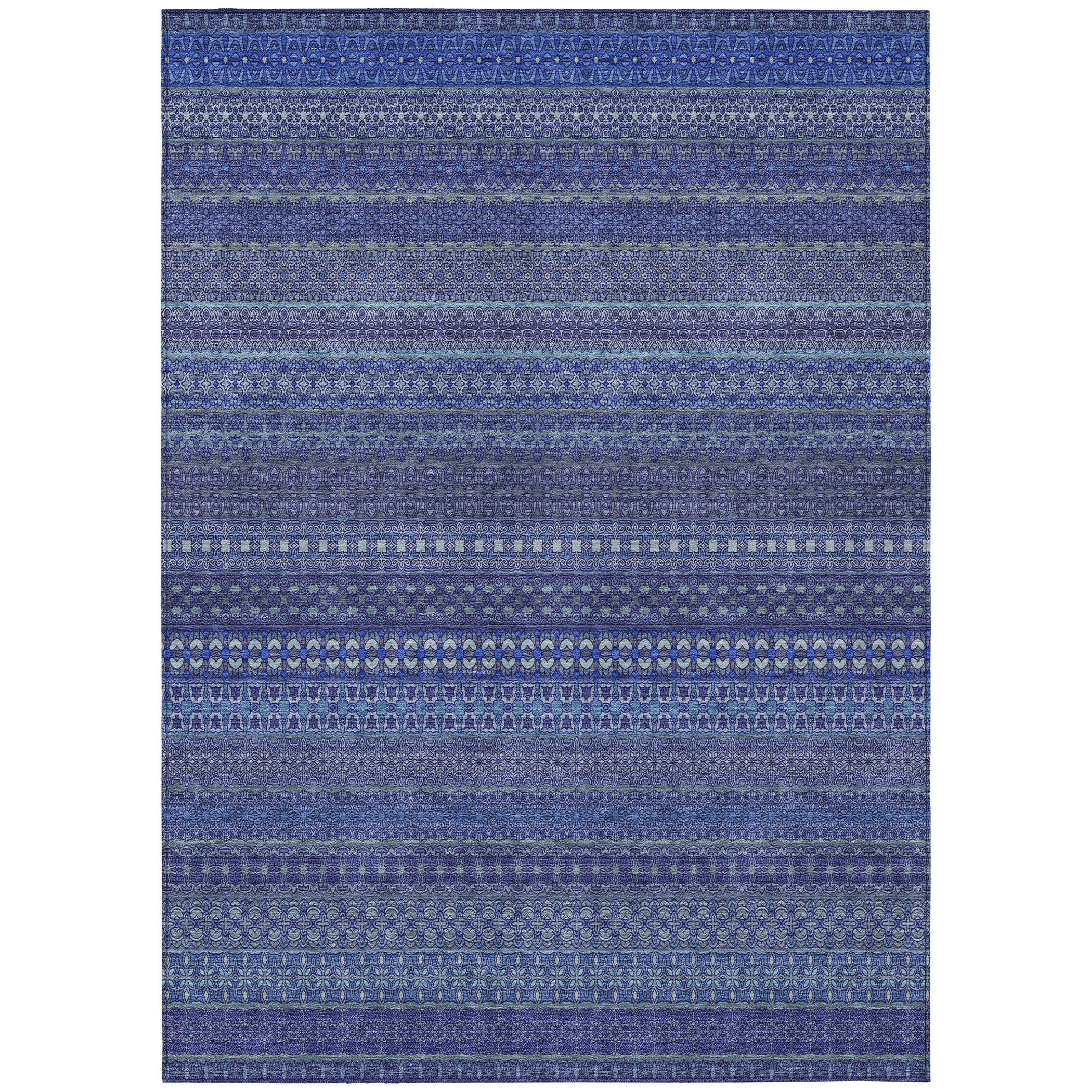 Chantille ACN527 Navy area rug, designed to infuse your space with whimsy and charm. This versatile rug features an eclectic mix of shapes and motifs that will instantly add personality to your floor. Perfect for both indoor and outdoor use, its UV stabilization ensures long-lasting vibrancy.