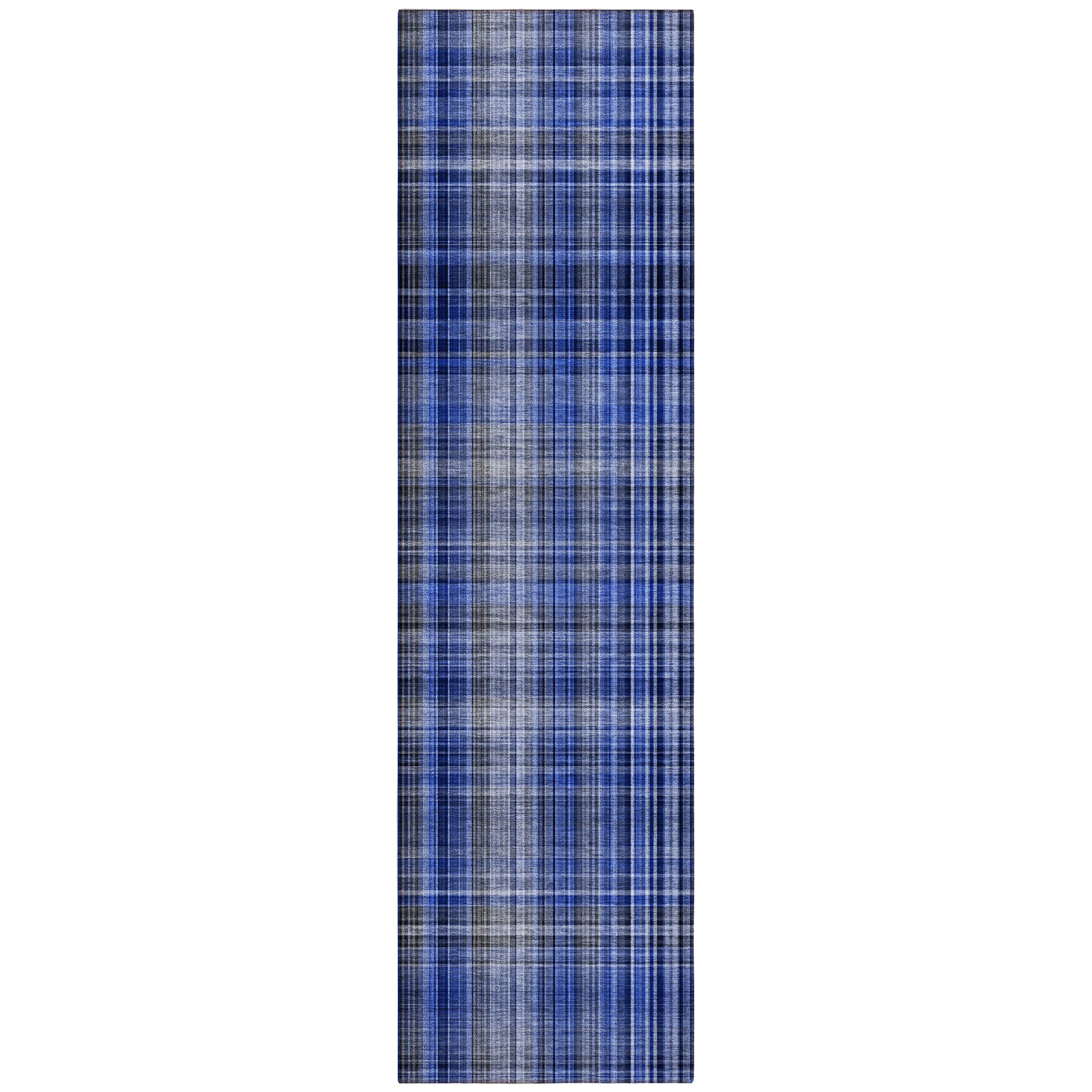 Chantille ACN541 Navy area rug, a sophisticated addition to your living space. This transitional plaid rug boasts a captivating grid-like pattern of squares and rectangles in rich tonal hues, effortlessly complementing any decor style. Designed for indoor or outdoor use, its UV stabilization ensures long-lasting vibrancy and versatility. The ultra-thin construction includes a non-skid backing for convenience, eliminating the need for a separate rug pad. Plus, its easy machine-washable feature and family and pet-friendly attributes make it a practical choice for any home. Elevate your interiors with this stylish and functional rug today!