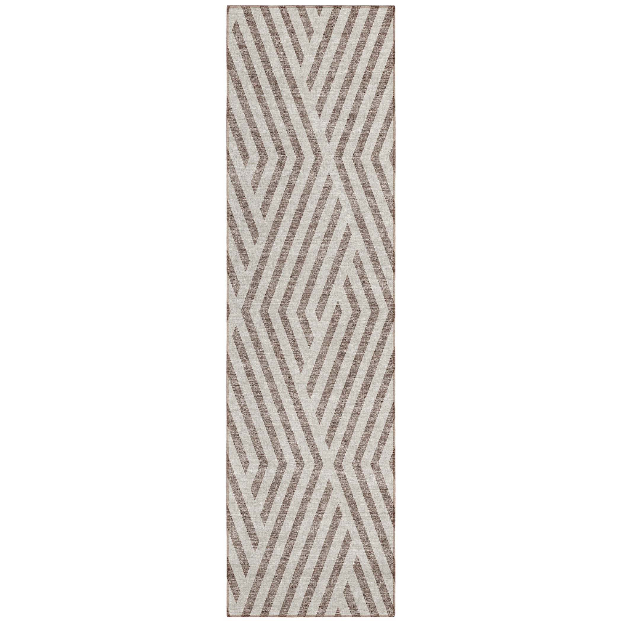 Introduce elegance into your living space with the Chantille ACN550 Taupe rug. This versatile piece features a sophisticated pattern of broken diamond shapes, adding a touch of modern flair to any room. Perfect for indoor or outdoor use, its UV stabilization ensures long-lasting vibrancy and durability. The rug's ultra-thin construction includes a built-in non-skid backing, eliminating the requirement for an extra rug pad and providing secure placement on any surface.