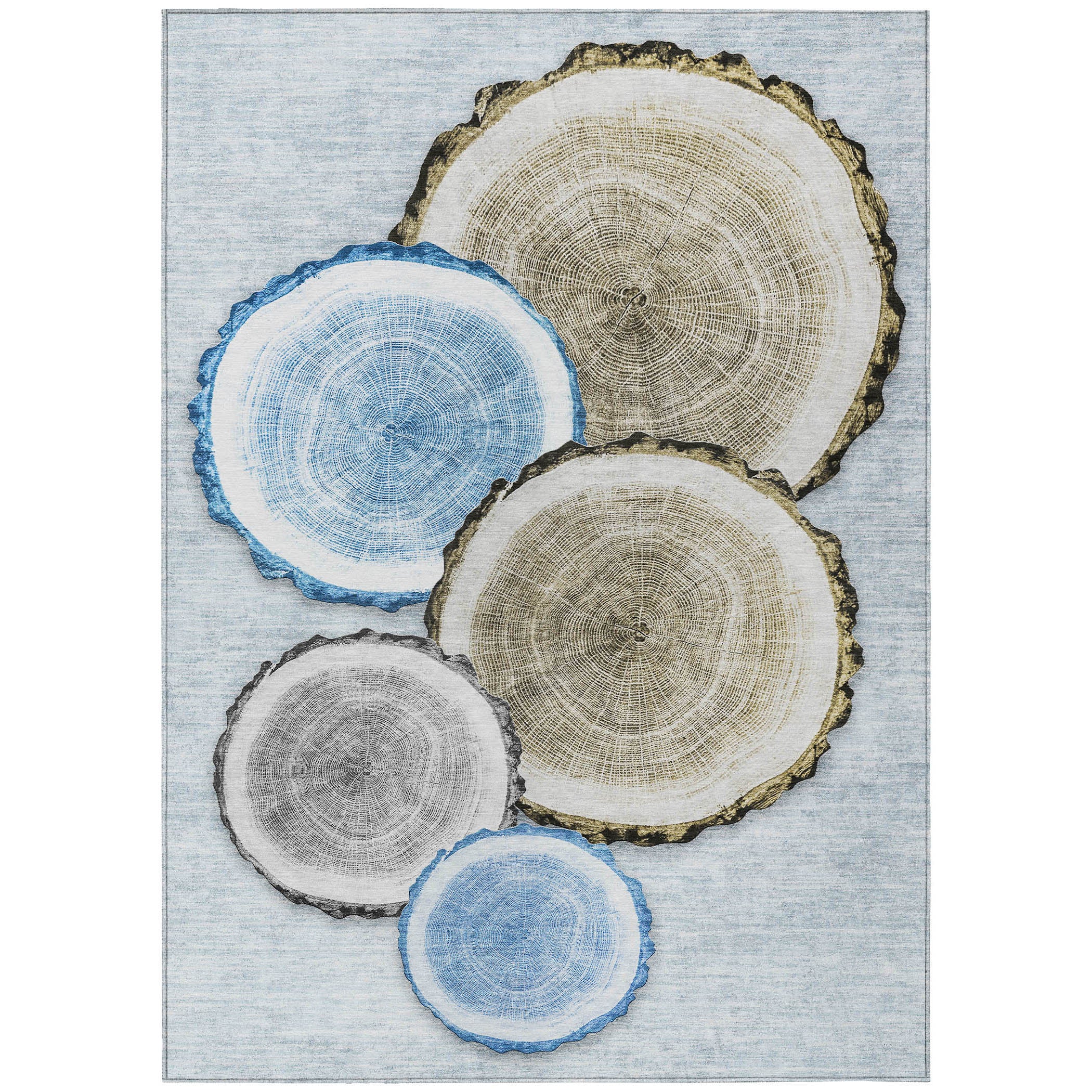 Introducing our Chantille ACN575 Blue area rug, designed to bring the beauty of the outdoors into your living space. The rug features a unique sliced wood inspired pattern in calming muted colors, making it a versatile addition to any decor style. Perfect for both indoor and outdoor use, this rug is equipped with UV stabilization for long-lasting color vibrancy.