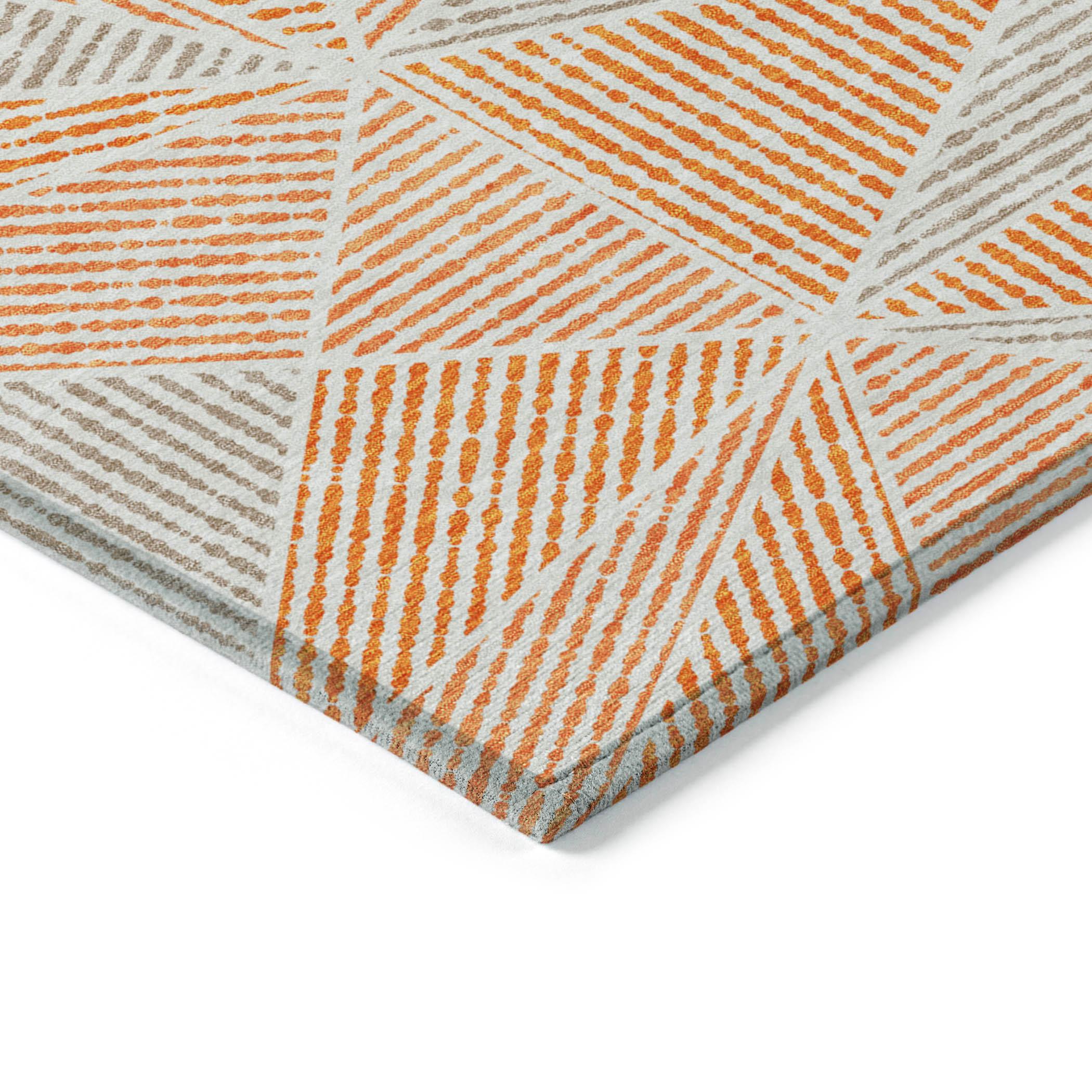 Elevate your home decor with the Chantille ACN618 Orange rug. This transitional piece showcases a captivating geometric design of interconnected triangles and jagged lines, adding a modern touch to any room. The rug is UV-stabilized for both indoor and outdoor use, ensuring long-lasting vibrancy. Enjoy the convenience of its ultra-thin build with a non-skid backing, eliminating the need for an extra rug pad. Families and pet owners will appreciate its machine-washable feature, making maintenance a breeze. Bring style and functionality together seamlessly with this versatile and eye-catching rug!