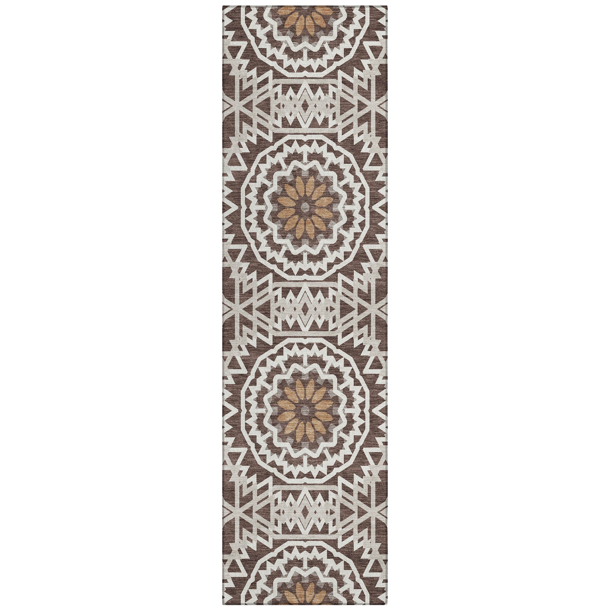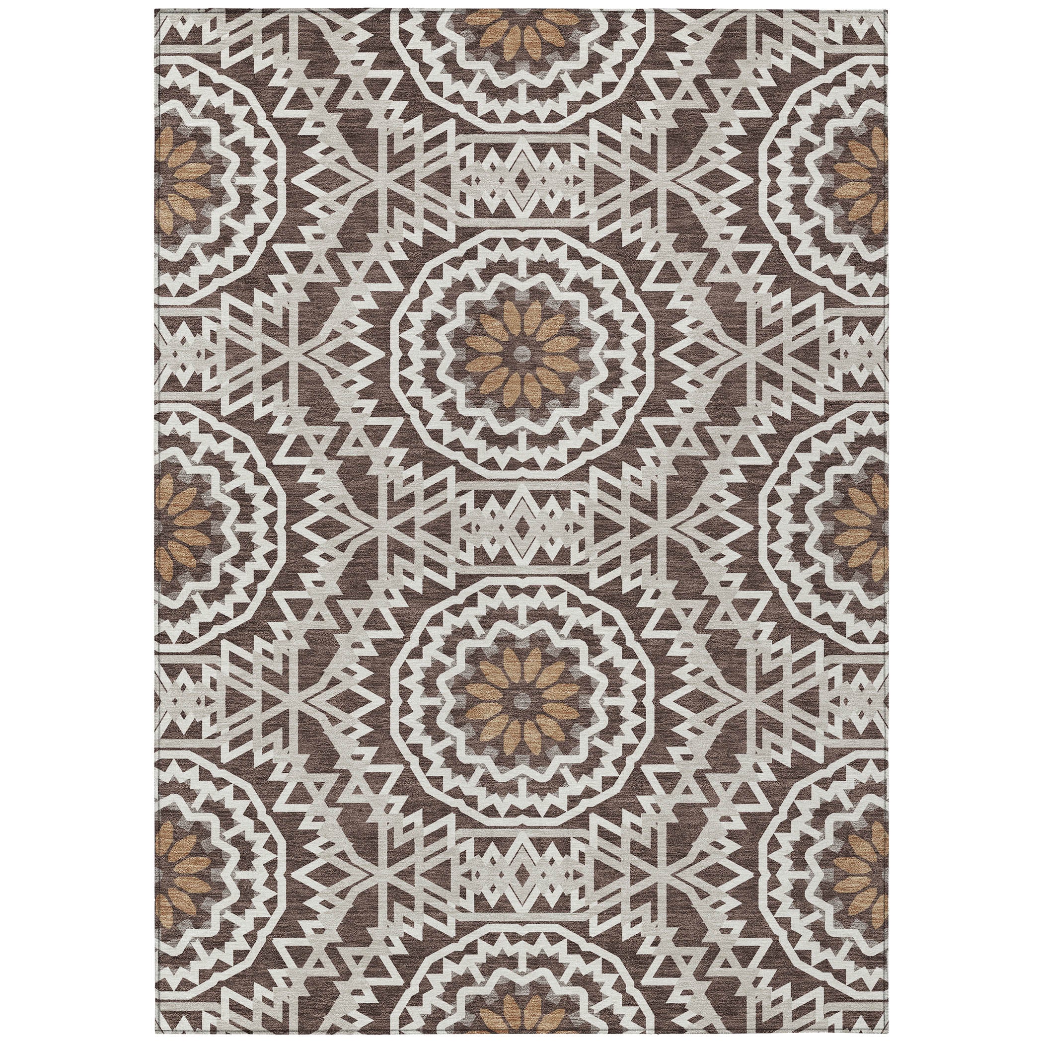 Chantille ACN619 Chocolate rug, a stunning piece that brings elegance into your space. Inspired by the captivating beauty of stained glass, this transitional rug showcases interlocking medallion circles that create a harmonious focal point in any room.