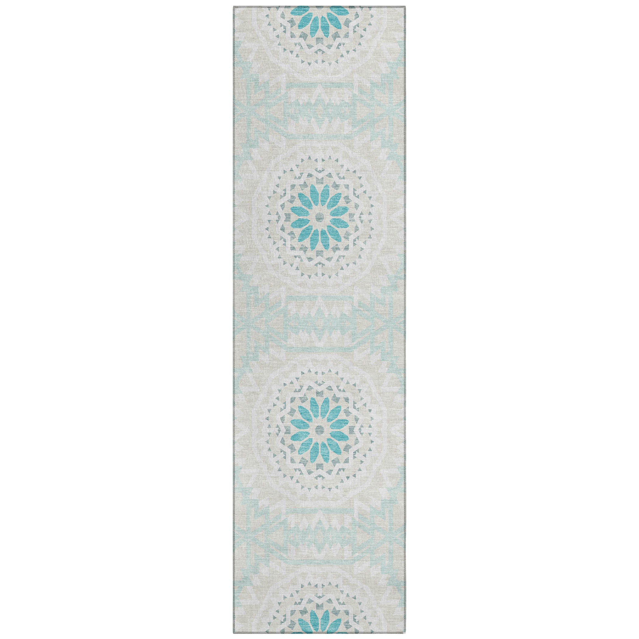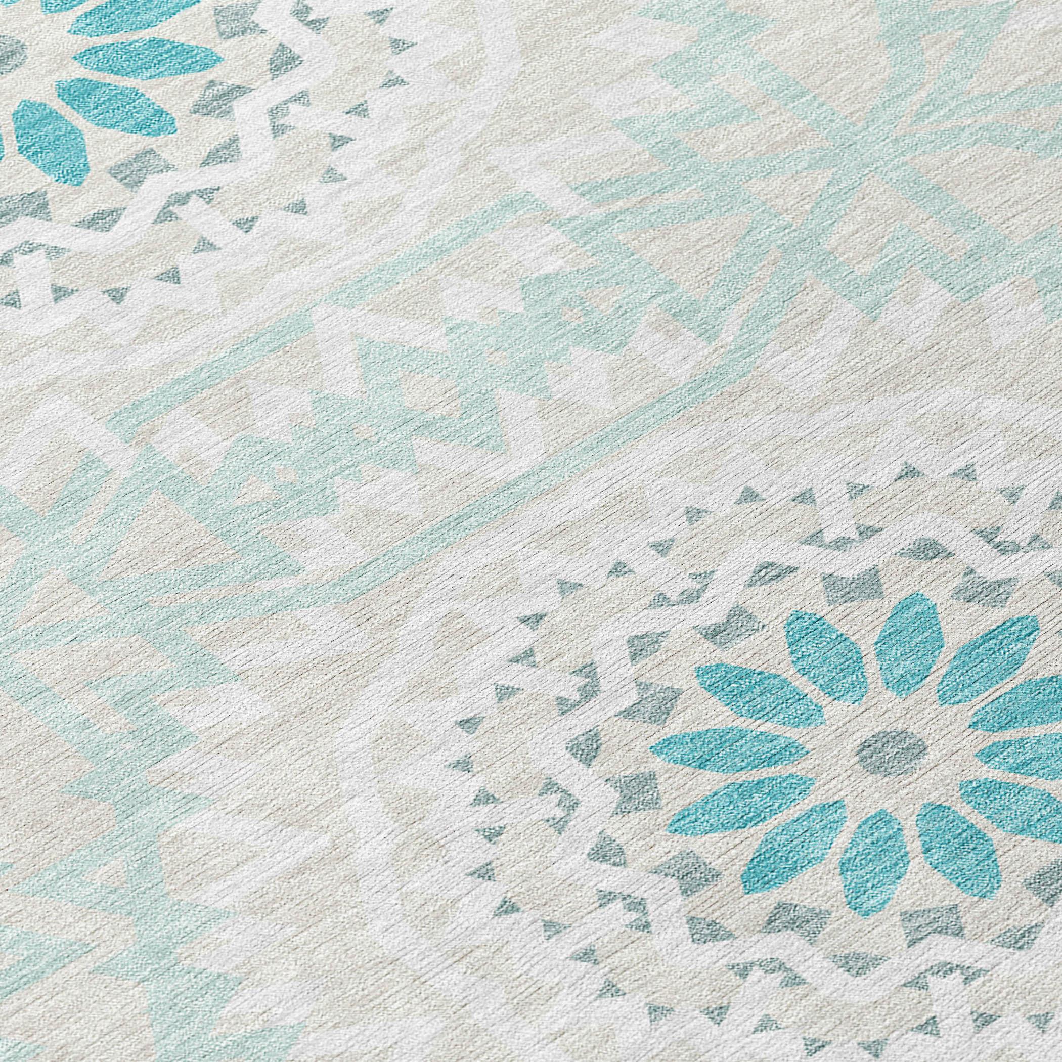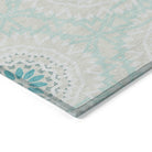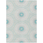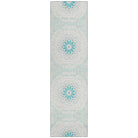 Chantille ACN619 Teal rug, a stunning piece that brings elegance to any space. Inspired by the intricate beauty of stained glass, this transitional rug showcases interlocking medallion circles that create a captivating visual impact. The circular motif serves as a harmonious focal point in any room, adding a touch of sophistication to your decor.