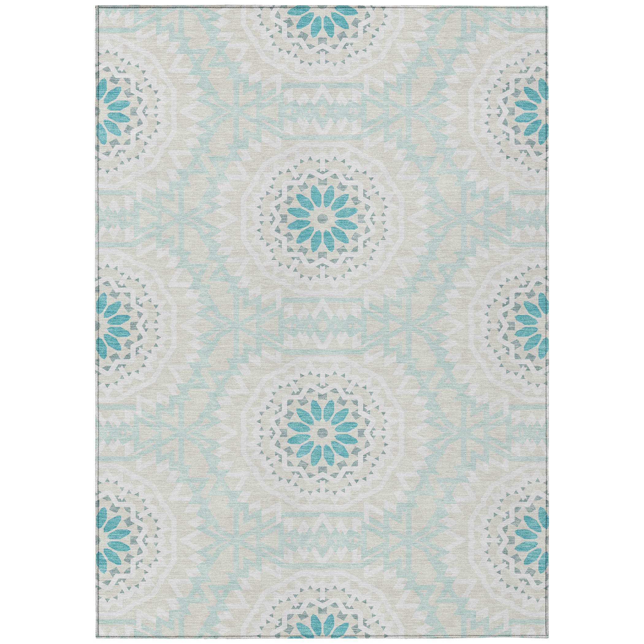 Detailed Colors: Teal, Beige, Ivory, Gray, Aqua