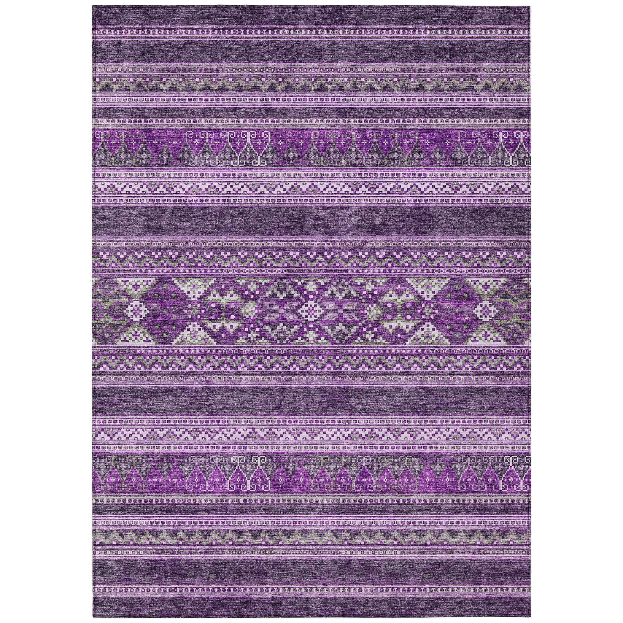 Chantille ACN714 Purple rug, a stunning piece that combines design innovation with timeless style. The rug features horizontal southwest patterns that pop against a modern graphic backdrop, creating a visually striking look. Blending transitional and southwest influences seamlessly, this rug is sure to make a statement in any space.