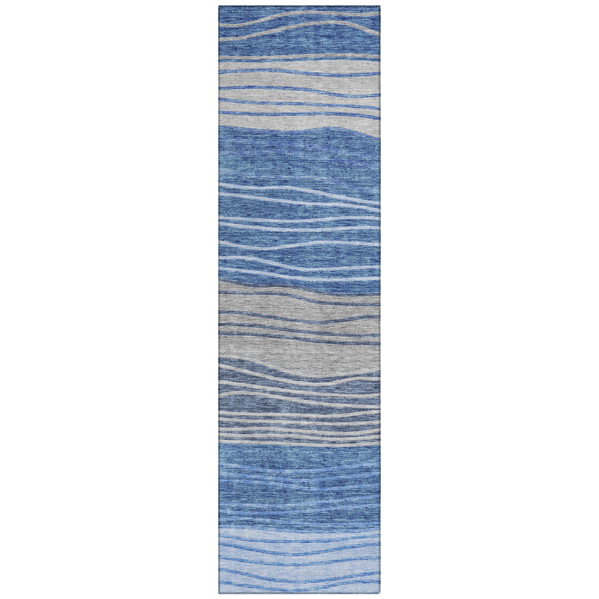 Chantille ACN735 Blue rug, a perfect blend of elegance and tranquility. The gentle sway of wavy stripes creates a soothing and harmonious look, ideal for any modern living space. Crafted with a horizontal pattern that exudes calm and sophistication, this rug is designed to elevate your home decor effortlessly.