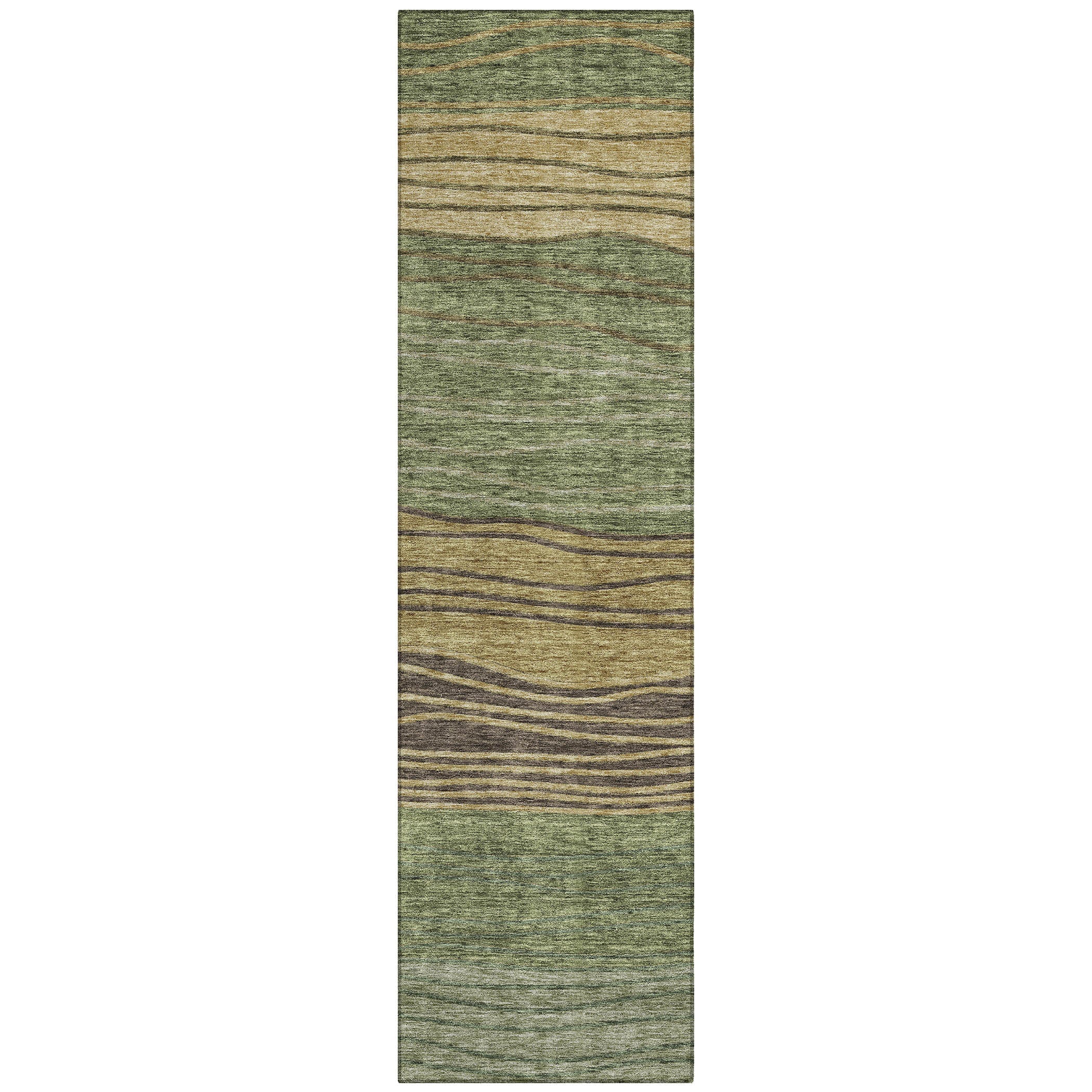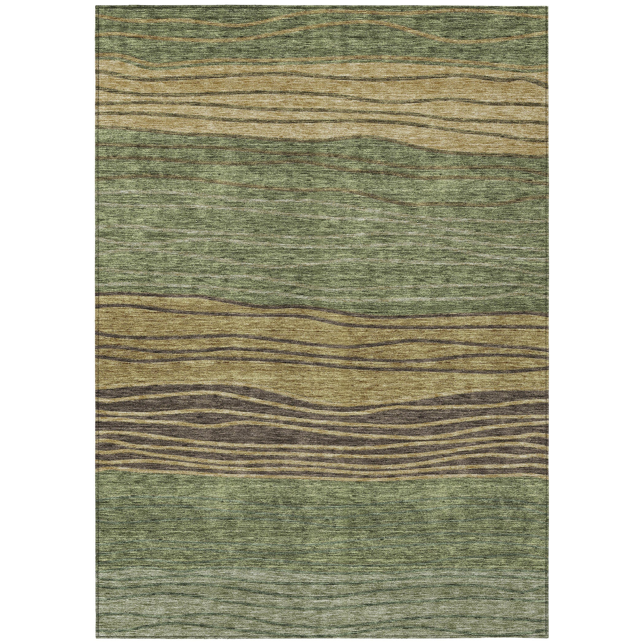 Chantille ACN735 Olive rug, a delightful addition to any room. The wavy stripe pattern creates a serene and harmonious look that fits perfectly in modern living spaces. This transitional rug brings a touch of calm and elegance to your home decor.