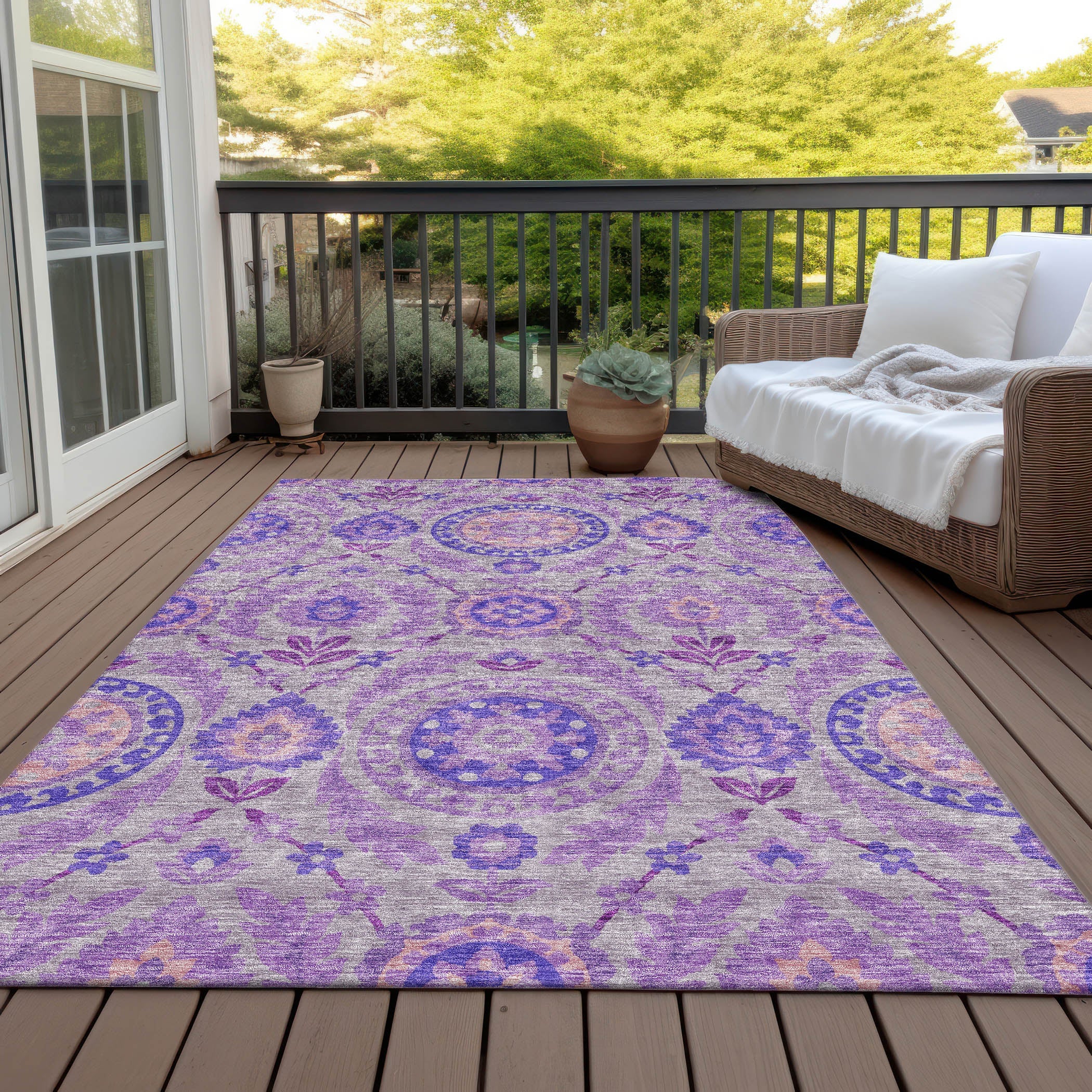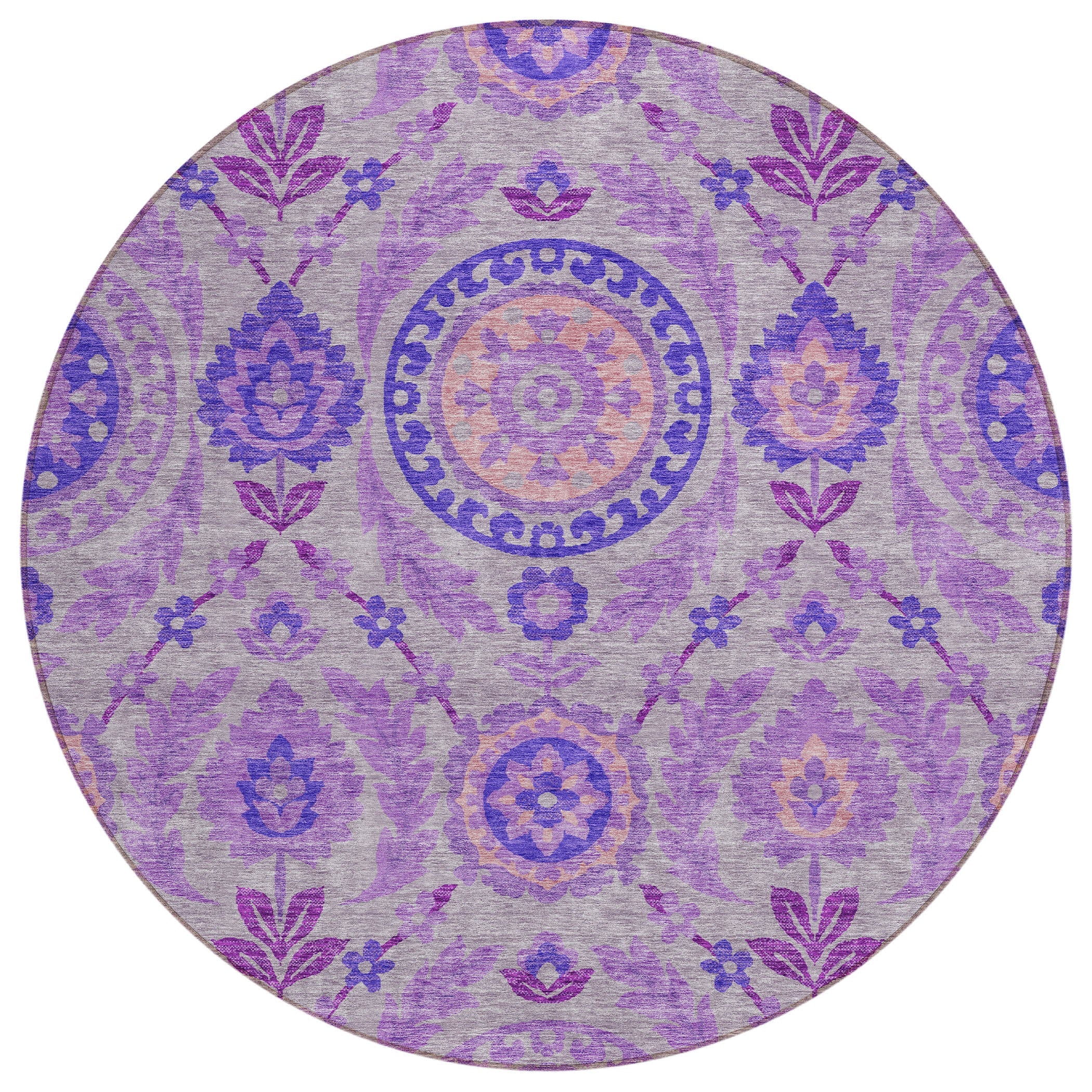Chantille ACN751 Lavender rug, a perfect blend of elegance and practicality for your contemporary space. The rug showcases a beautiful floral design with centered medallions and intricate vine and leaf details, adding a touch of sophistication to any room.