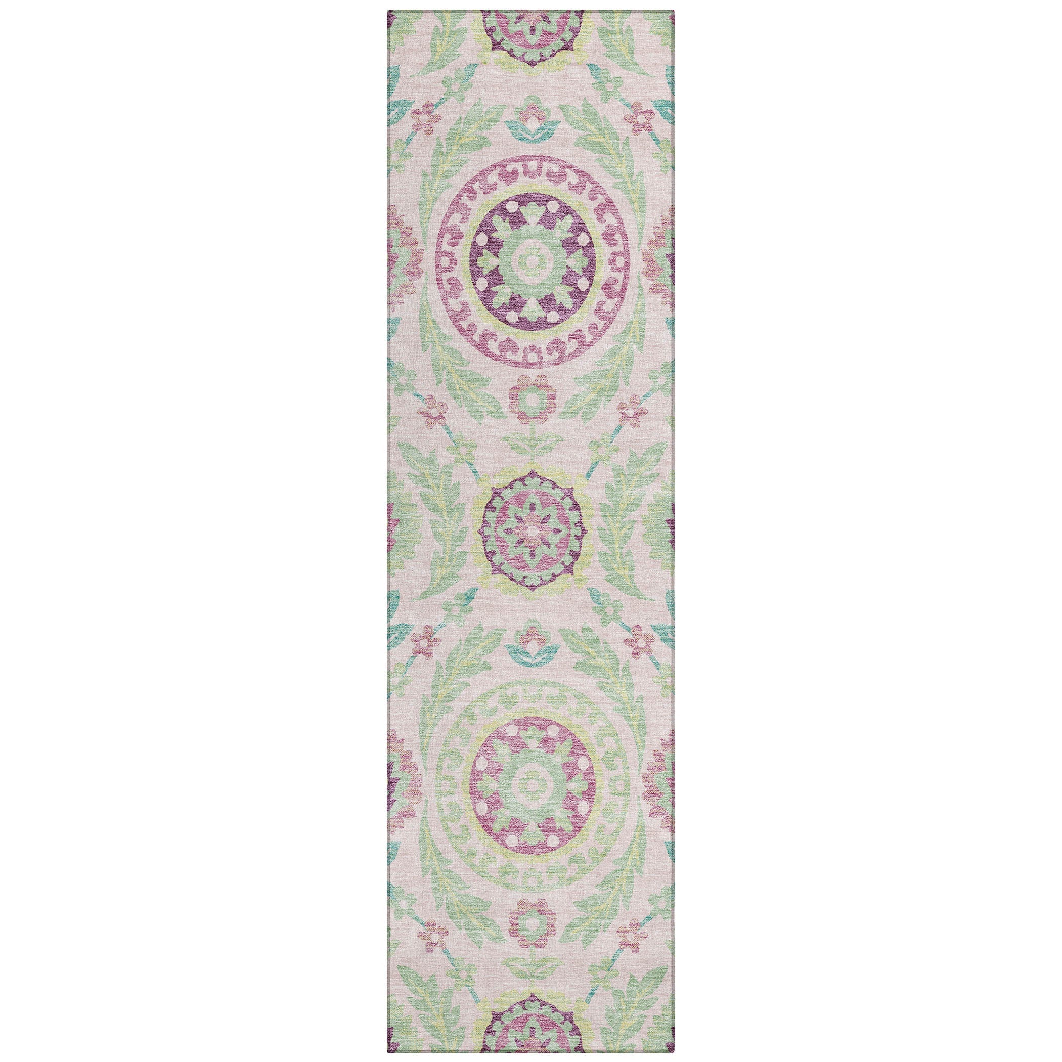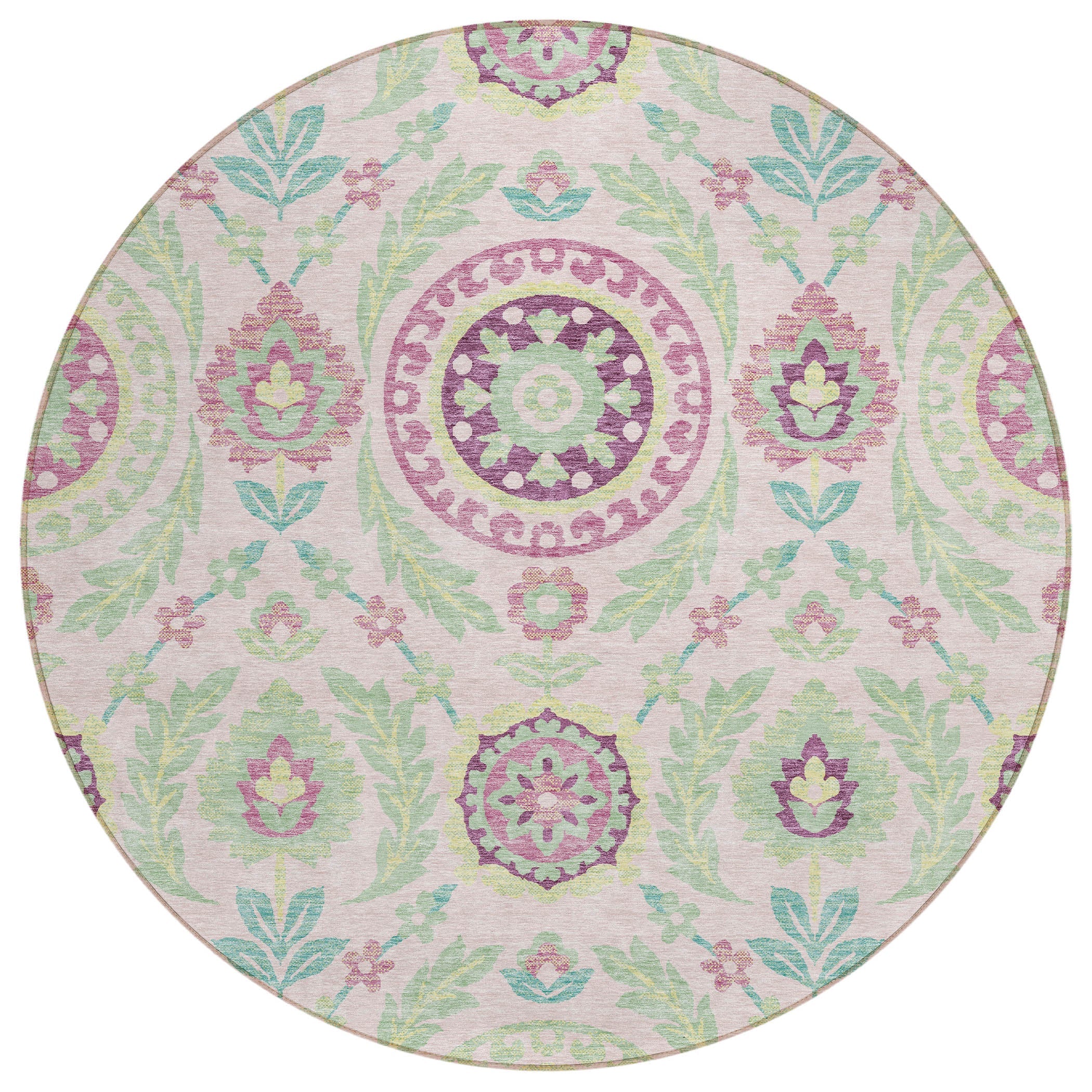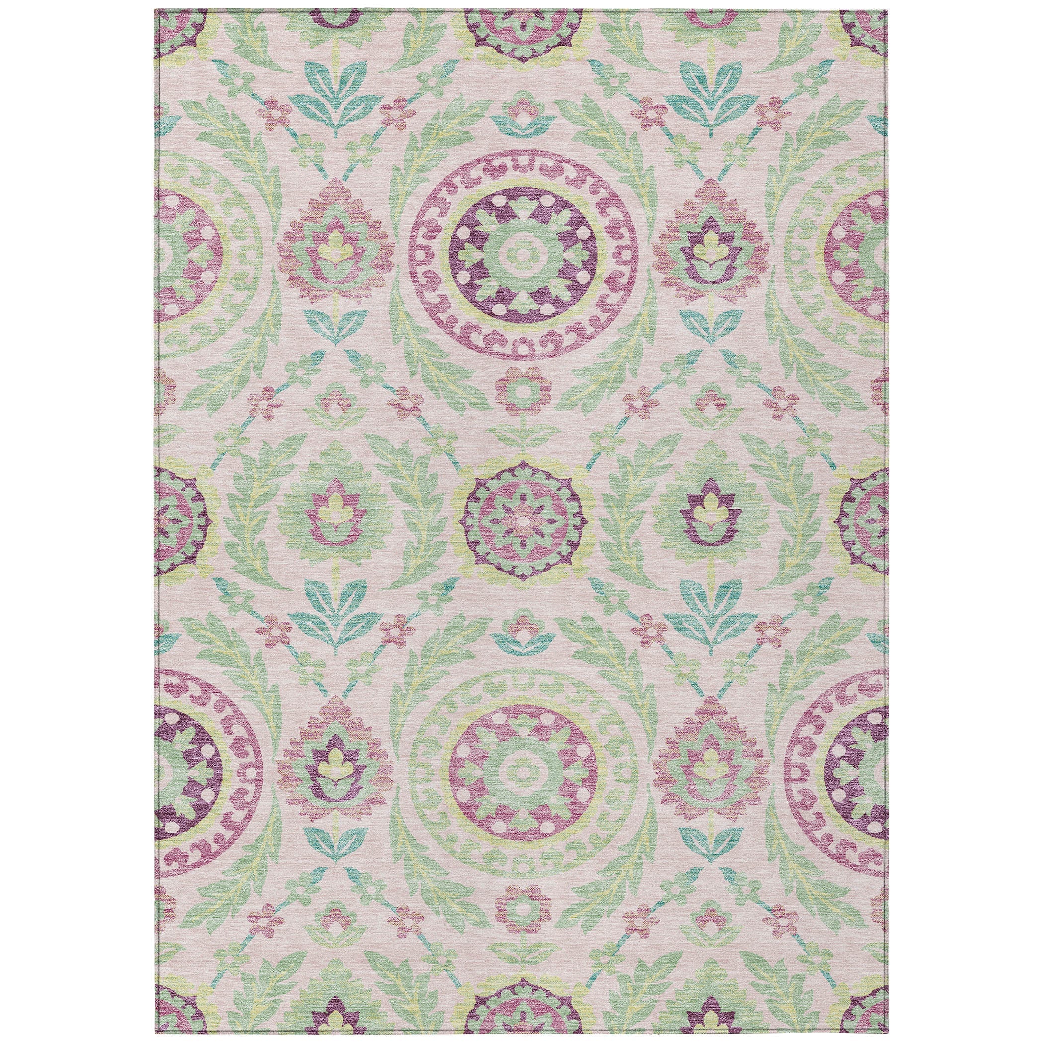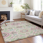 Chantille ACN751 Pink rug, a masterpiece that beautifully showcases centered medallions surrounded by intricate vines, florals, and leaves. This floral pattern exudes transitional design, adding a touch of luxury to any modern space. The rug is not just visually appealing but also UV stabilized for flexible usage, ultra-thin for easy blending with existing decor, and machine-washable for effortless upkeep. Perfect for households with families and pets, this rug is a practical yet stylish choice to elevate your living space.