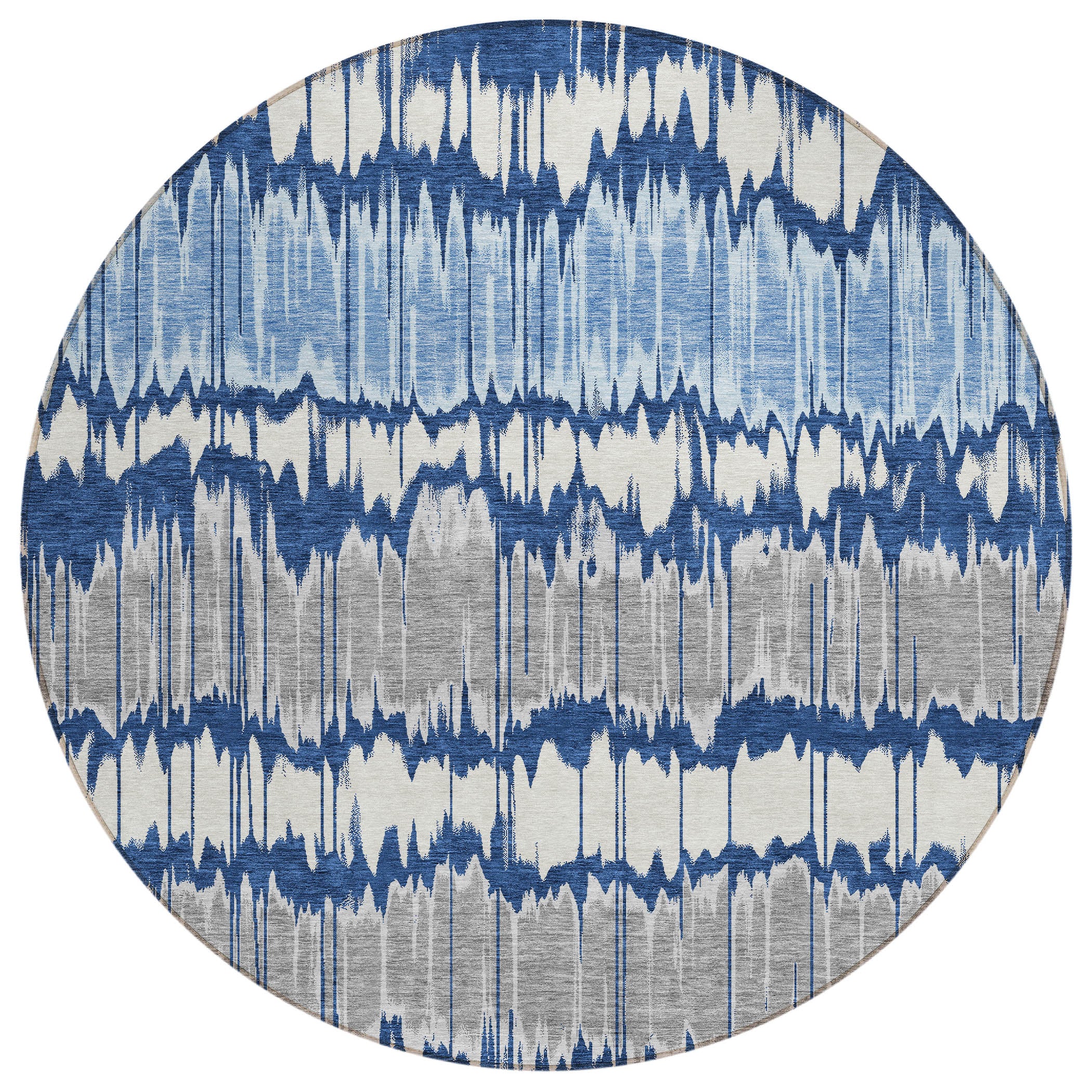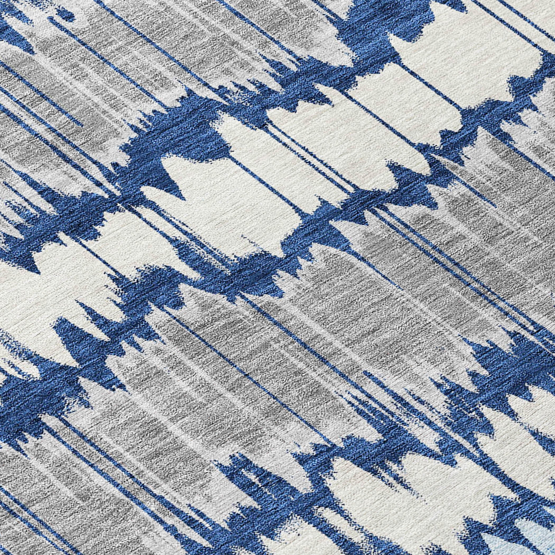 Chantille ACN755 Navy rug, a stunning addition to your home decor. This transitional piece features rigid large bands embellished with multi-color stripes, blending modern design elements with classic charm. The striking pattern creates a captivating focal point in any room, elevating the overall aesthetic.