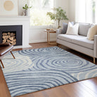 Chantille ACN765 Sky rug, a striking addition to your home decor. The oversized free-form circles bring a bold and beautiful touch to your space, creating a modern twist on the classic swirl design. This dynamic pattern is sure to infuse any room with a burst of energy and artistic flair.