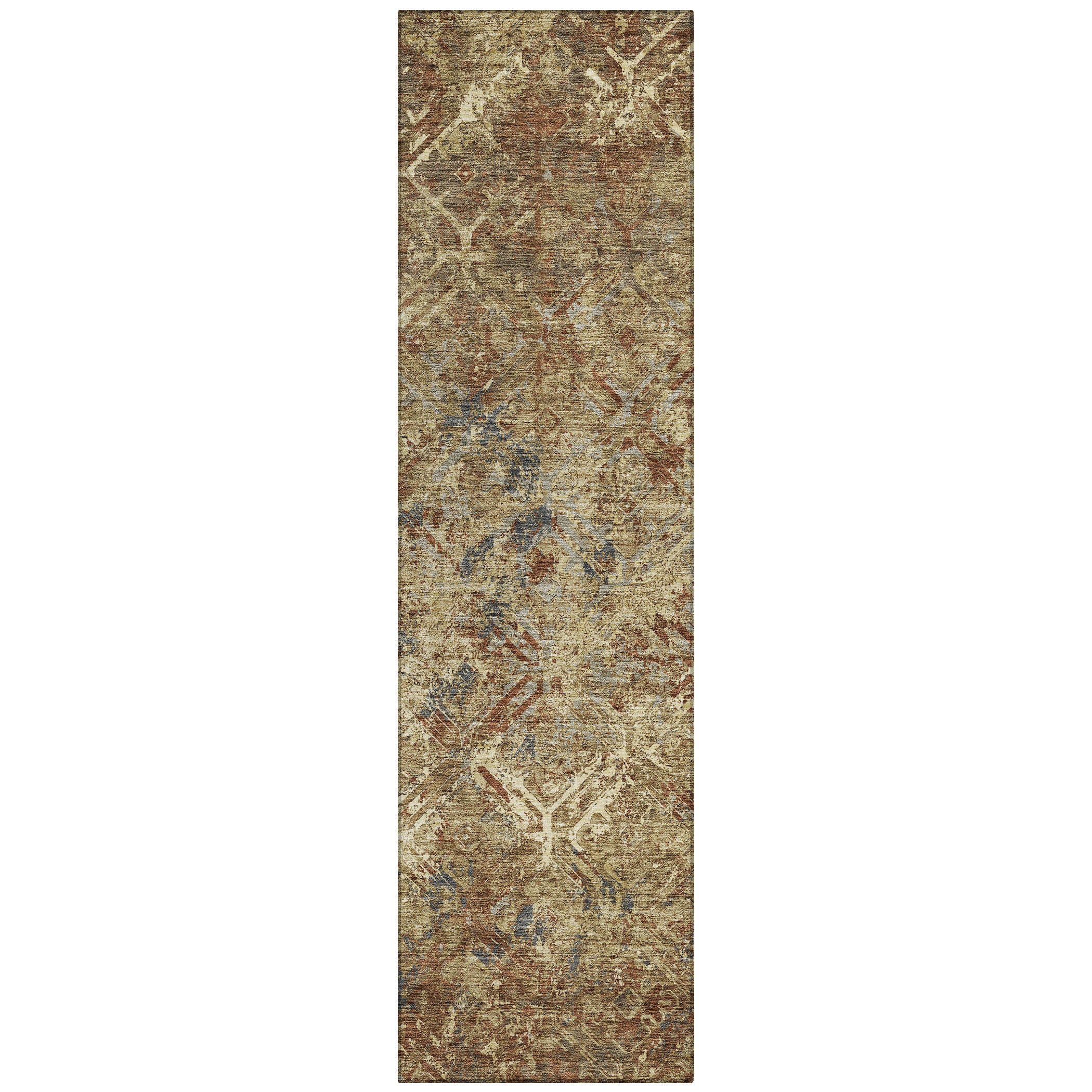 Chantille ACN768 Brown rug, a stylish addition to any room. The design showcases lattice type diamonds that gracefully lead the eye towards a center flow of colors. This transitional diamond pattern effortlessly blends classic charm with modern aesthetics, making it a versatile choice for various decor styles.