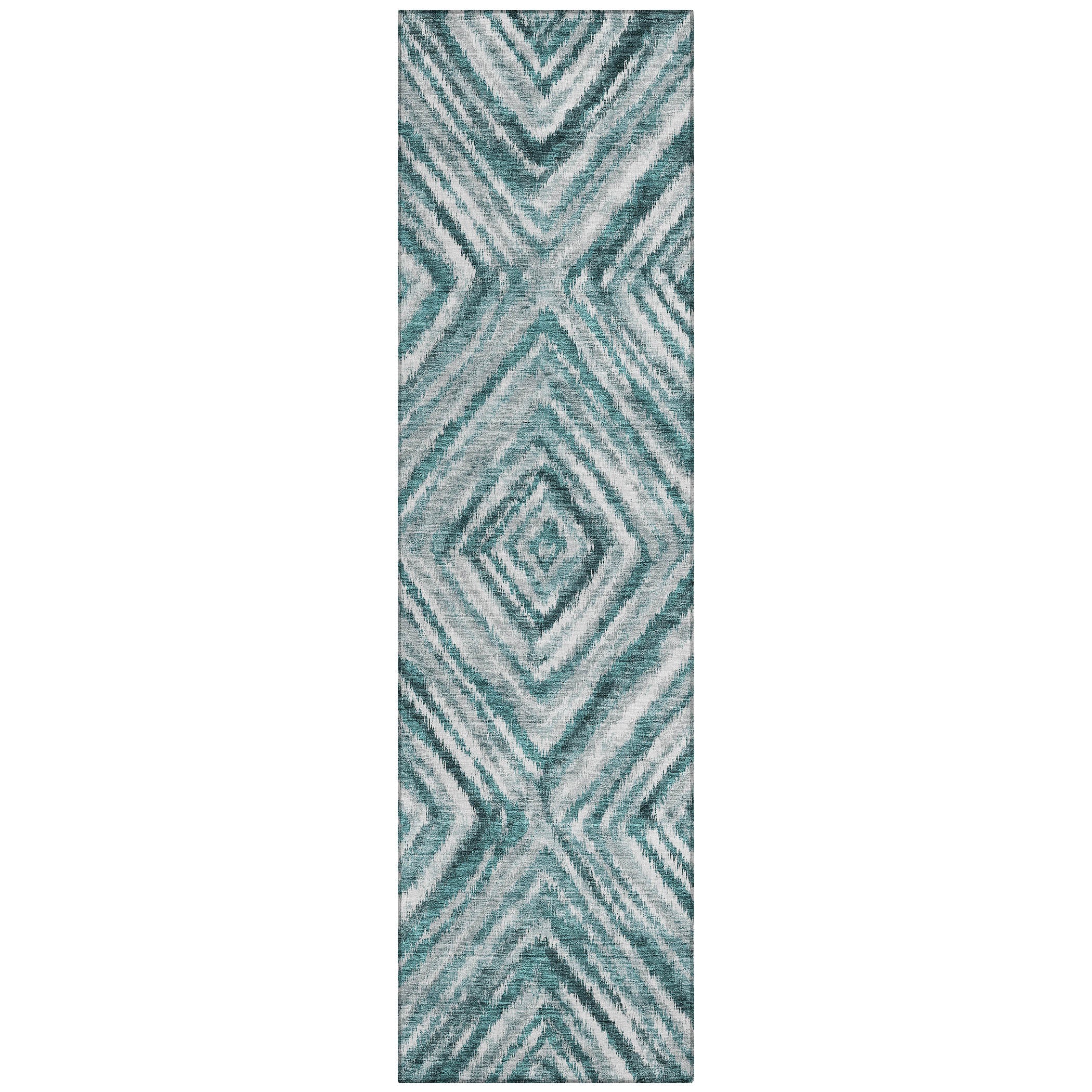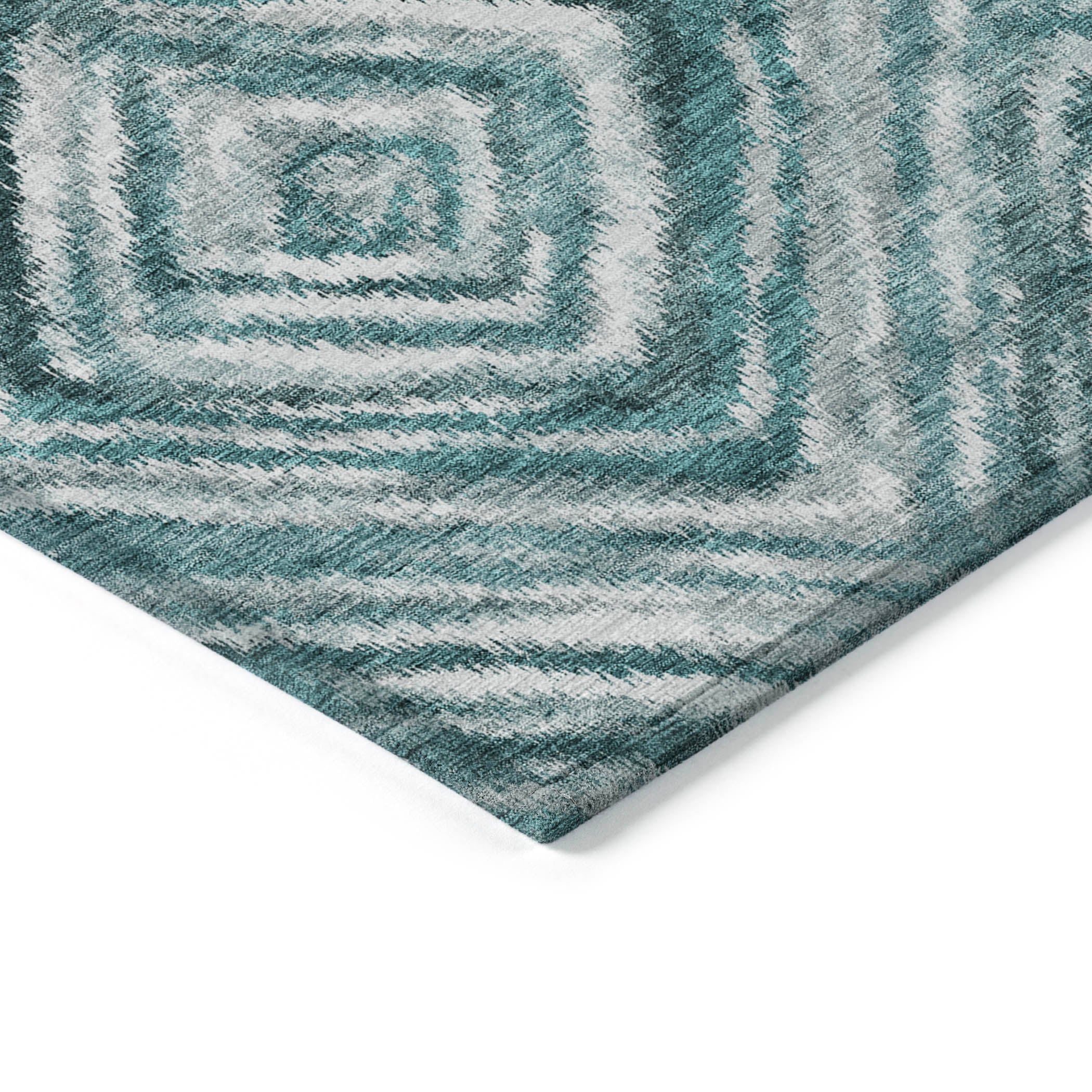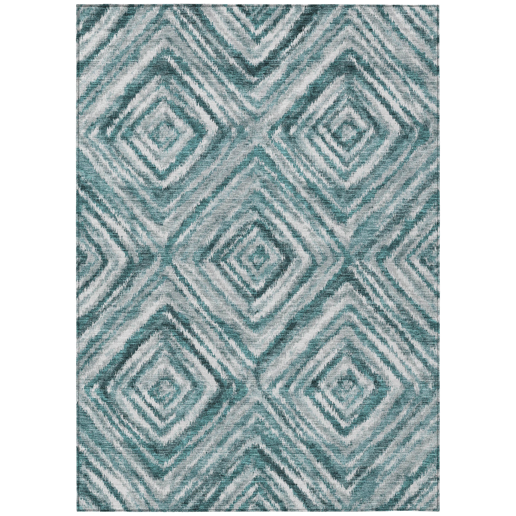 Chantille ACN781 Teal rug, a stunning piece that effortlessly combines classic and contemporary design elements. The intricate repetitive diamond pattern created by finely crafted lines adds a touch of sophistication to any room. Its structured yet elegant aesthetic makes it a perfect choice for enhancing the decor of various spaces.