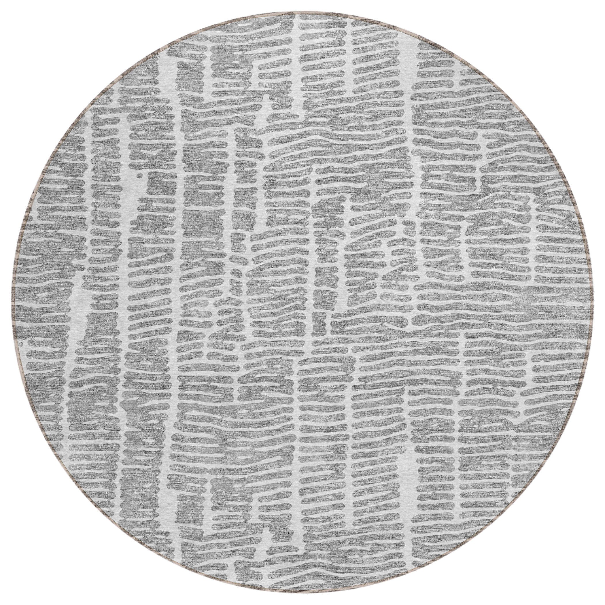 Chantille ACN830 Gray area rug, designed to bring minimalist charm to your space. This rug features small horizontal bars that create a serene and transitional look, perfect for enhancing any room without overpowering it. Crafted with practicality in mind, it is UV stabilized for use indoors and outdoors, ultra-thin for easy integration into any decor, and conveniently machine-washable.