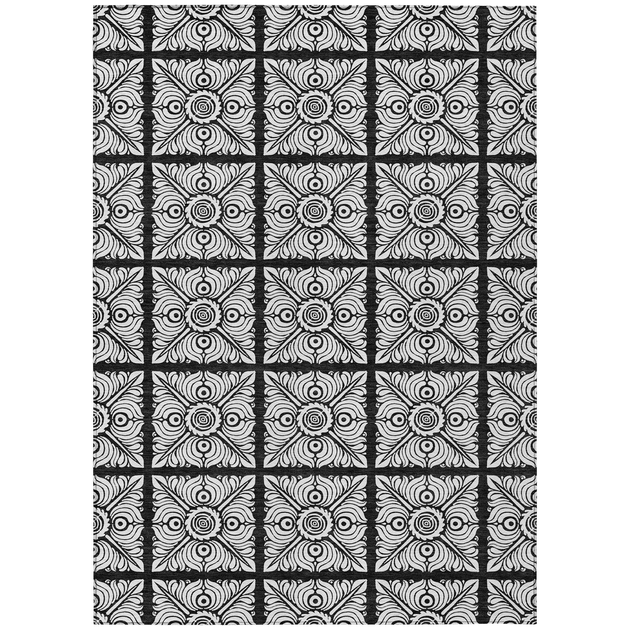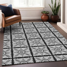 Elevate your home decor with the Chantille ACN854 Black area rug. Featuring stained glass squares arranged in a charming checkered pattern accented by transitional medallions, this rug seamlessly blends traditional and contemporary aesthetics. The UV stabilization ensures its durability in any environment, while its ultra-thin design allows for easy placement in various rooms. Plus, the rug is machine-washable, simplifying maintenance and making it ideal for households with pets. Experience the perfect combination of style and practicality with this stunning rug that adds both beauty and functionality to your living space.