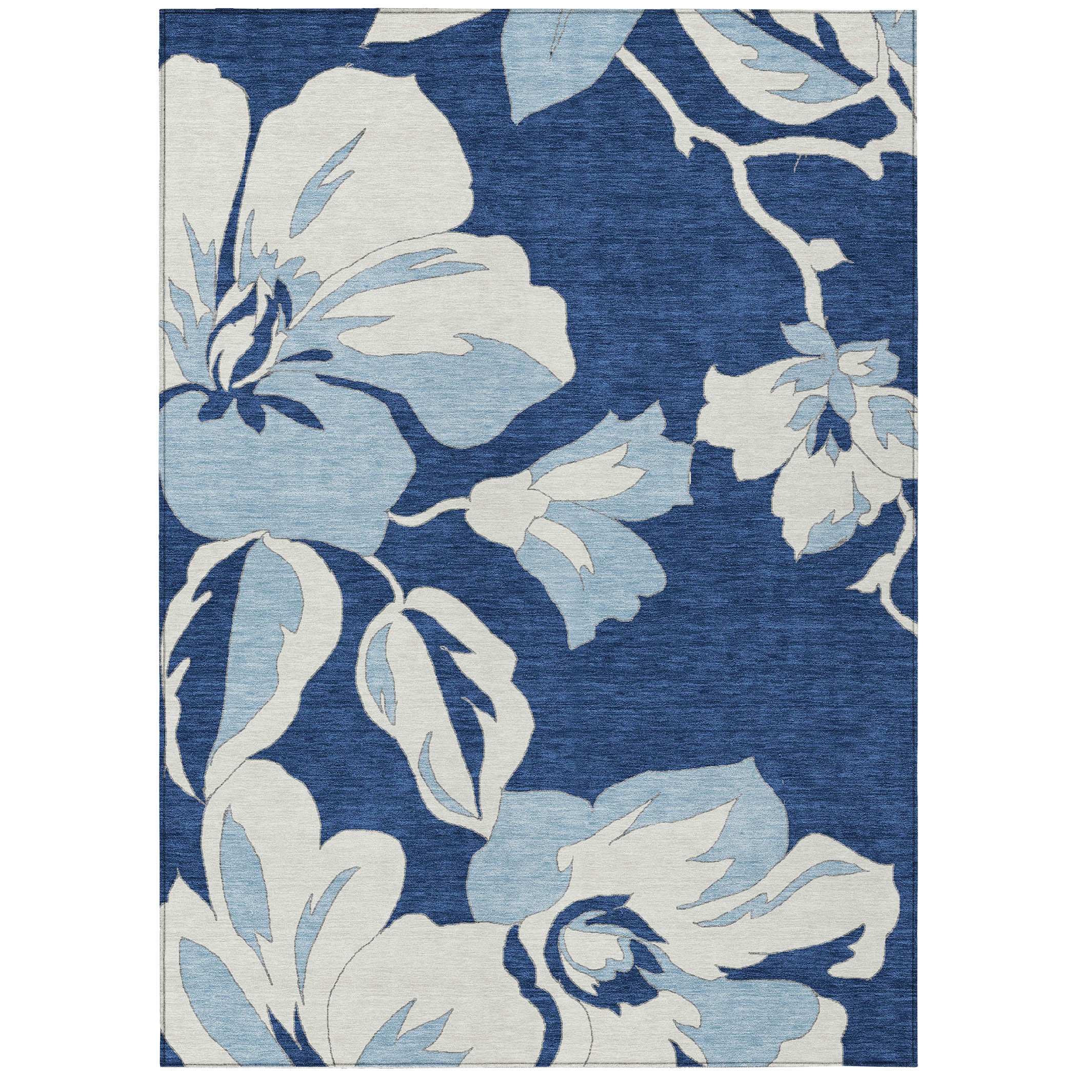 Chantille ACN857 Navy area rug, a stunning addition to your home decor. Immerse yourself in the beauty of this rug, featuring oversized floral elements that create an eye-catching centerpiece with a touch of transitional elegance. The vibrant floral pattern adds a sophisticated touch to any living space, elevating the overall look and feel of the room.
