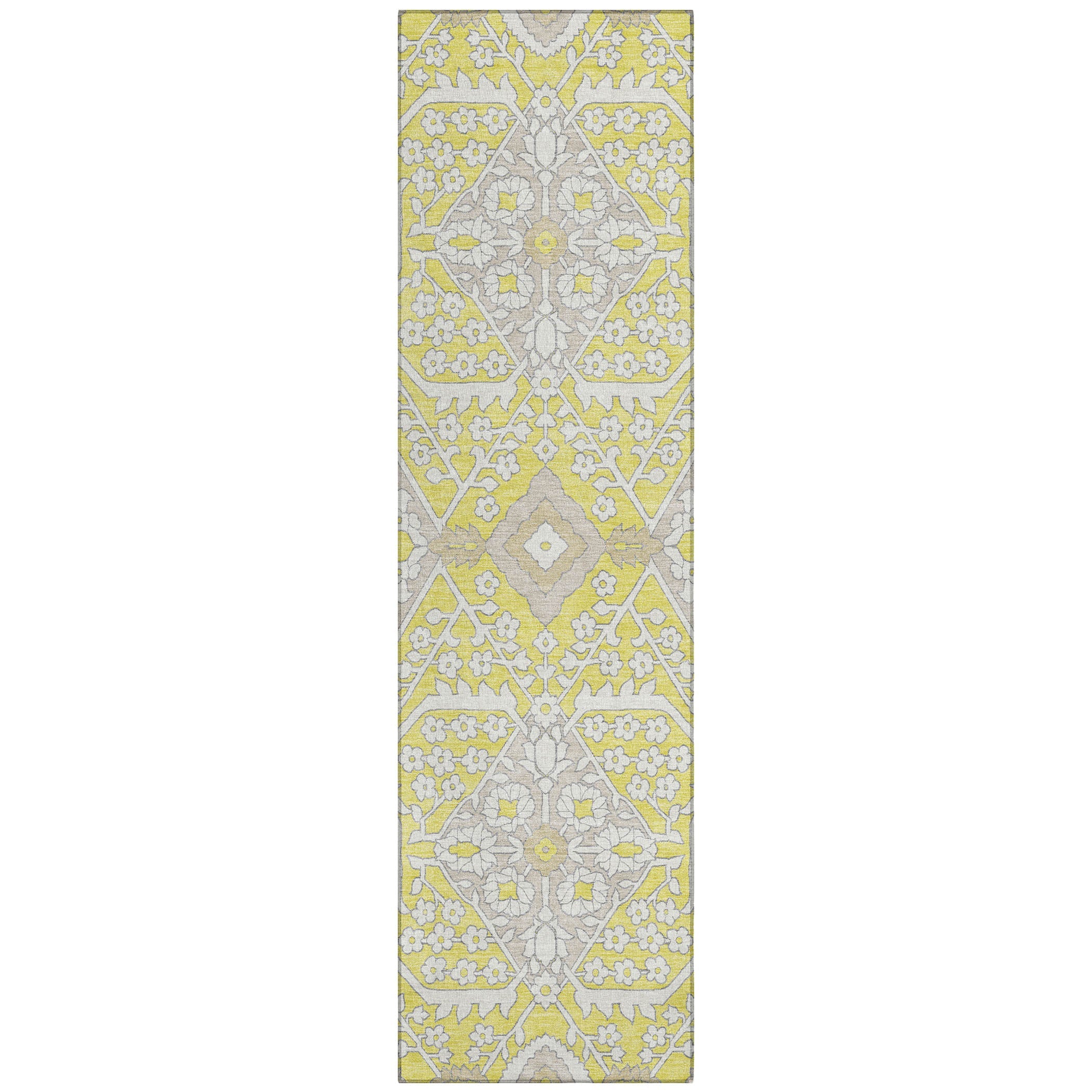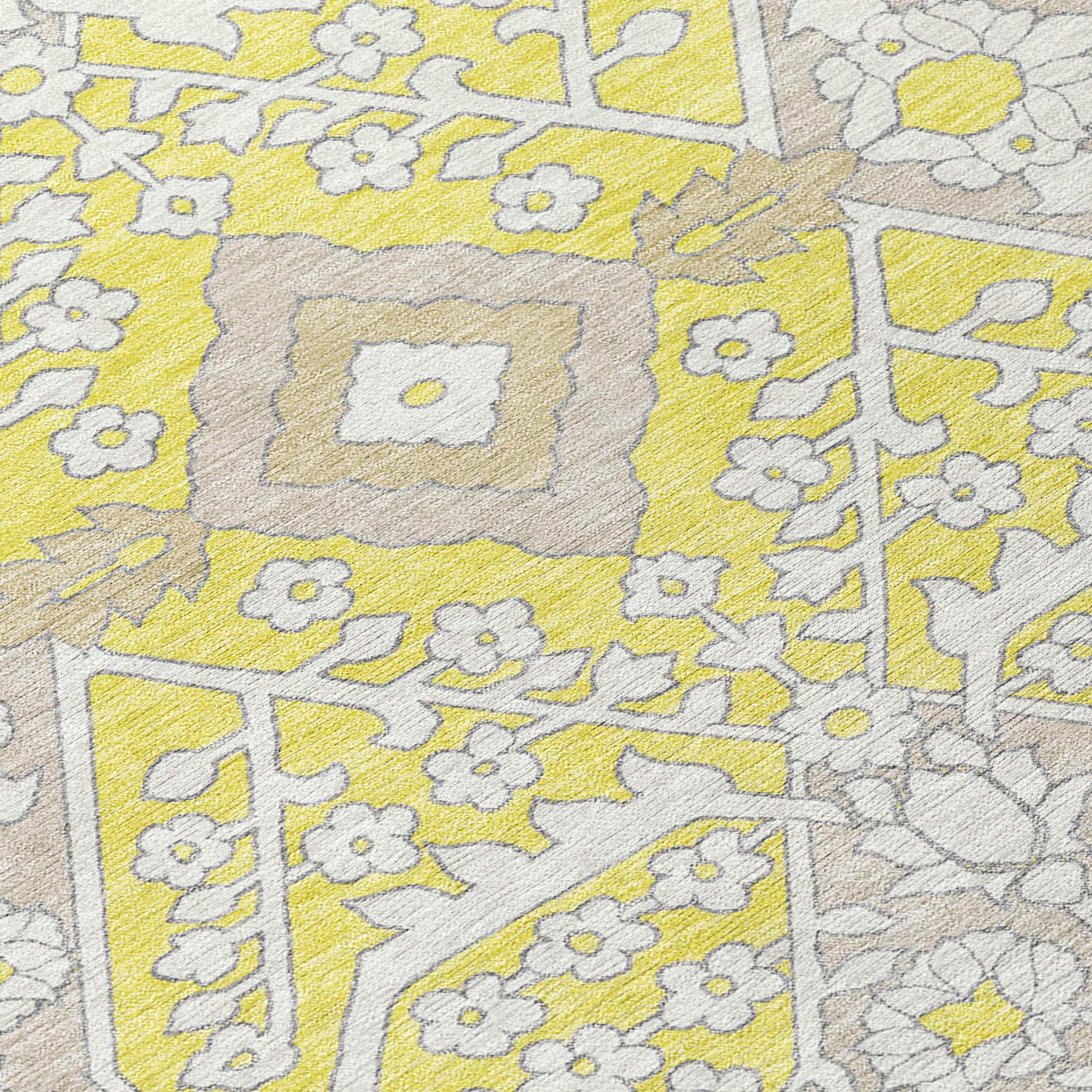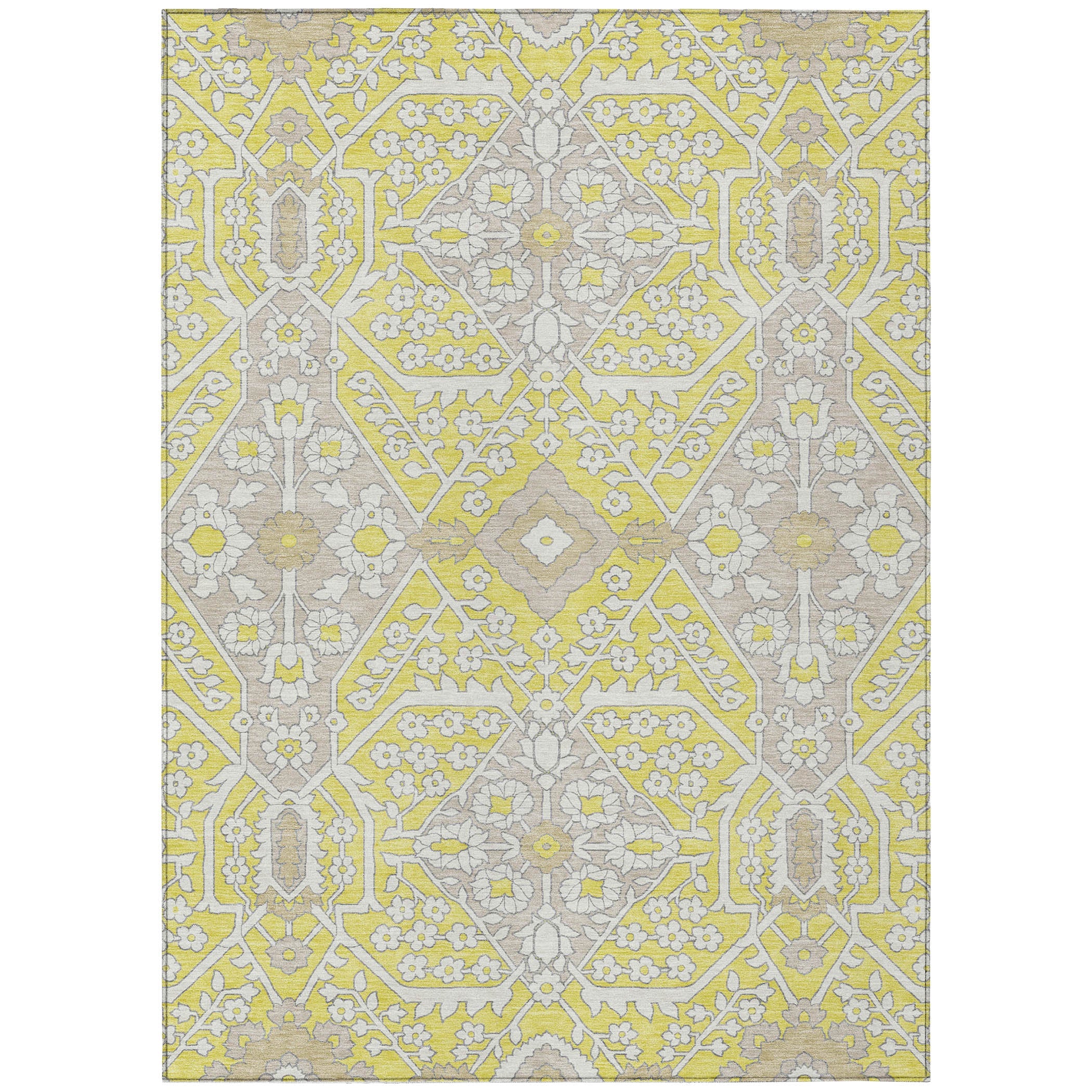Introduce a touch of modern elegance to your living space with the Chantille ACN863 Yellow area rug. Boasting a fresh interpretation of the classic Agra pattern, this rug stands out with its striking oversized diamond motif. The transitional design effortlessly marries traditional charm with contemporary flair, making it a versatile addition to any room.