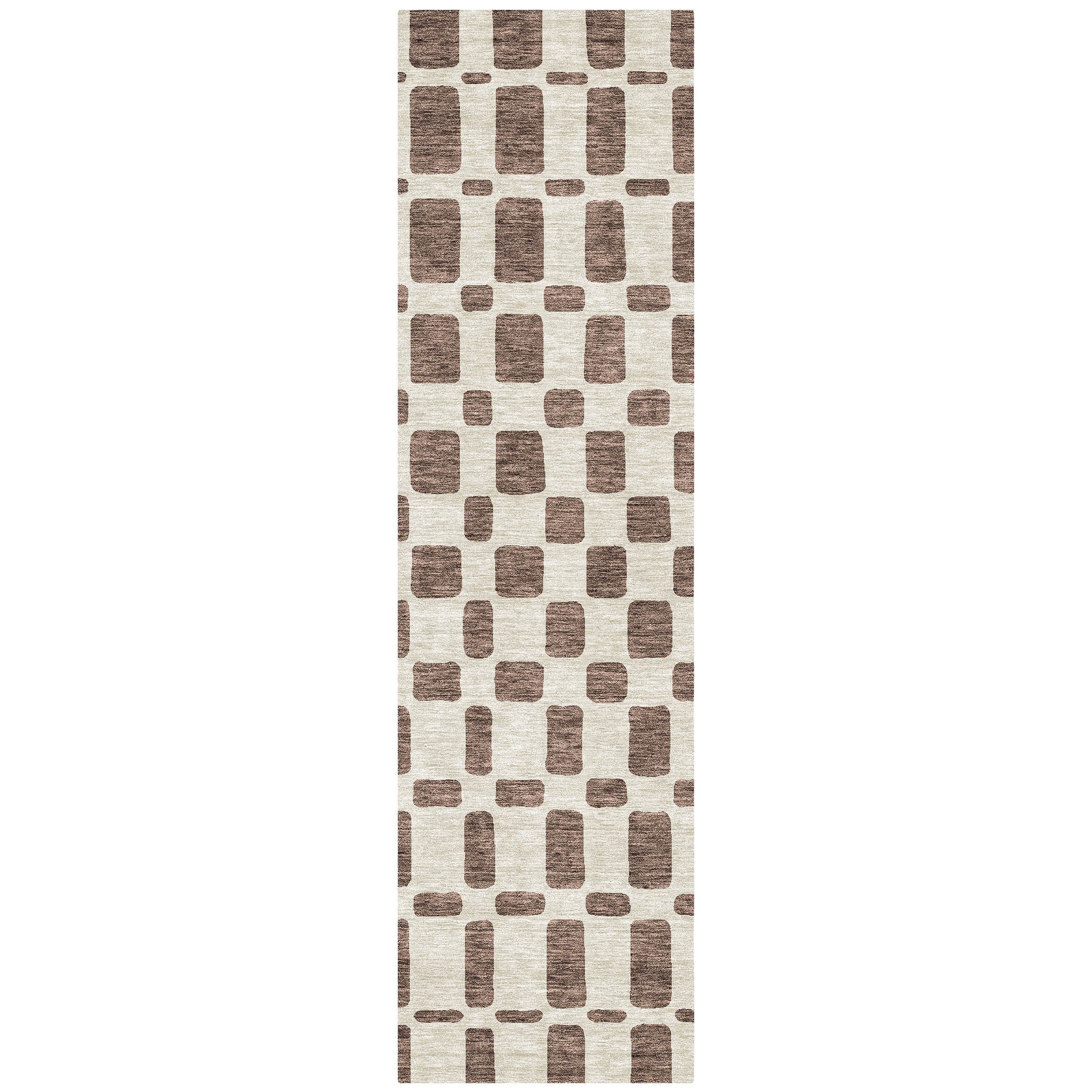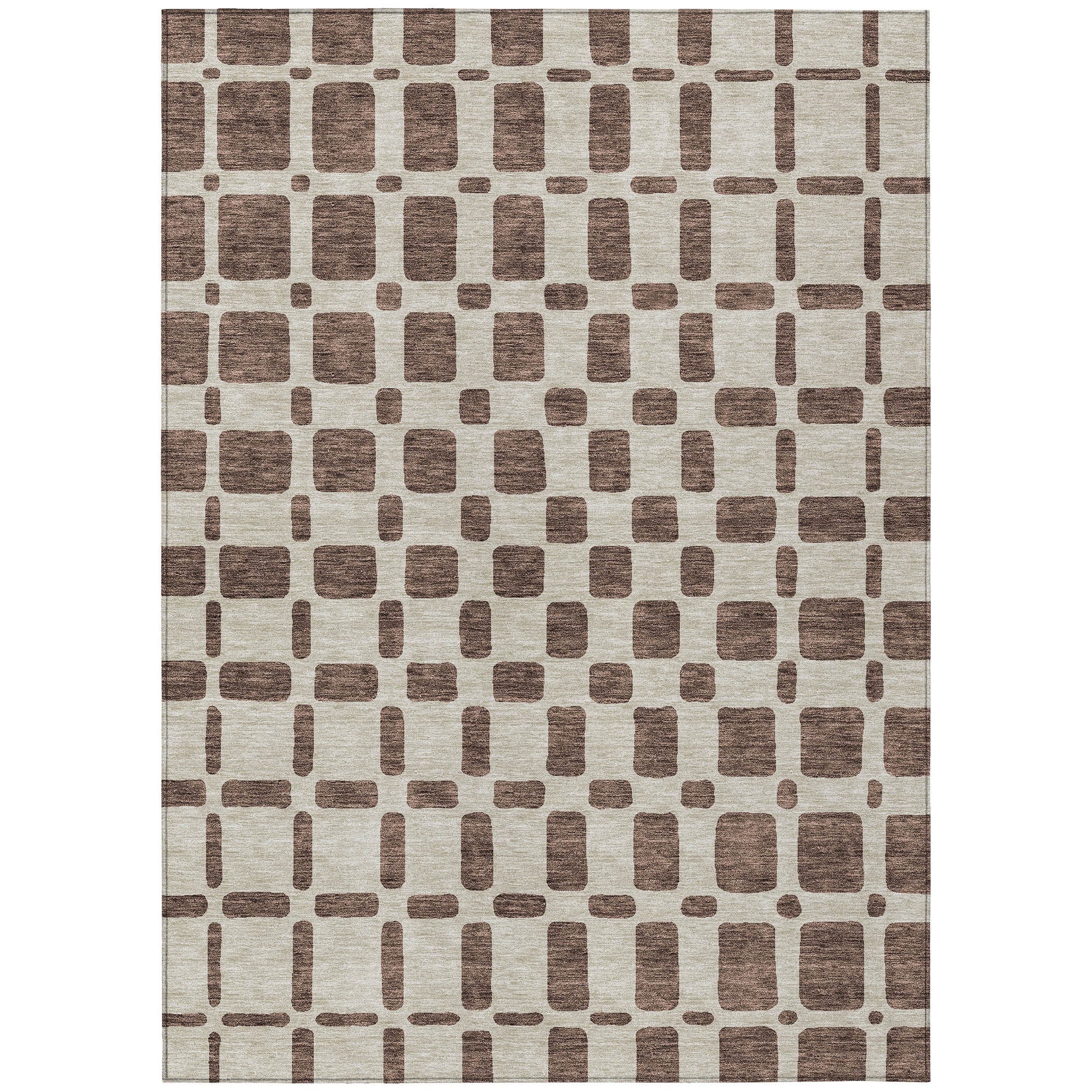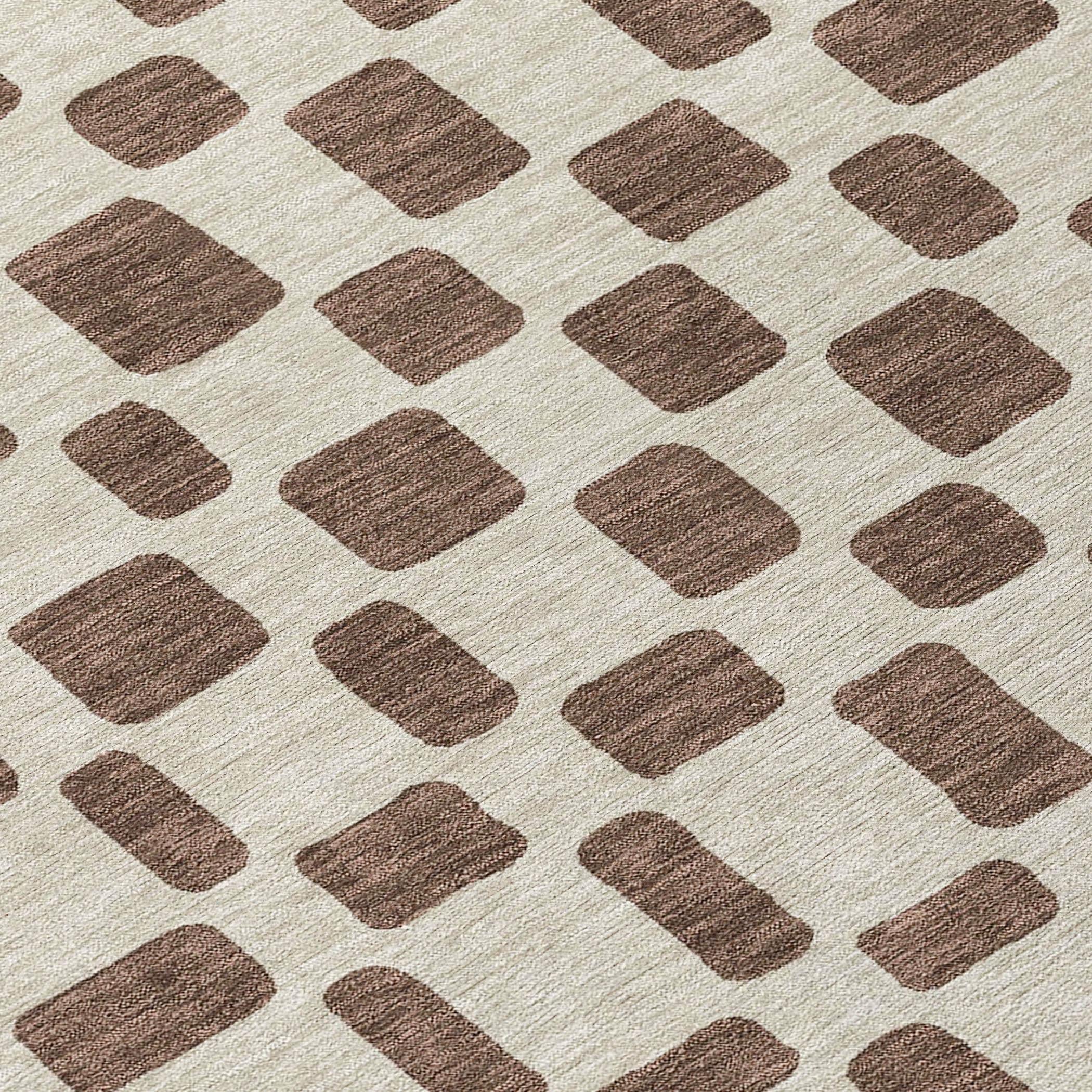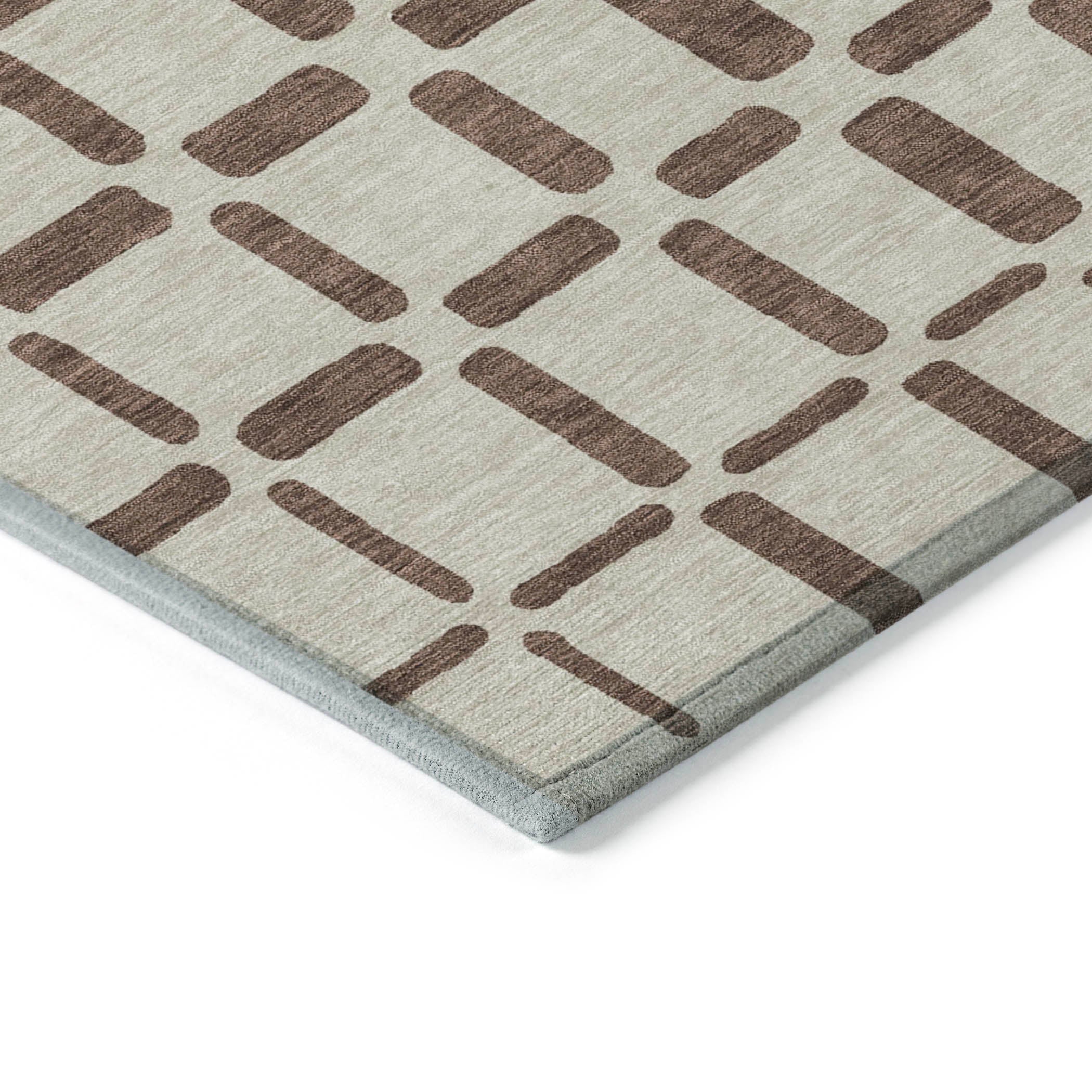 Enhance your home decor with the Chantille ACN871 Brown area rug. This chic rug showcases a unique criss-cross pattern of different shaped squares, bringing a contemporary flair to your space. The square motif lends a modern and dynamic vibe to any room, making it a versatile addition to your home.