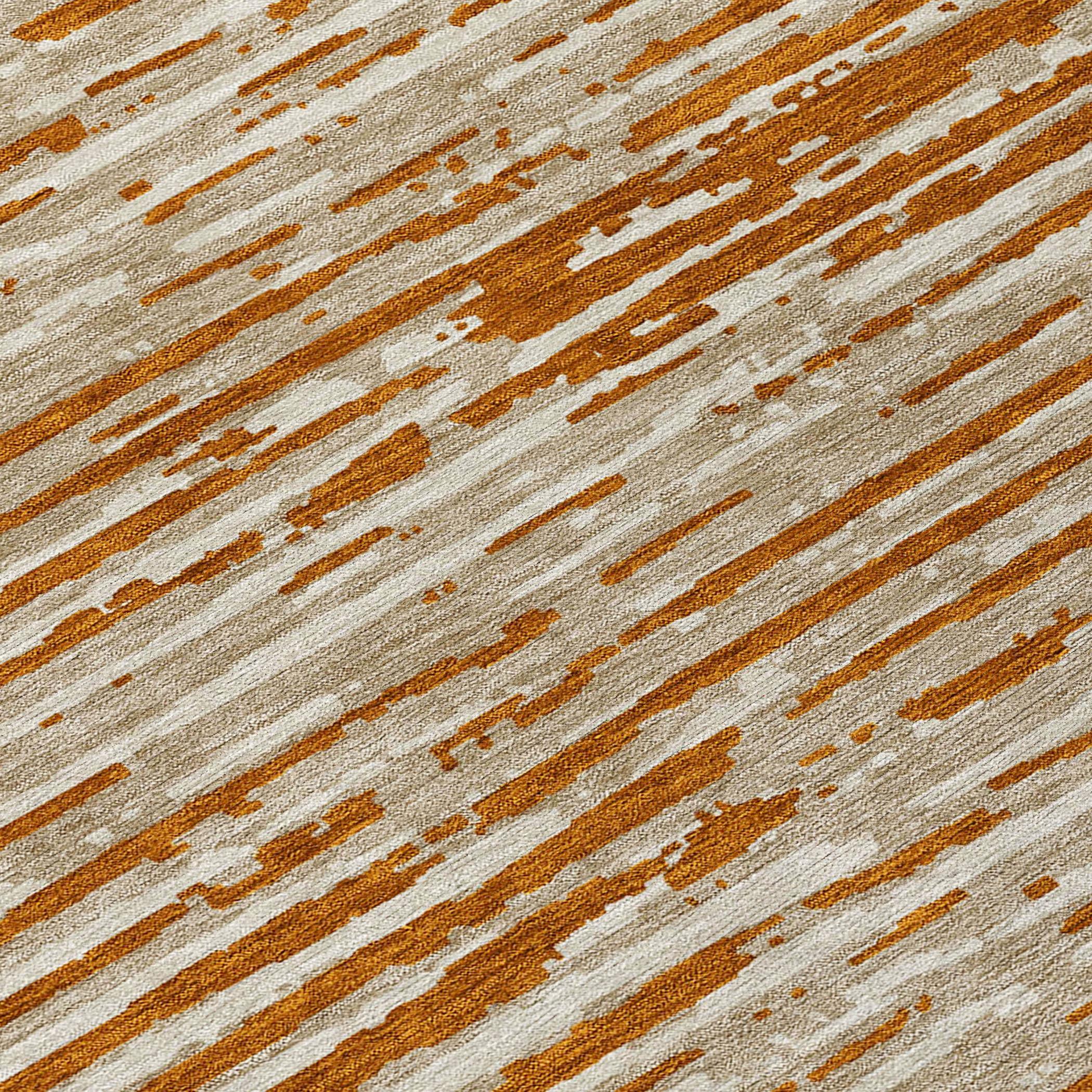 Chantille ACN888 Paprika area rug, a chic addition to your home decor. This rug boasts horizontal stripes with a modern twist, blending seamlessly for a transitional look. Designed for versatility, it is UV stabilized for use indoors and outdoors. The ultra-thin profile makes it easy to place in any room, while its machine-washable feature ensures practicality for homes with pets and kids.