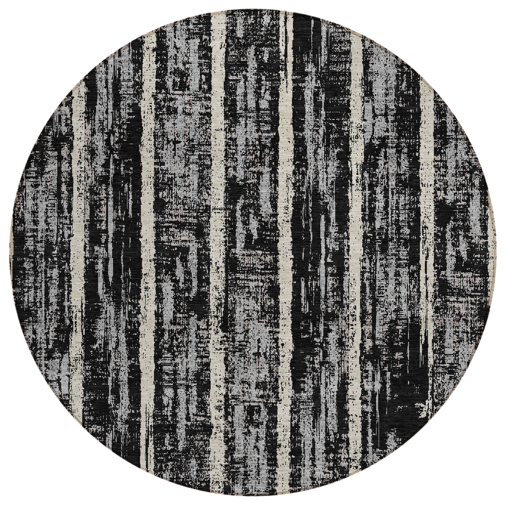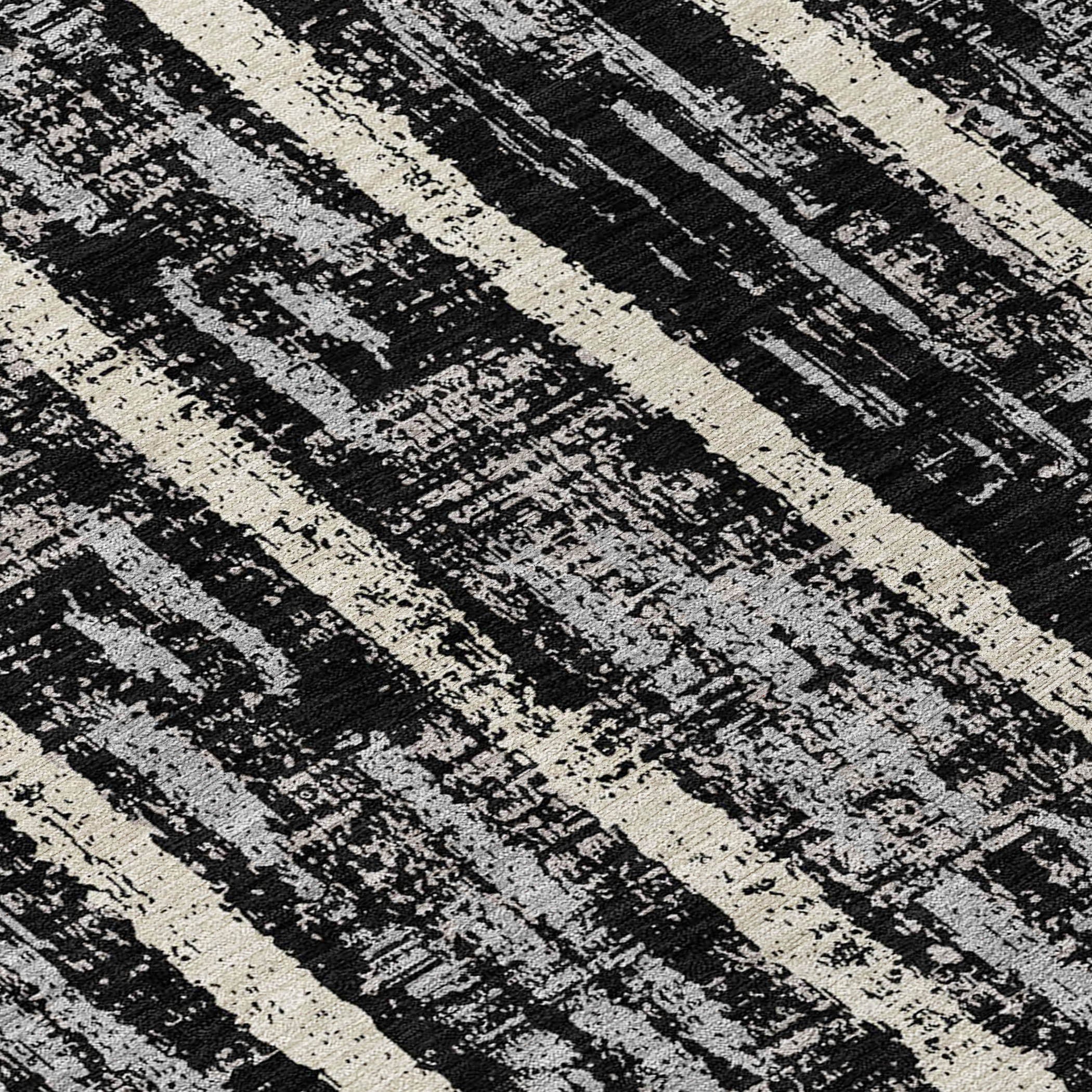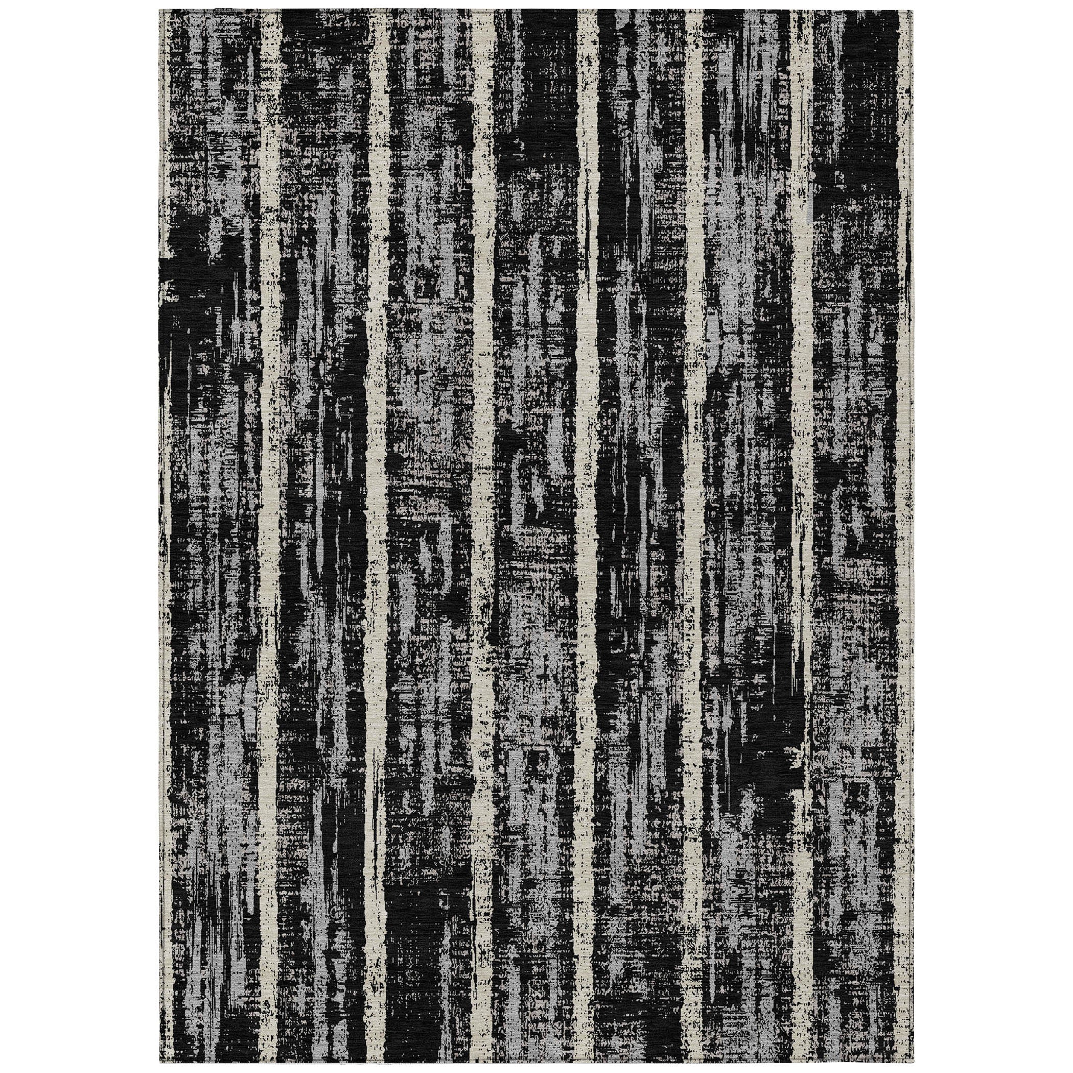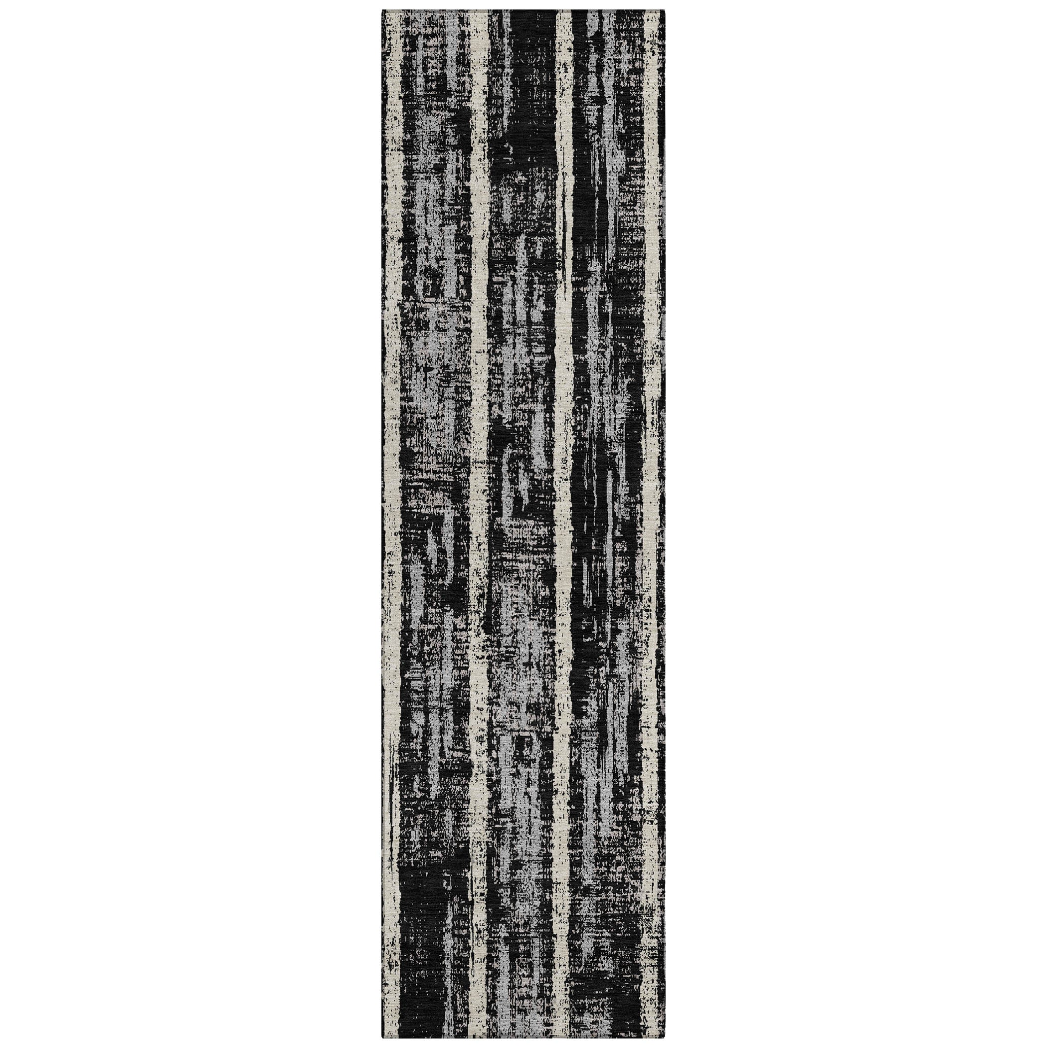 Elevate your room with the Chantille ACN892 Black area rug, a stunning piece that seamlessly blends vertical stripes with fragmented elements for an alluring and dynamic look. The transitional design of the stripes imbues this rug with a timeless quality that complements any interior decor style effortlessly.