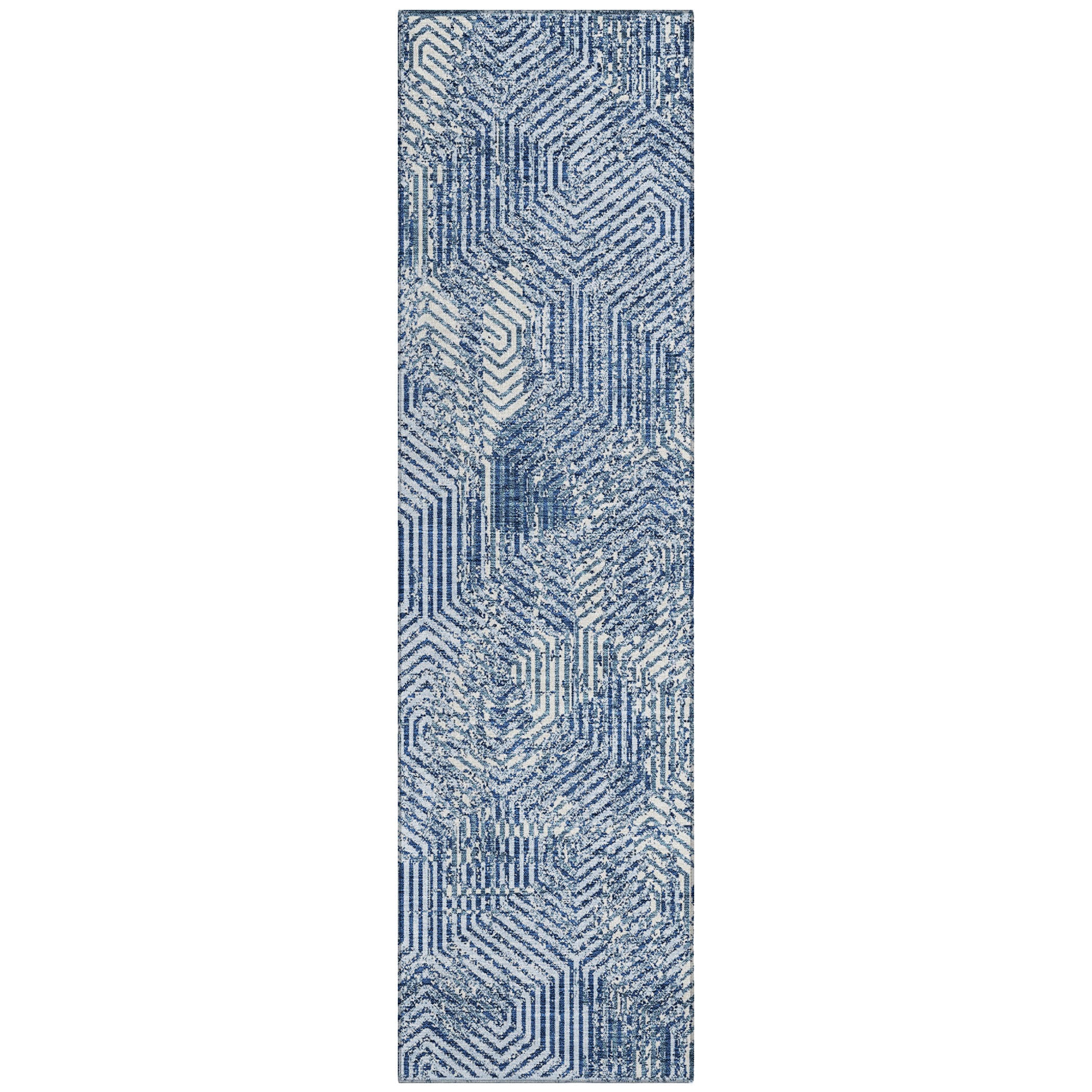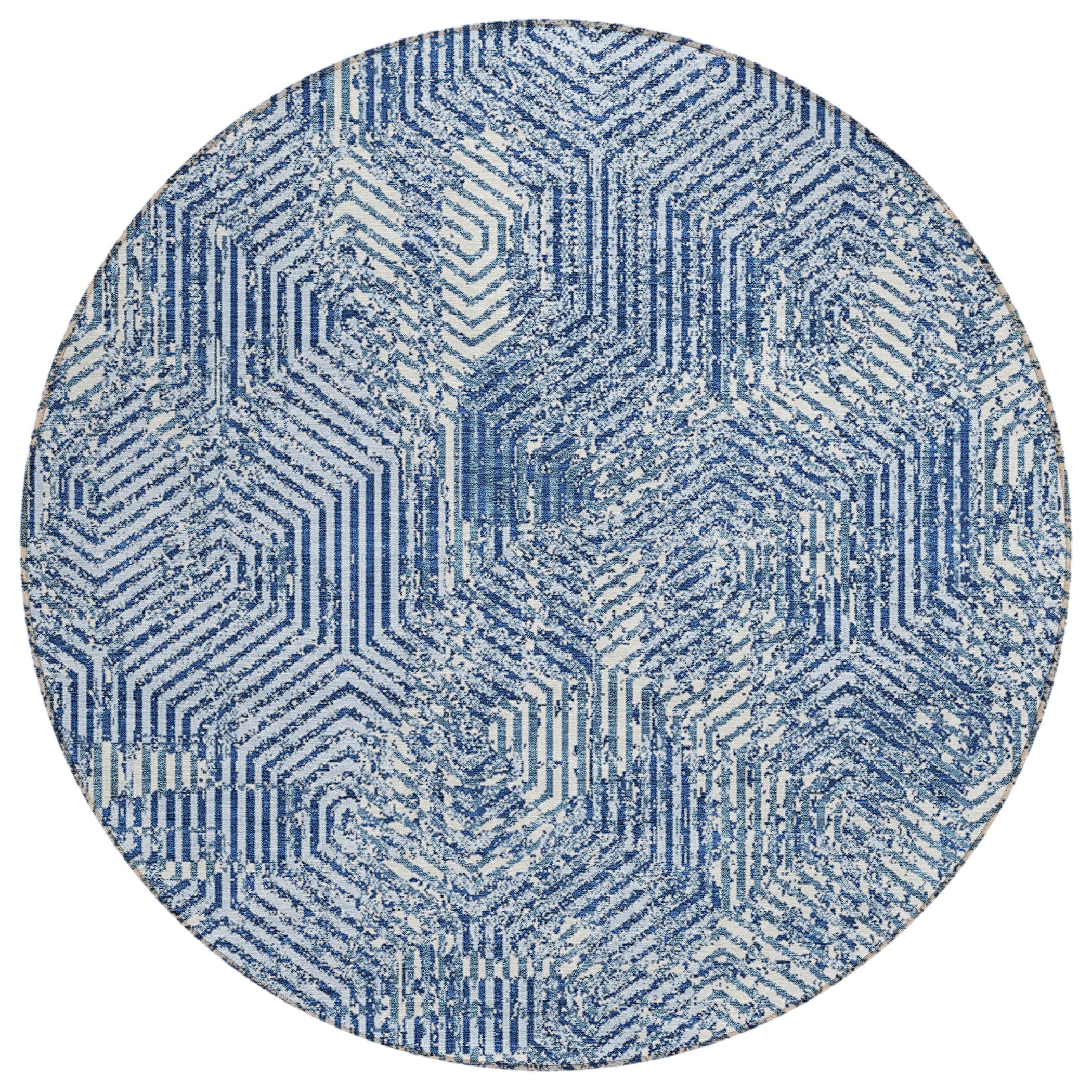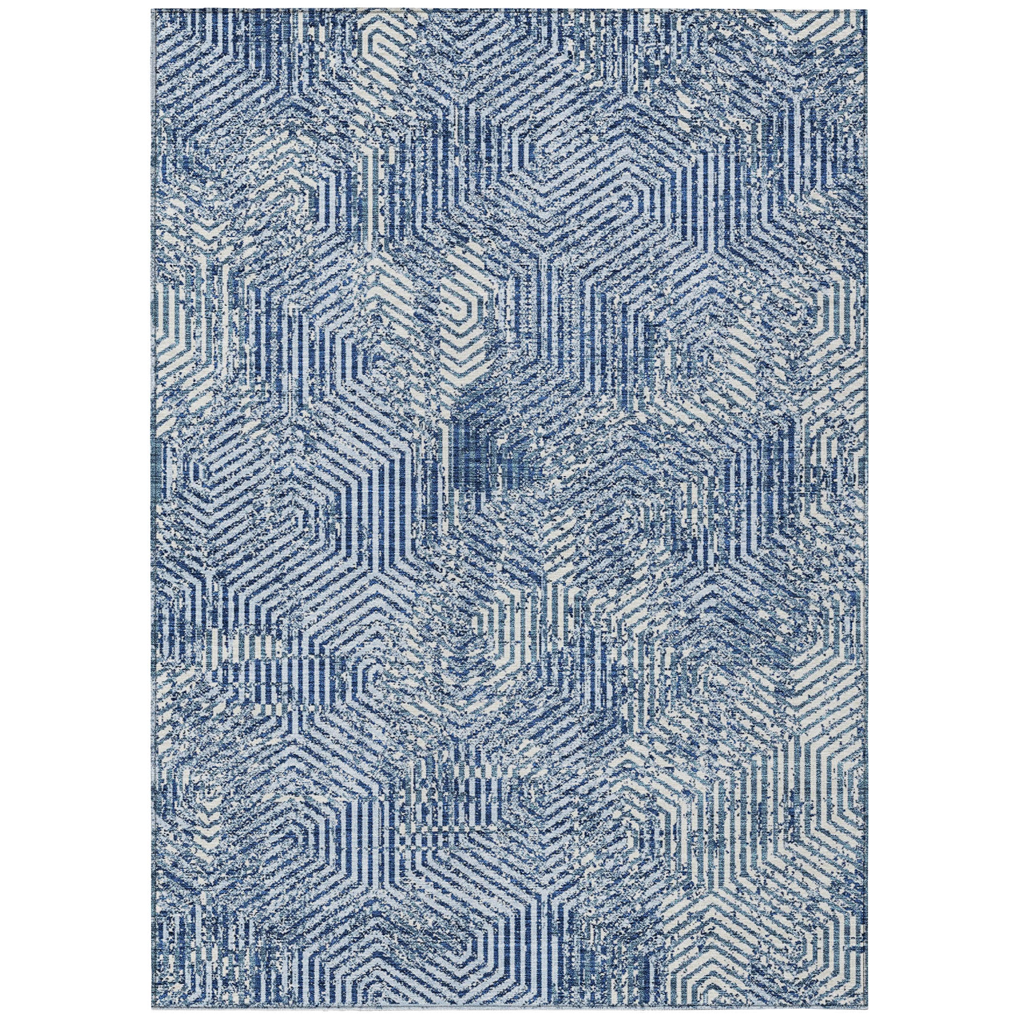 Chantille ACN912 Navy area rug, a versatile piece that effortlessly merges transitional and geometric styles. Its intricate maze pattern, composed of small narrow lines, adds a touch of visual interest to any space. Crafted with UV stabilization, this rug is suitable for both indoor and outdoor use, providing you with flexibility in decorating your home.