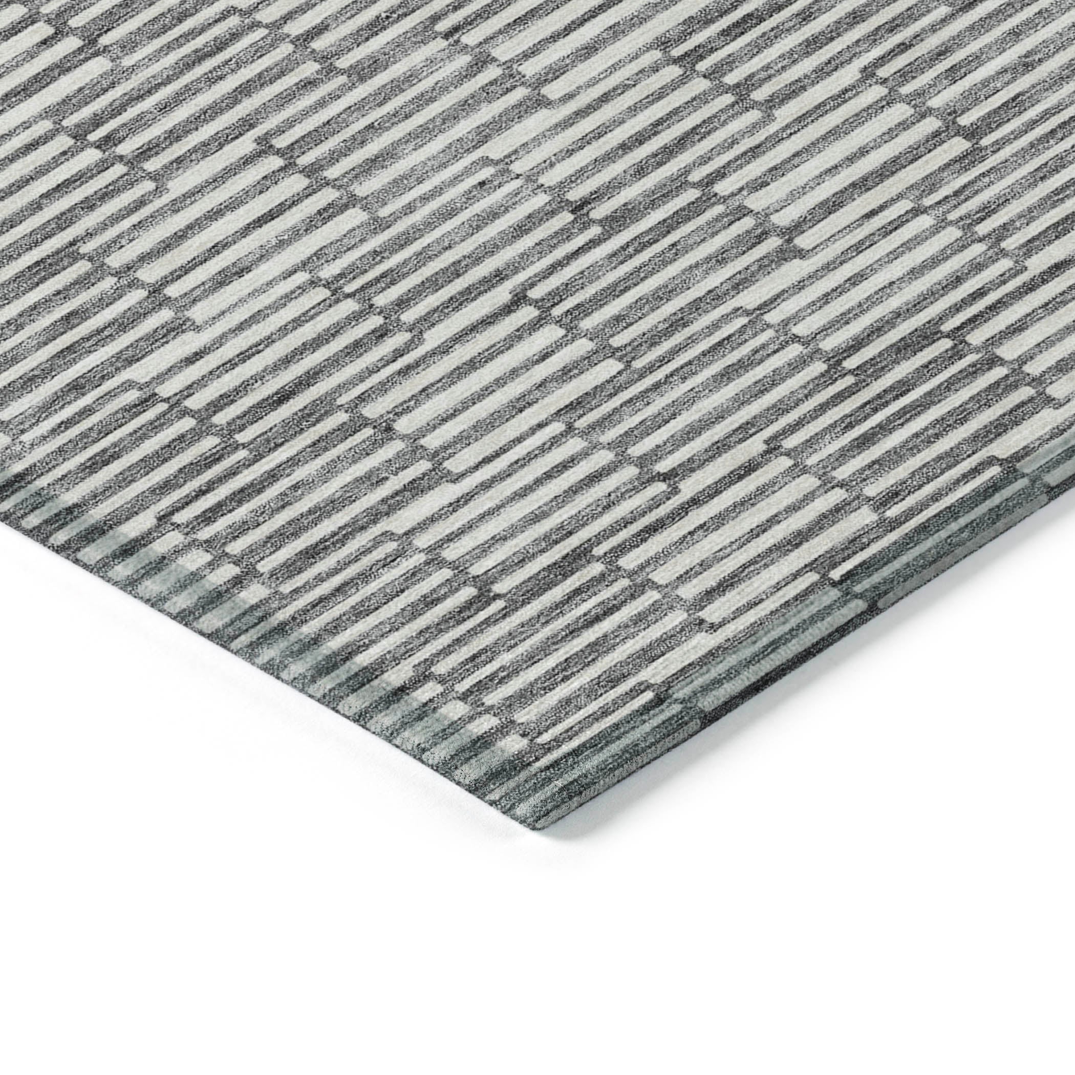 Chantille ACN918 Gray area rug, a perfect blend of elegance and functionality. Step into a world of sophistication as small rectangles unite to create a visually striking horizontal design. This rug seamlessly merges transitional style with linear charm, adding a touch of class to any space.