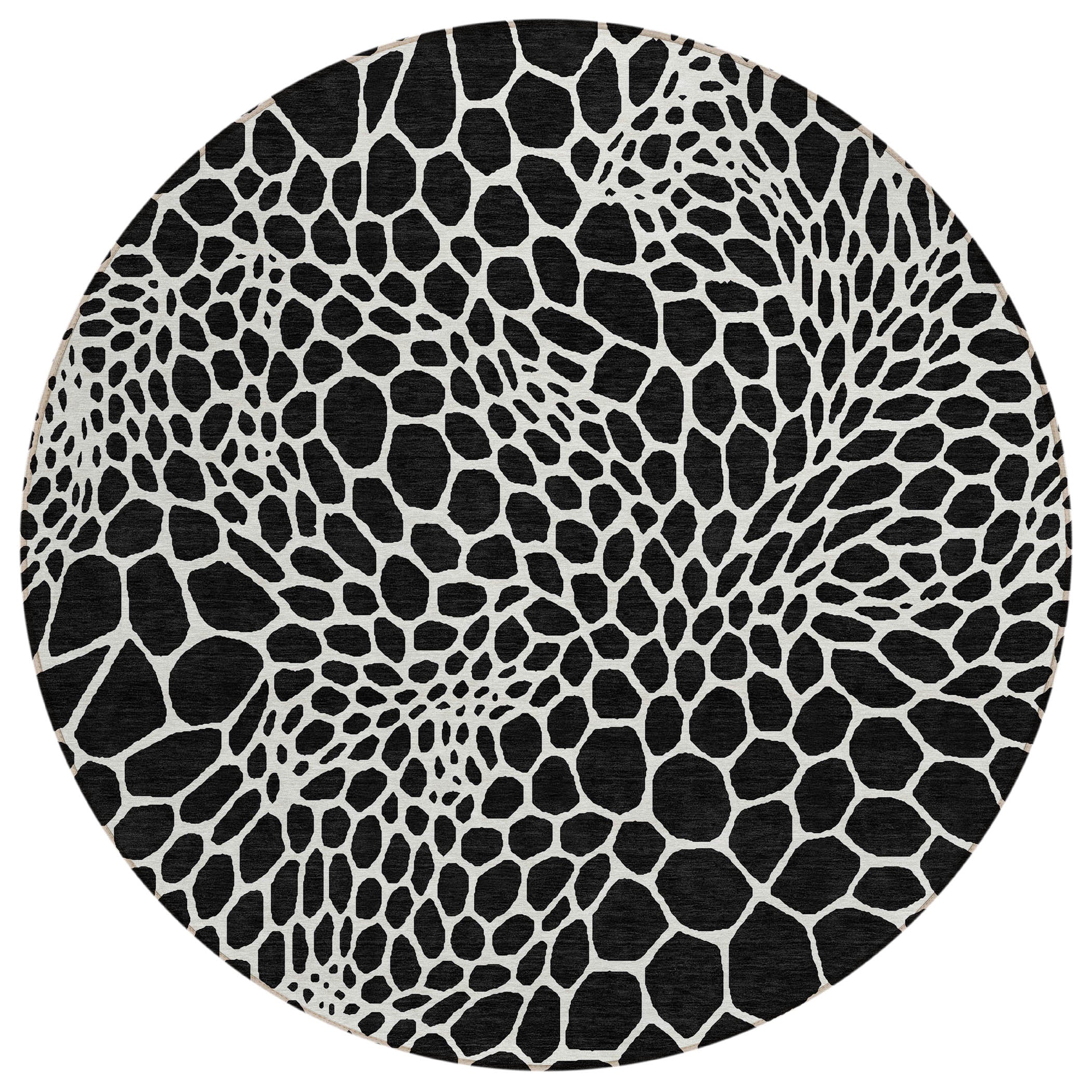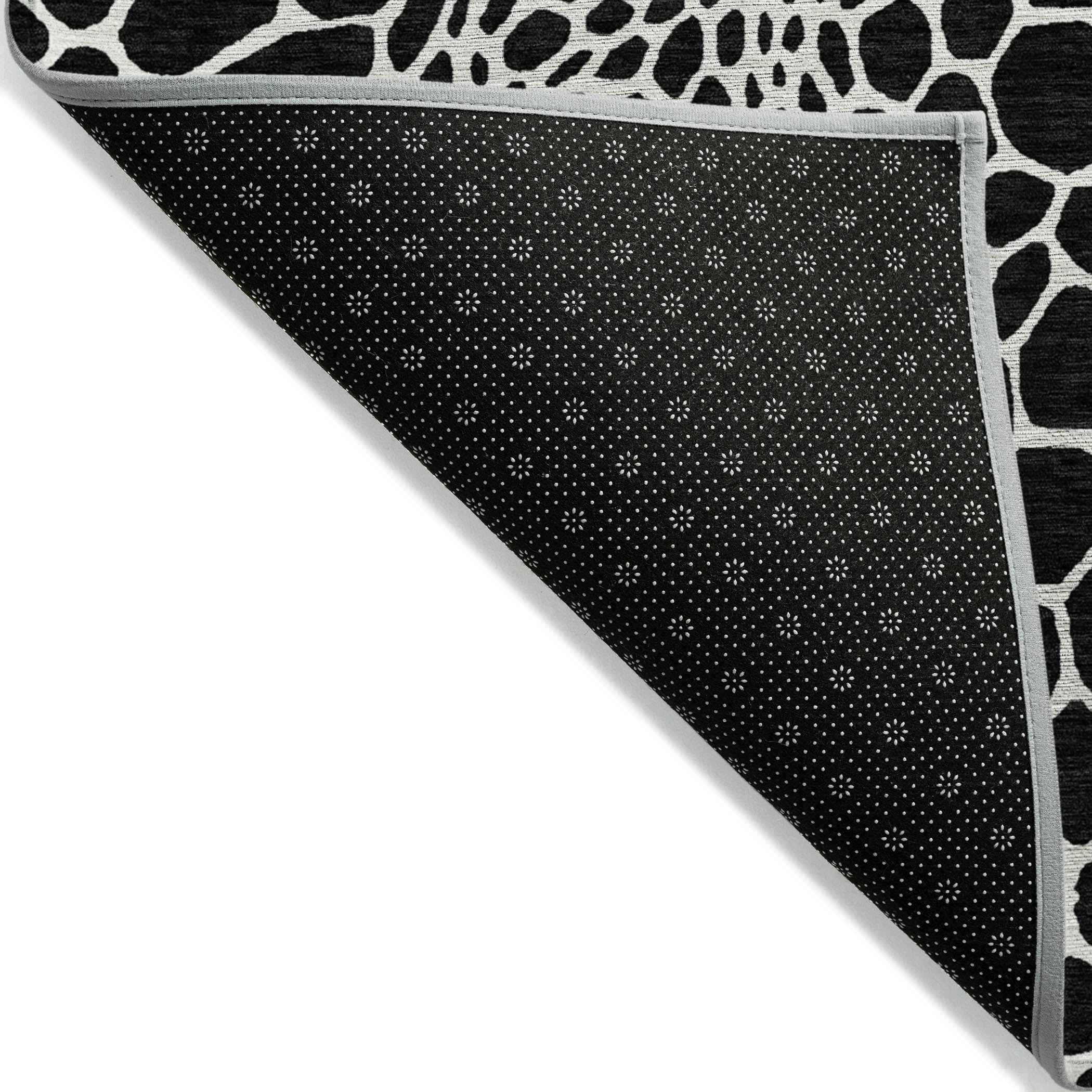 Chantille ACN919 Black area rug, a charming addition to your home decor. Boasting whimsical bubble-like shapes, this rug seamlessly blends transitional and geometric styles for a touch of elegance. Designed with versatility in mind, it is UV stabilized, suitable for both indoor and outdoor spaces. Its ultra-thin construction and machine-washable feature make it perfect for homes with pets or families, offering both style and practicality in one piece. Elevate your living space with this delightful rug that brings a sense of free-flowing beauty to any room.