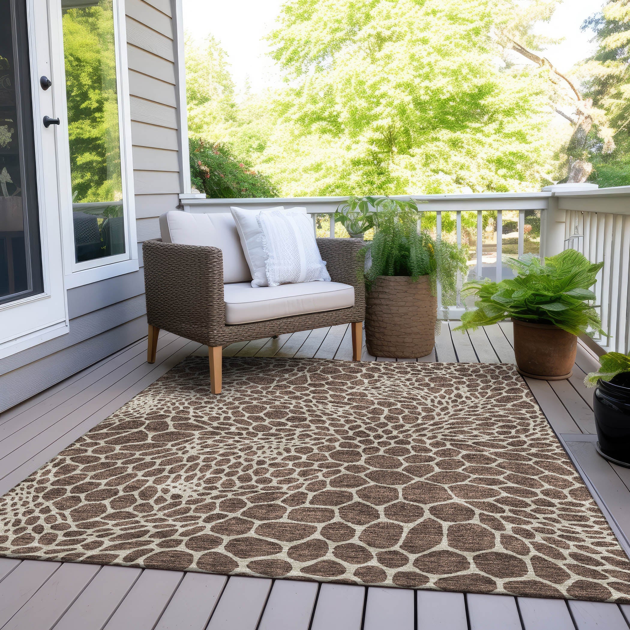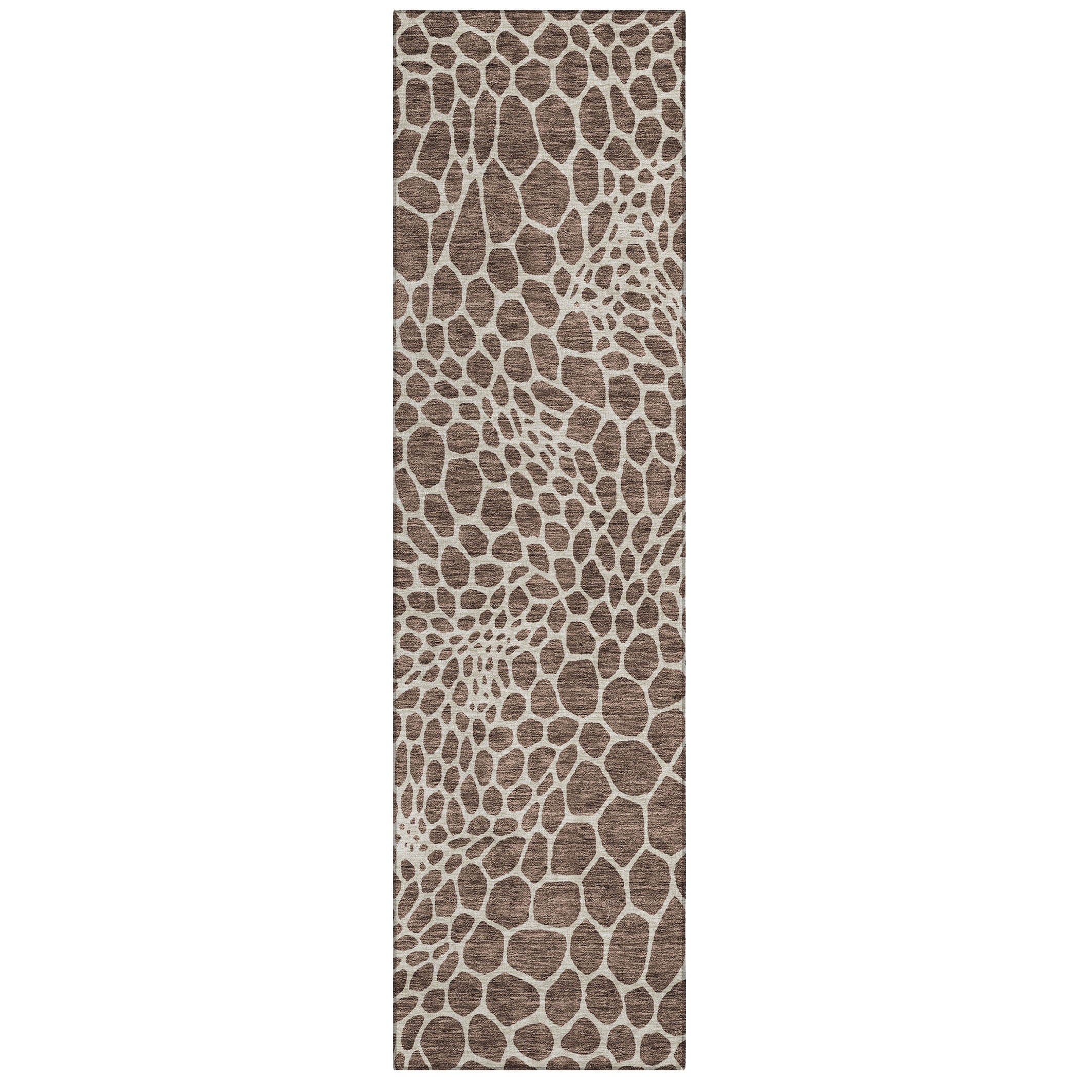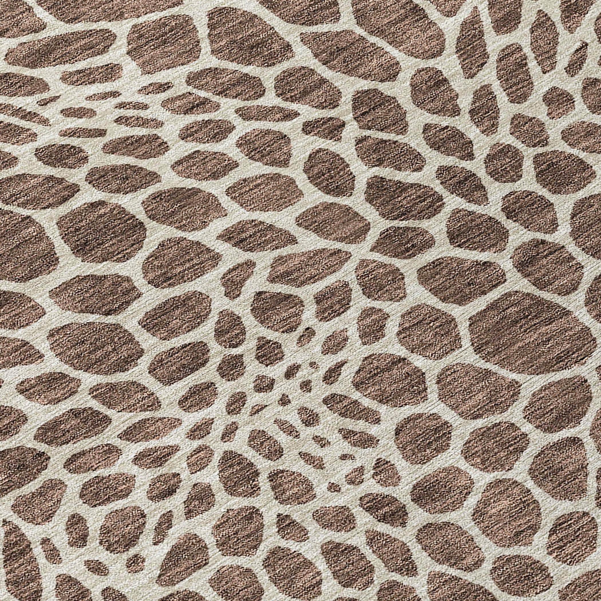 Chantille ACN919 Brown area rug, a charming addition to your home decor. This rug boasts small bubble-like shapes that effortlessly blend transitional and geometric design elements, creating a visually captivating piece. Designed for versatility, it is UV stabilized, perfect for both indoor and outdoor use. The ultra-thin construction and machine-washable feature make it a practical choice for homes with pets or families.