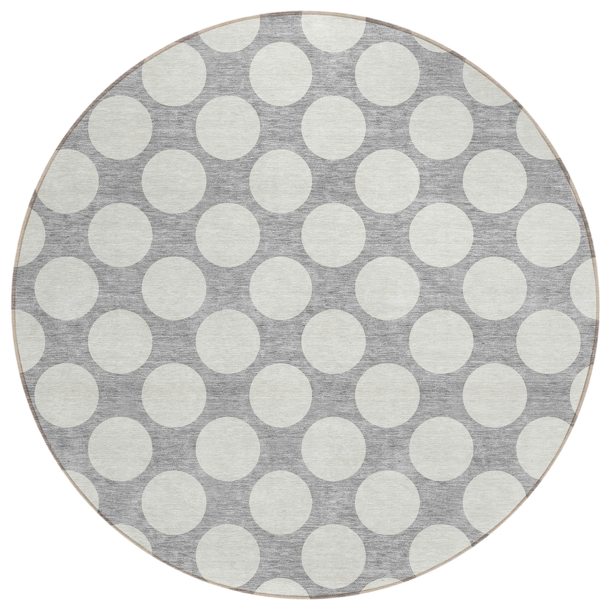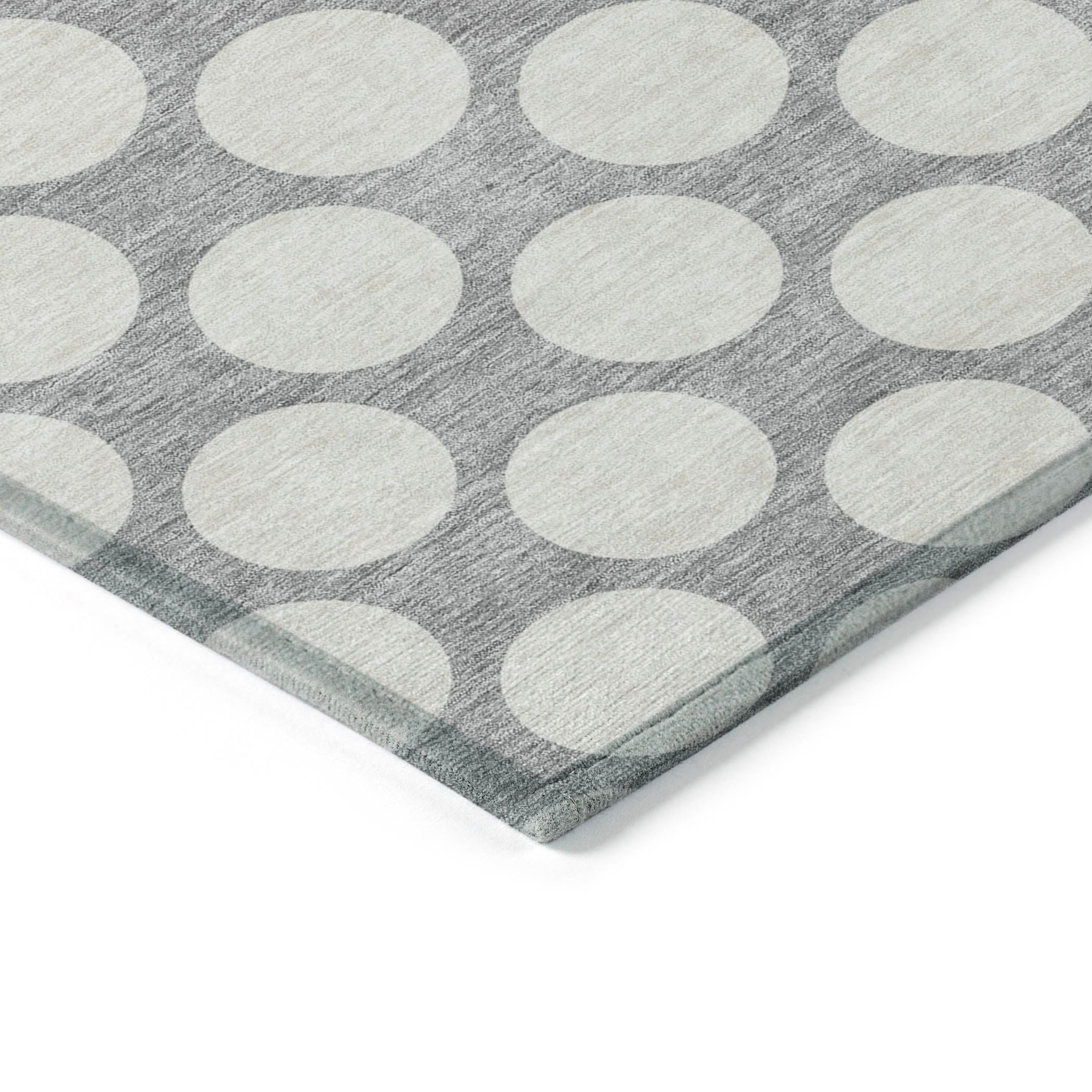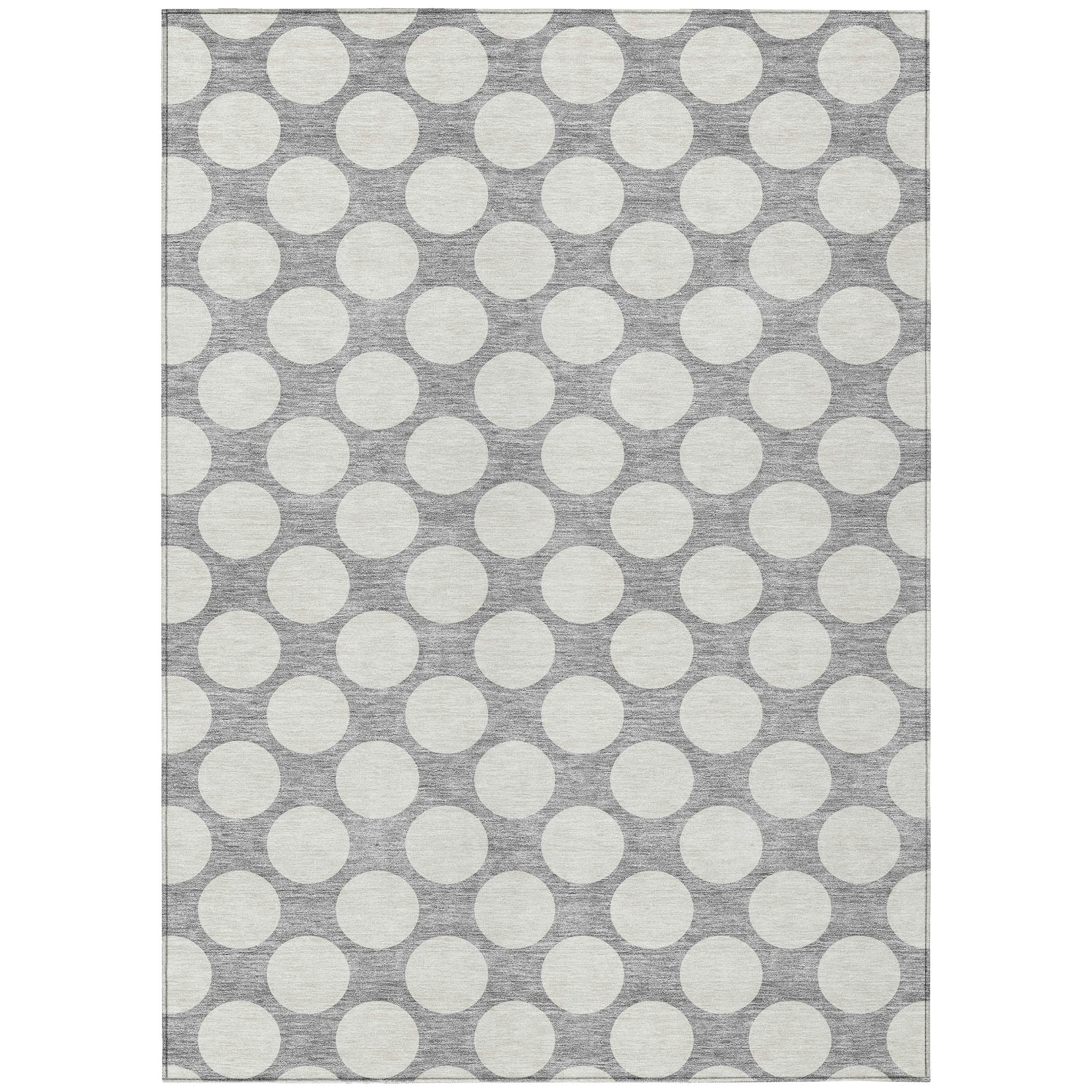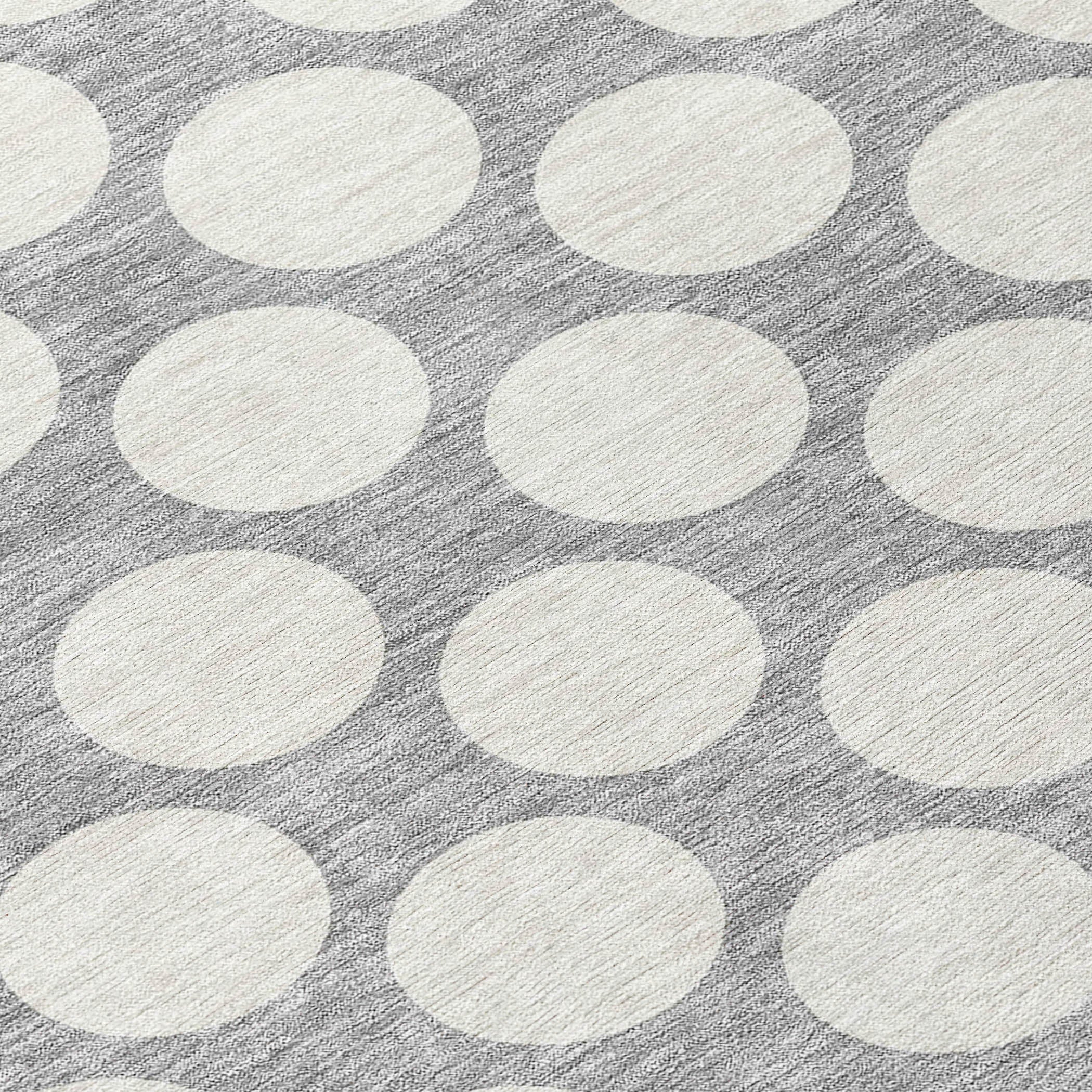 Chantille ACN921 Gray area rug, a stylish addition to any space. This rug features medium-sized circles arranged in a classic polka dot pattern, adding a touch of playfulness and elegance to your decor. Versatile and transitional, it can effortlessly complement any setting.