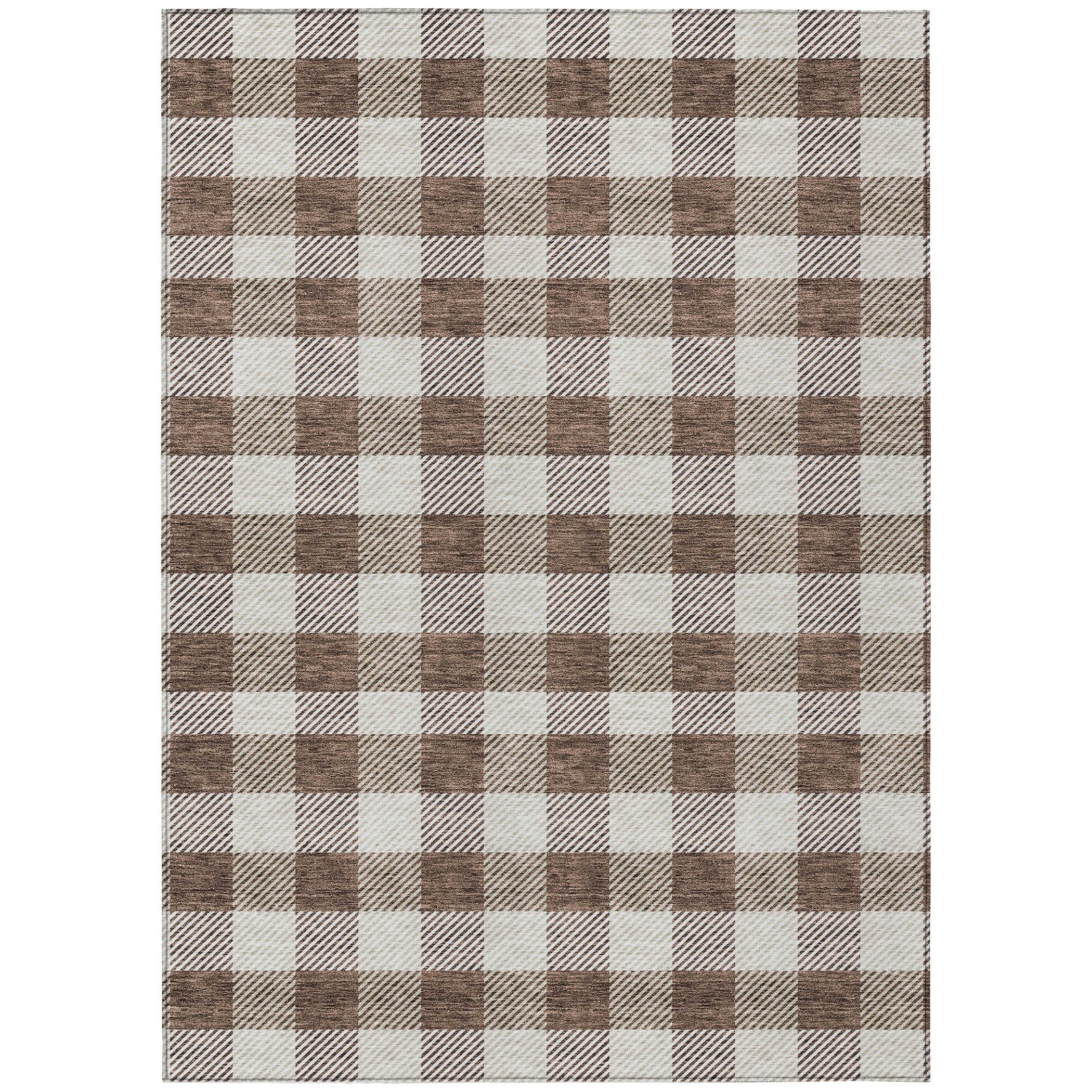 Elevate your home decor with the Chantille ACN924 Brown area rug. Its stylish two-tone plaid design effortlessly combines transitional and classic elements, adding a touch of sophistication to any room. This versatile rug is UV stabilized, suitable for both indoor and outdoor use, making it perfect for any living space. The ultra-thin construction and machine-washable feature ensure easy maintenance, ideal for busy households or homes with pets. Bring comfort and style together with this chic and practical rug that complements any interior design scheme effortlessly. Upgrade your space with the timeless charm of the Chantille ACN924 Brown rug today!