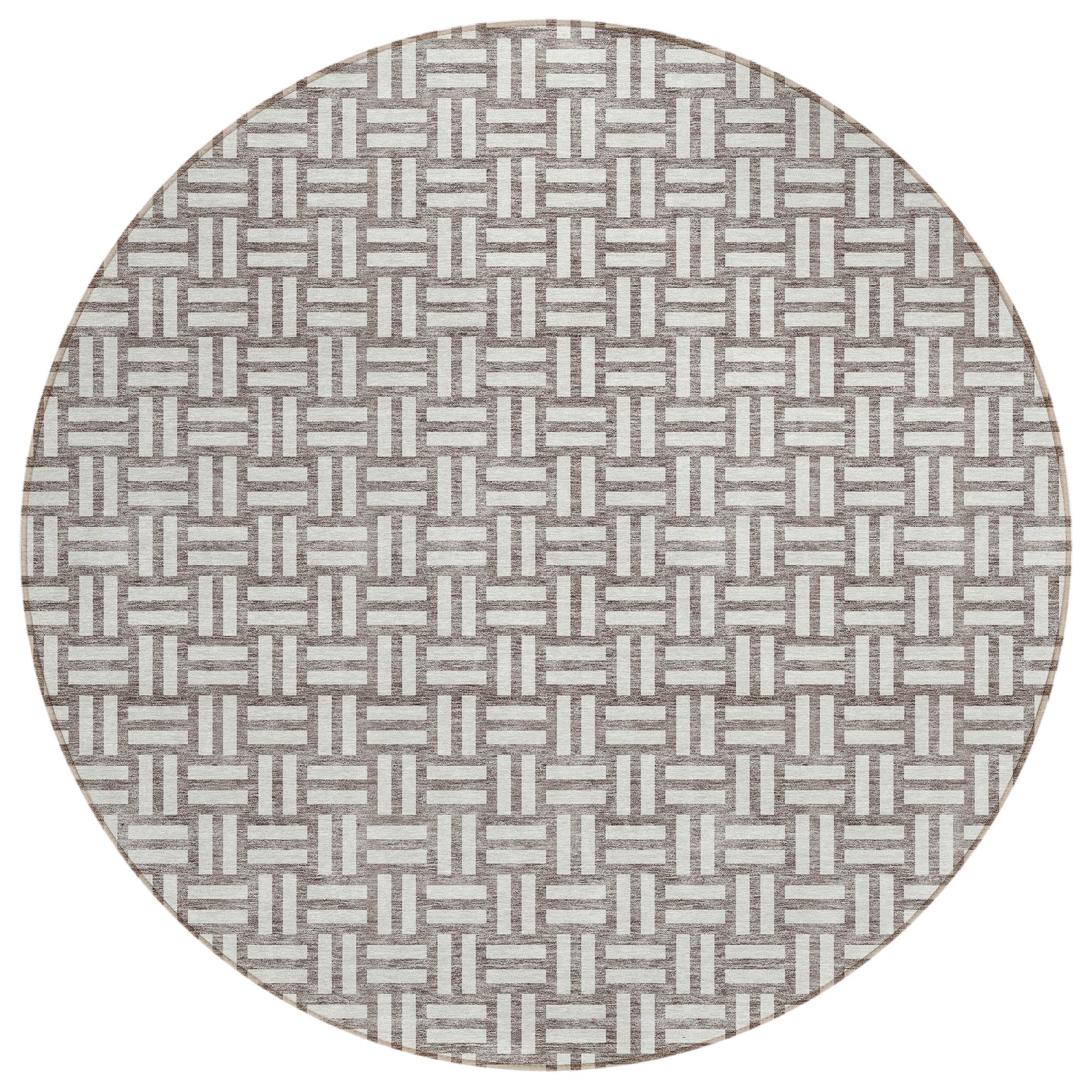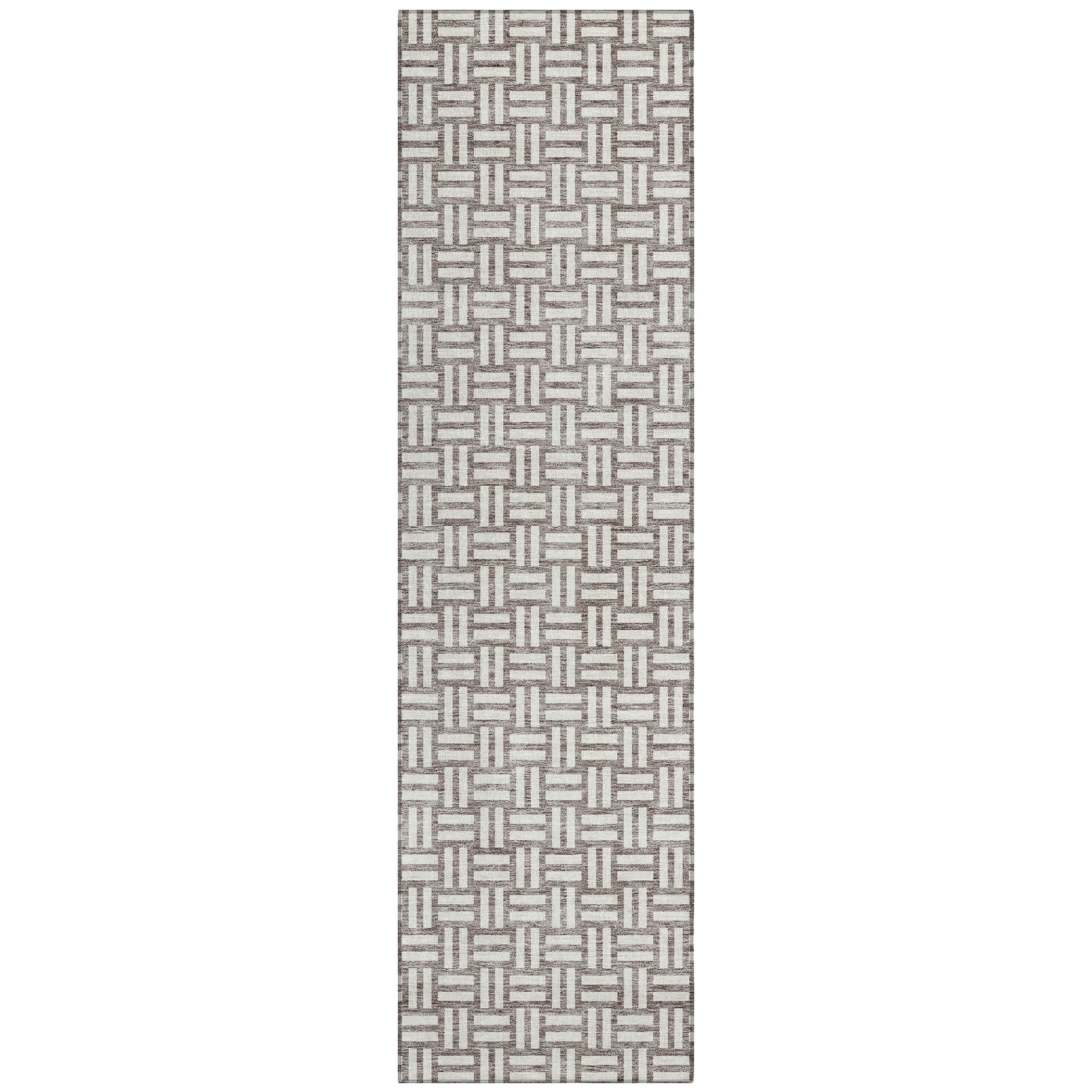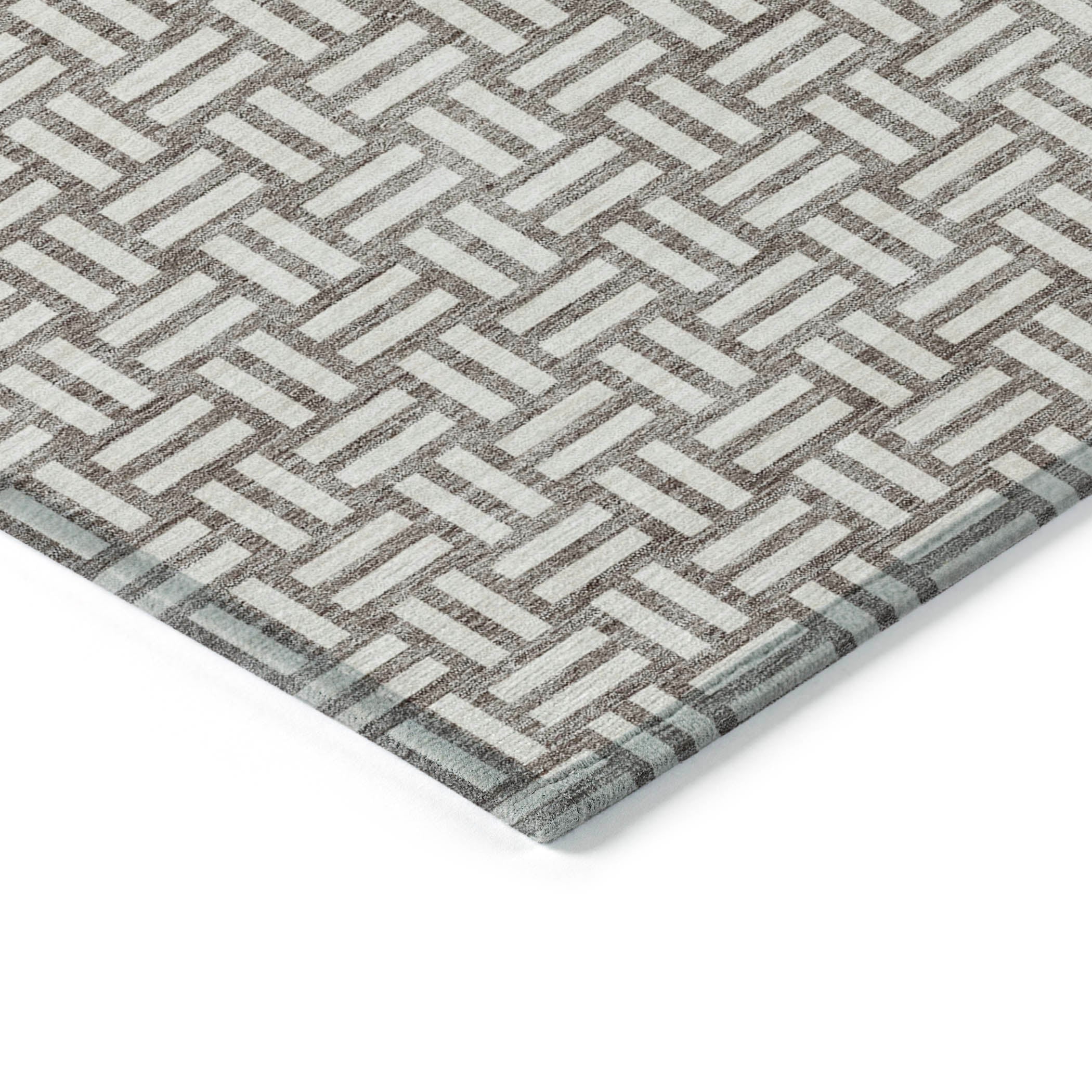 Chantille ACN925 Taupe area rug, a sophisticated addition to your home decor. This elegant rug features a unique weave-like pattern created by small rectangular boxes, seamlessly blending transitional style with modern square designs. Crafted for both durability and versatility, this rug is UV stabilized for use in any indoor or outdoor setting.