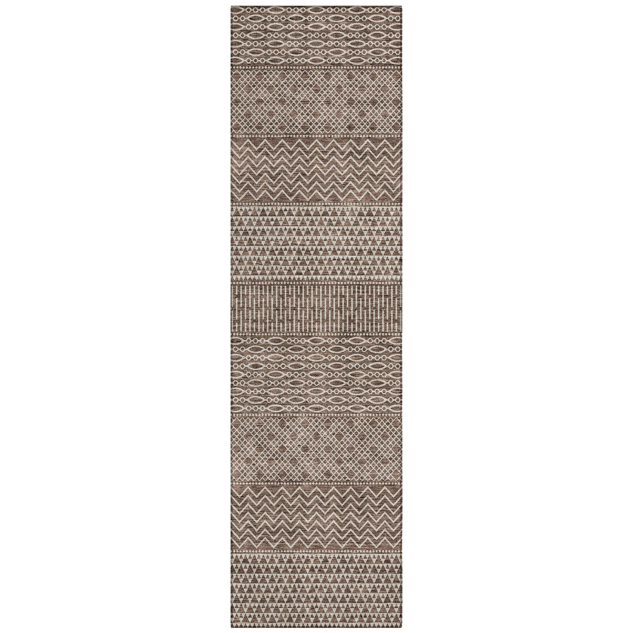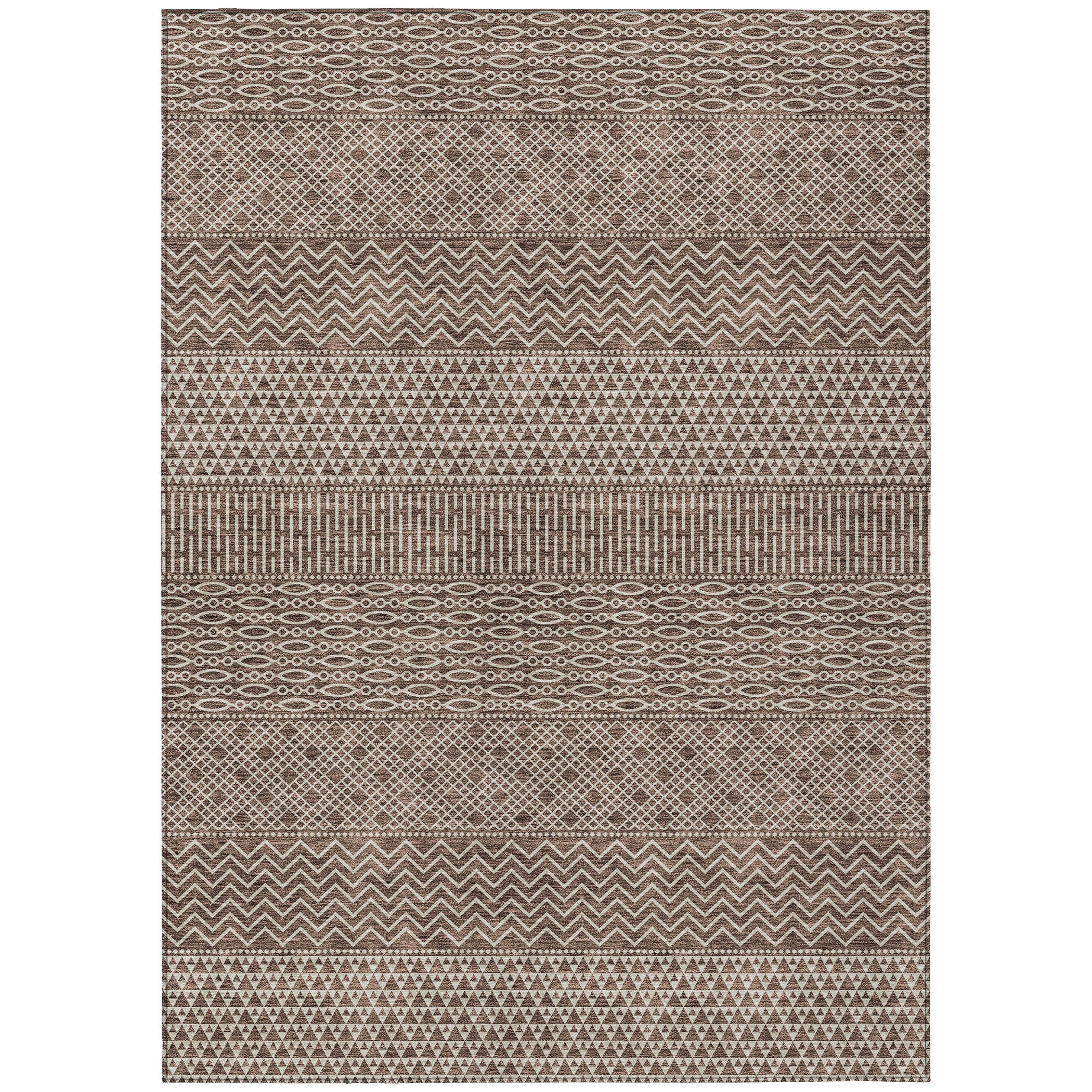Elevate your living space with the Chantille ACN939 Brown area rug. Its classic design showcases horizontal stripes in a modern geometric pattern, perfect for enhancing any transitional decor style. This versatile rug is UV stabilized, ensuring it stays vibrant and fade-resistant even when used outdoors.