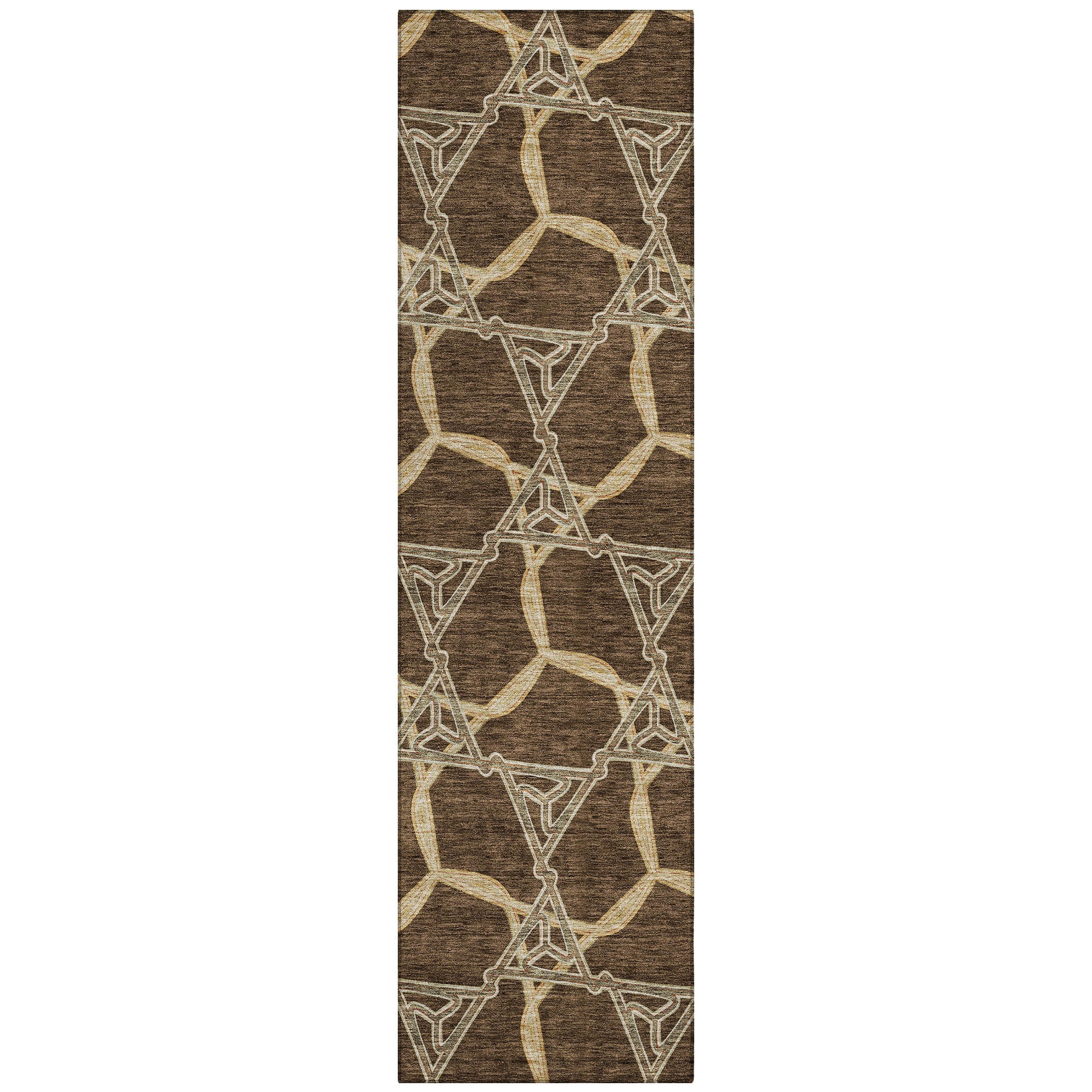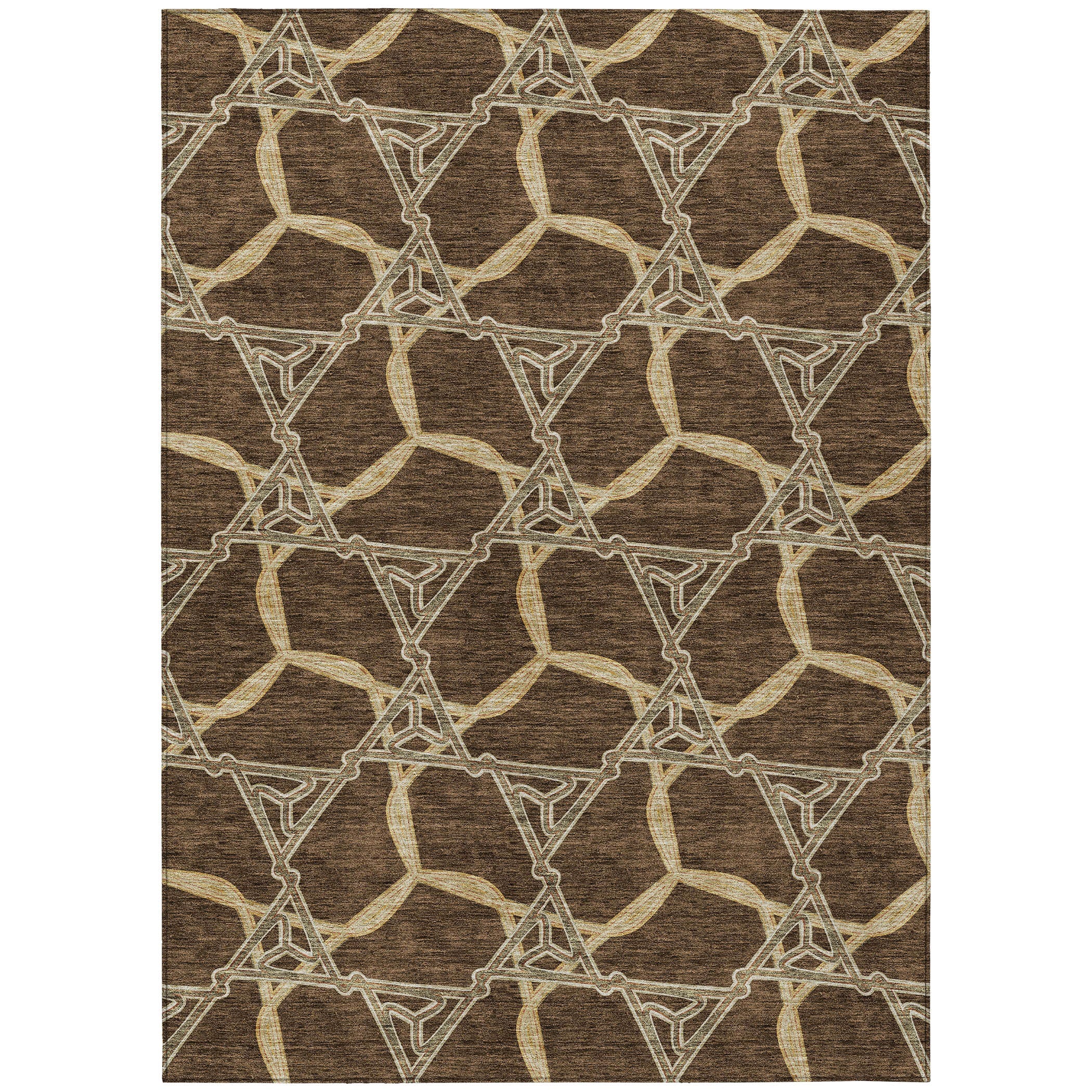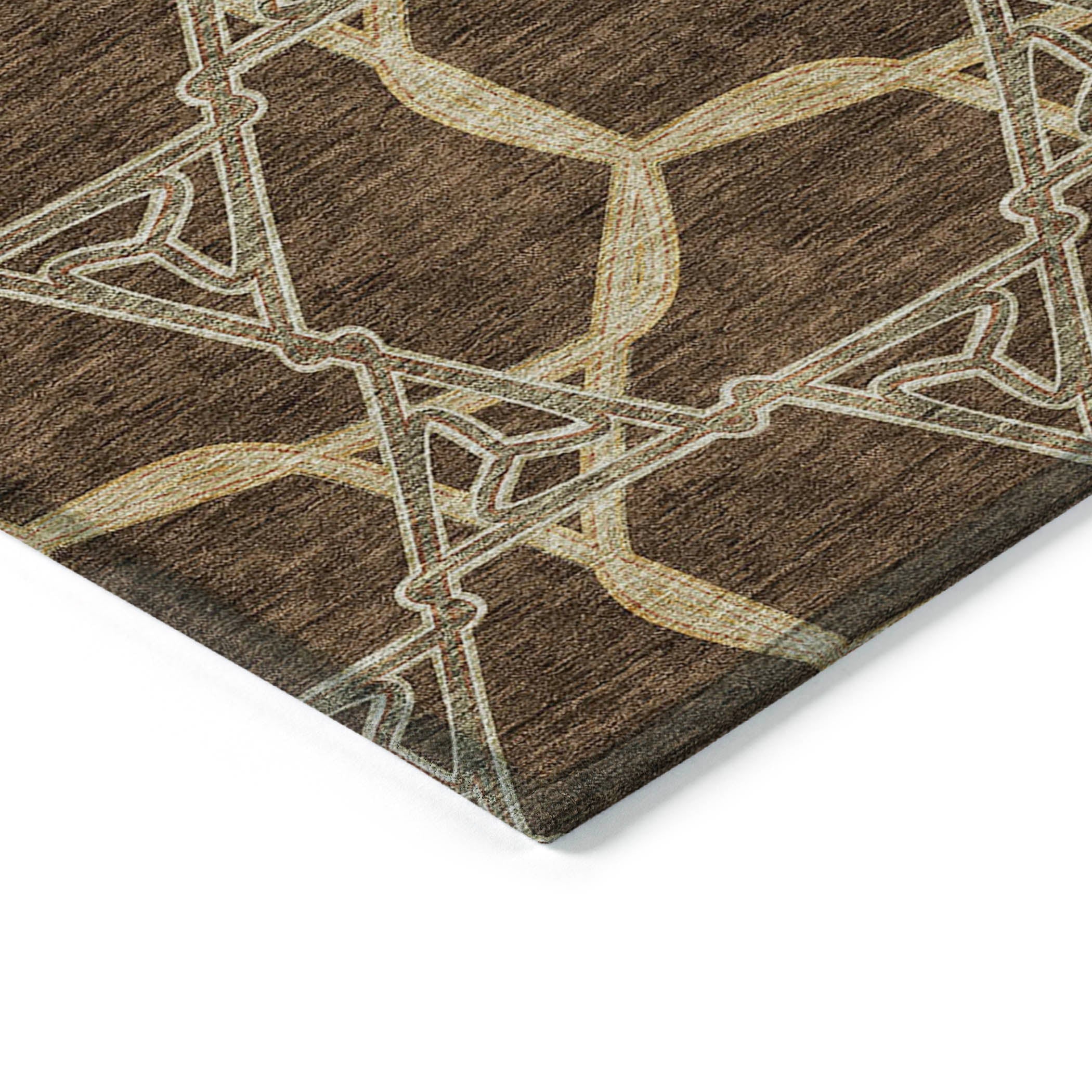 Chantille ACN959 Brown area rug, a versatile piece that perfectly embodies transitional style with a modern twist. The chainlike lines of this rug create a sense of depth and complexity, making it a unique addition to any room. Crafted for both durability and design, this rug features UV stabilization for added versatility, an ultra-thin profile for easy placement, and is machine-washable for effortless upkeep.