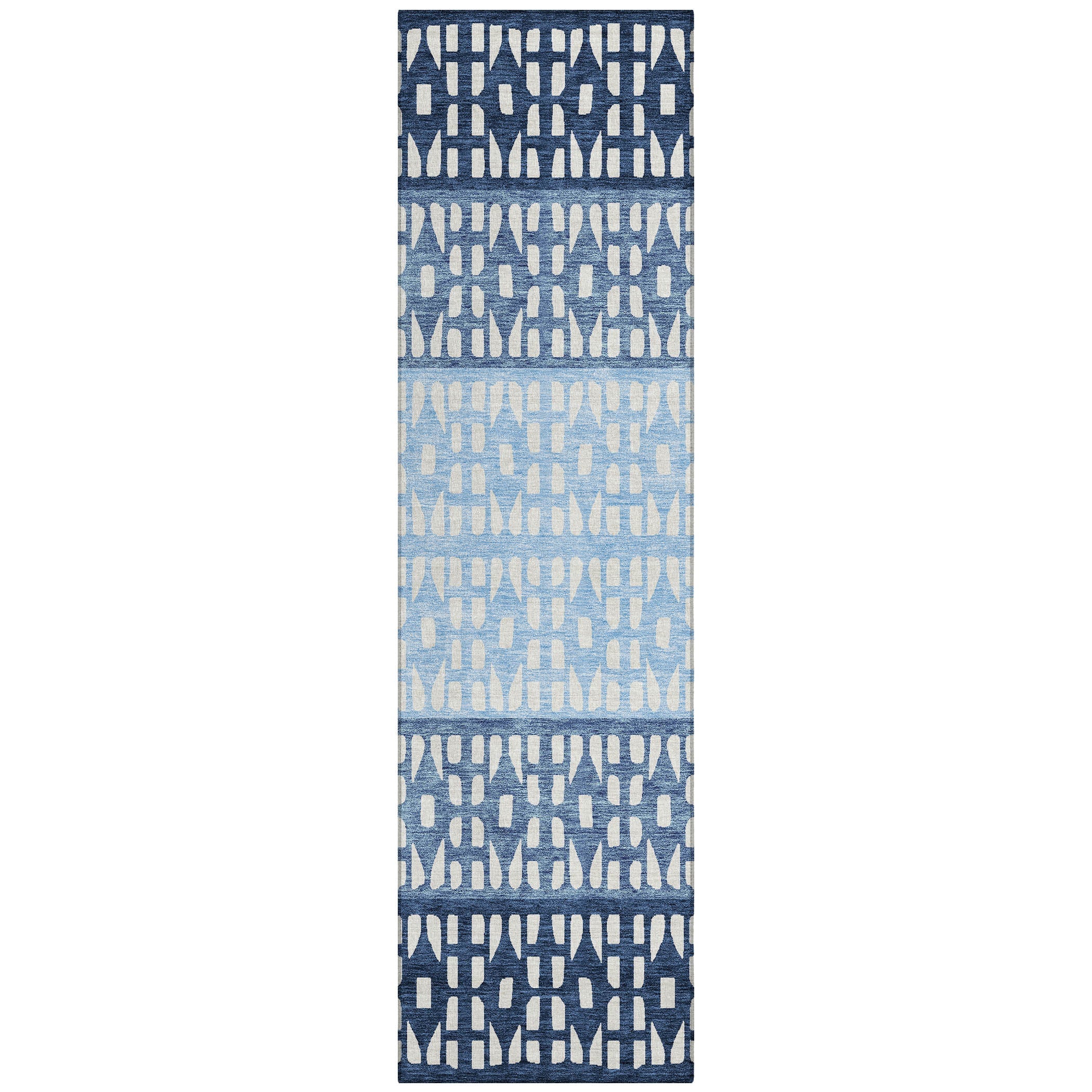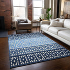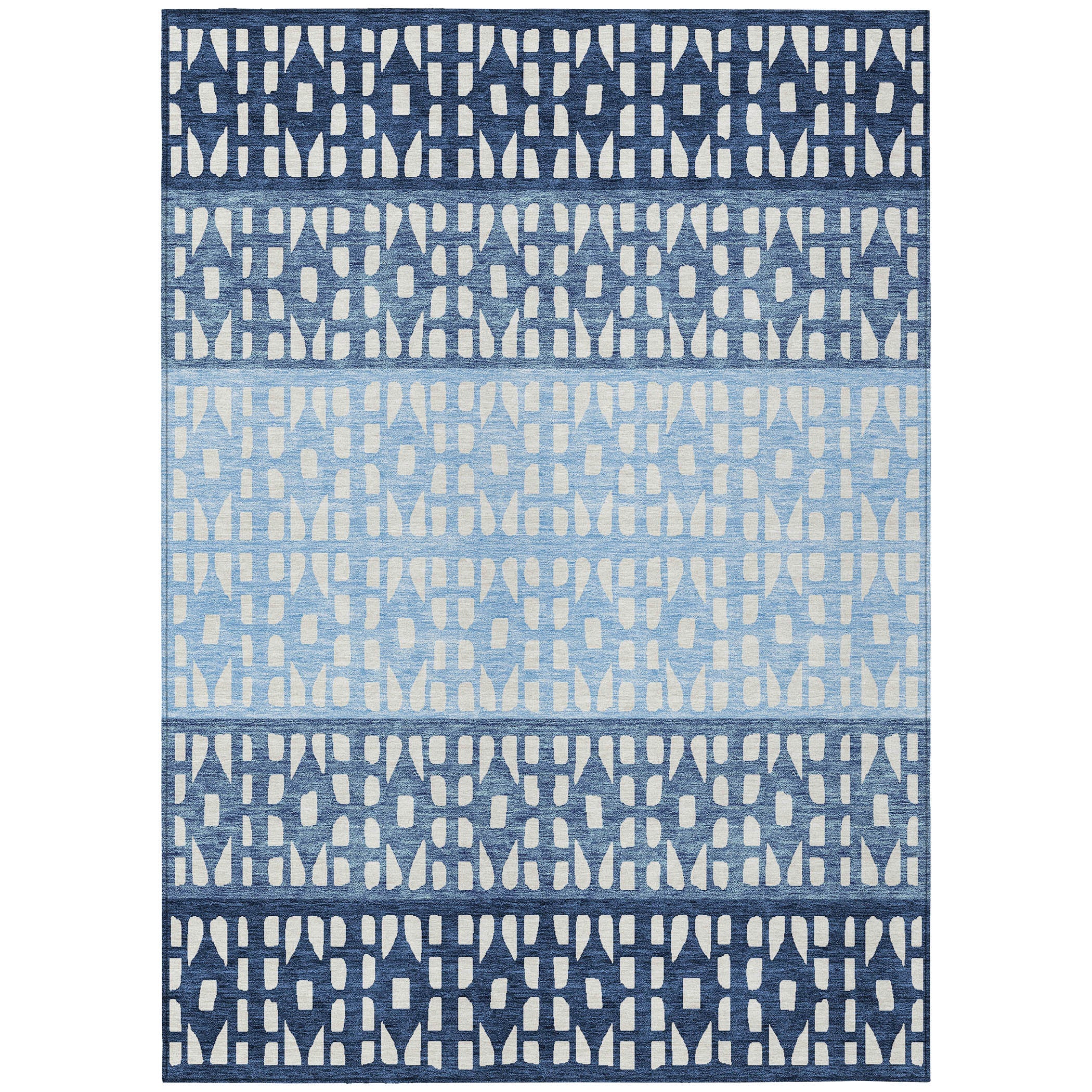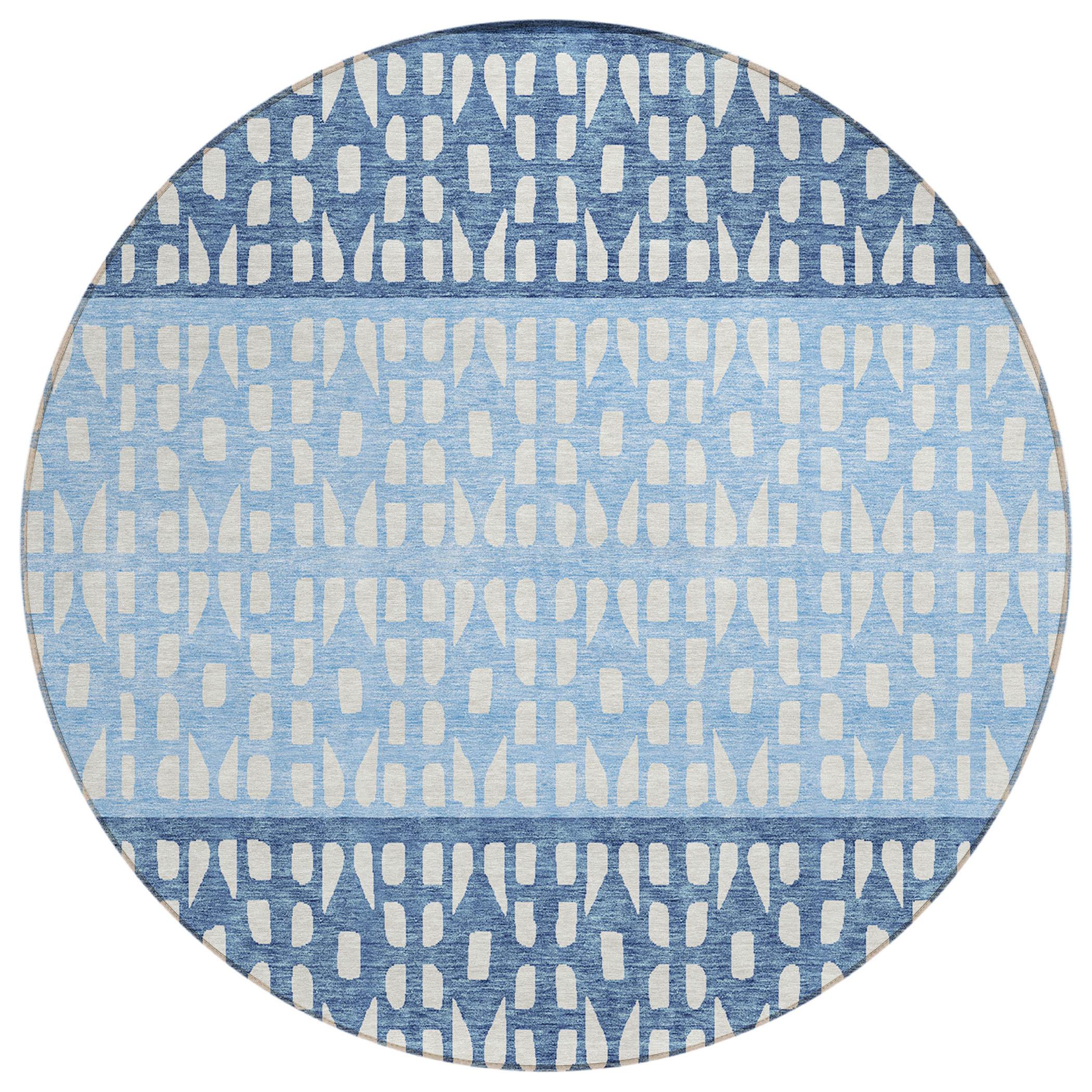 Chantille ACN964 Blue area rug, a stylish addition to your home décor. This rug features a unique design with small diamond shapes in various colors arranged in a horizontal stripe pattern, adding a touch of modern elegance to any room.