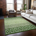 Chantille ACN964 Green area rug, a stylish addition to elevate your home decor effortlessly. This chic rug features a captivating design with an array of colors in small diamond shapes, arranged in a sophisticated horizontal stripe pattern. The perfect blend of modern and transitional style, it adds a contemporary touch to any room.