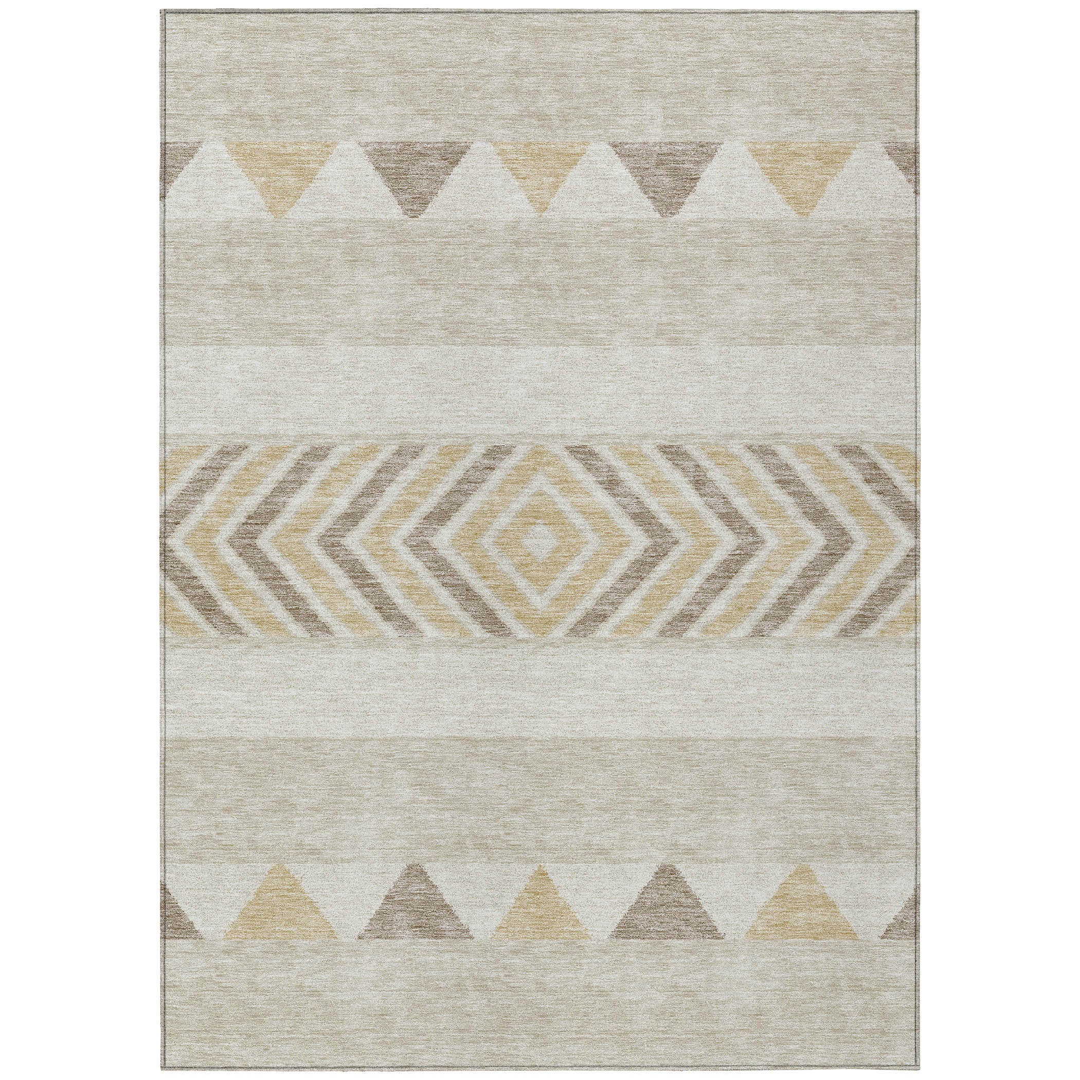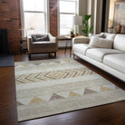 Chantille ACN965 Beige area rug, a stylish addition to any home decor. Embrace the essence of the southwest with its modern blanket motifs, perfect for adding a touch of geometric charm to transitional interiors. This rug is UV stabilized to preserve its vibrant colors and features an ultra-thin design for a contemporary look.