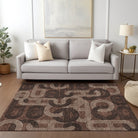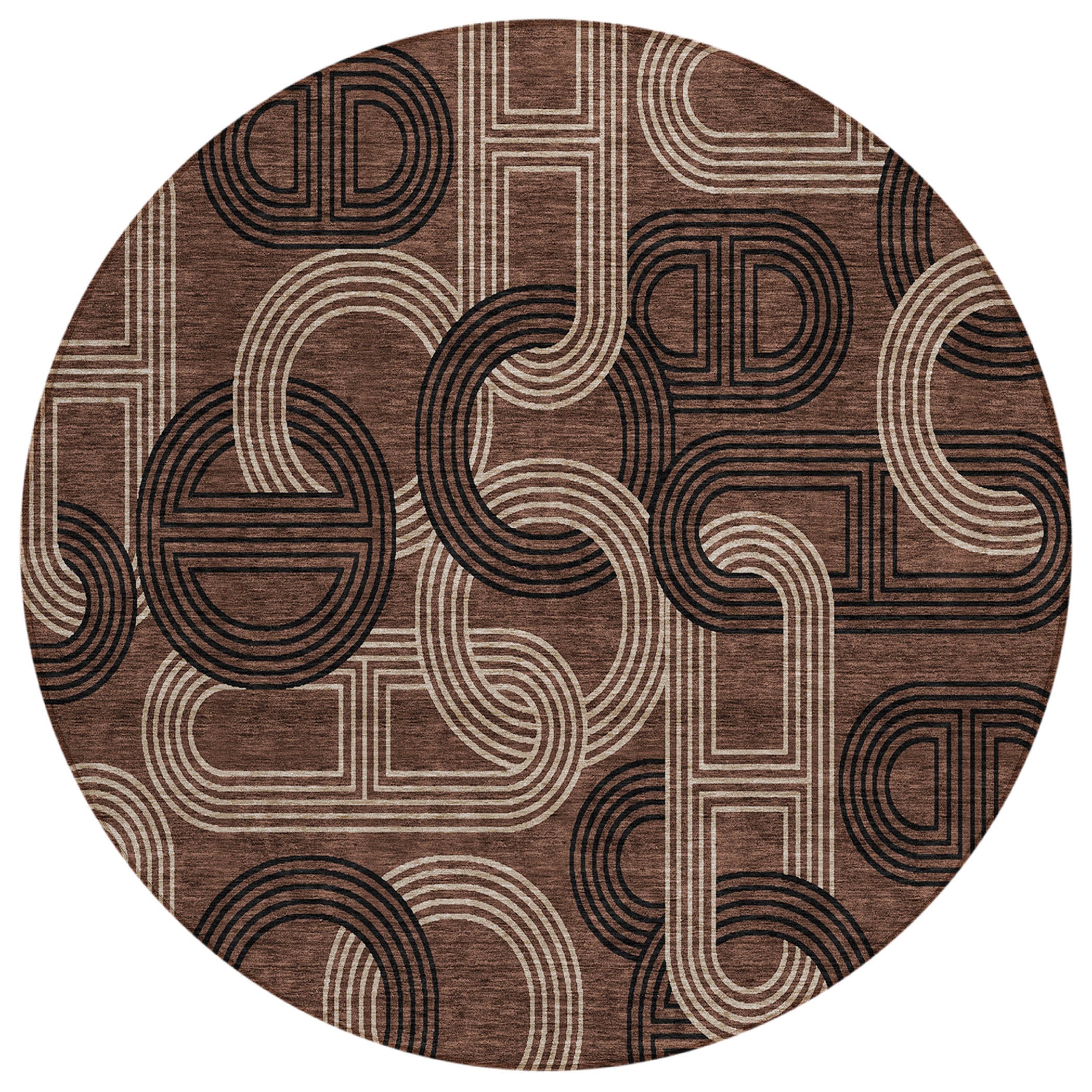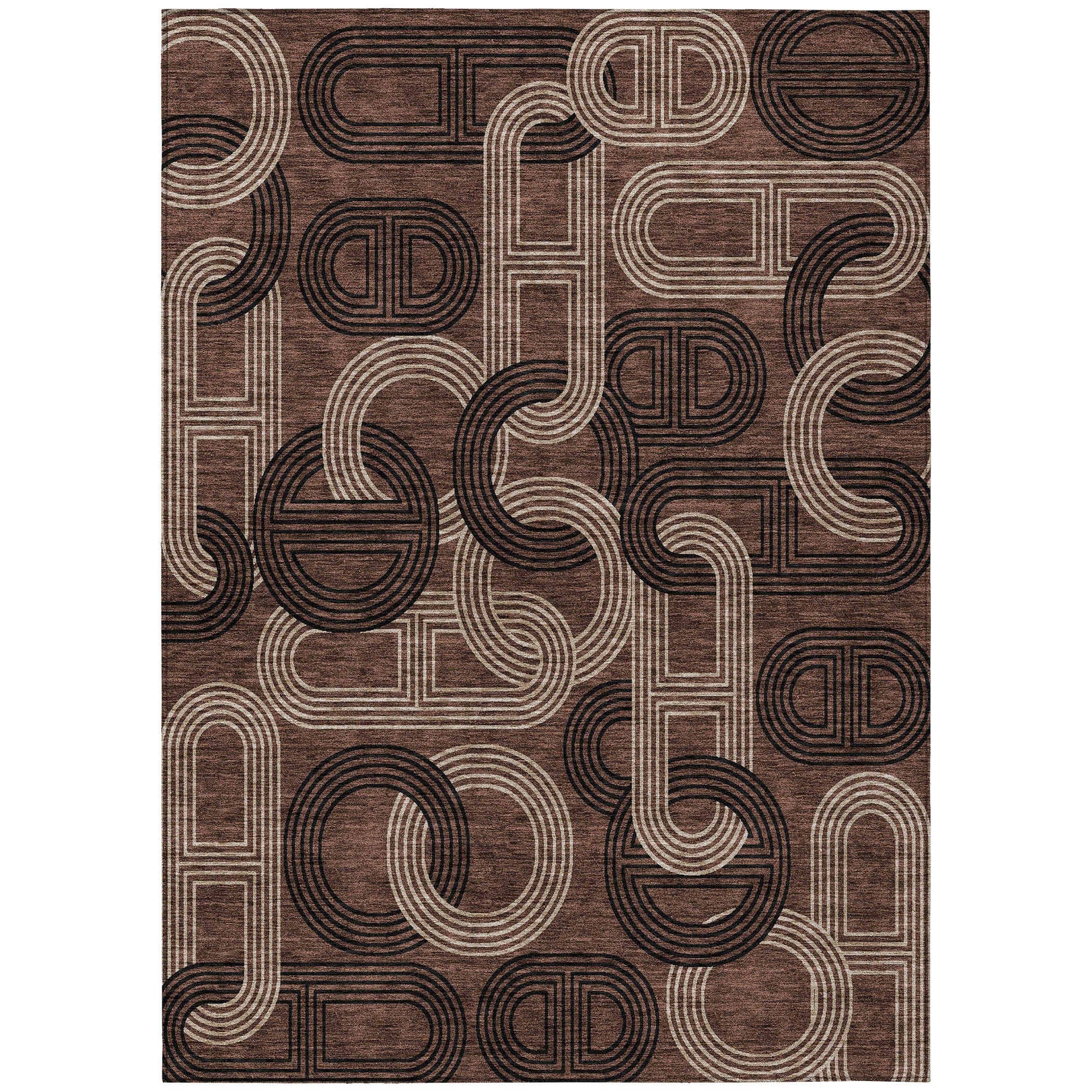 Chantille ACN967 Chocolate area rug, a perfect fusion of style and practicality. Its elegant interlocking chain-like motifs effortlessly complement any transitional decor, adding a touch of sophistication to your space. This geometric masterpiece is more than just a visual delight – it is UV stabilized to preserve its vibrant colors over time. The ultra-thin design makes it easy to place in any room, while its machine-washable feature ensures convenient maintenance.