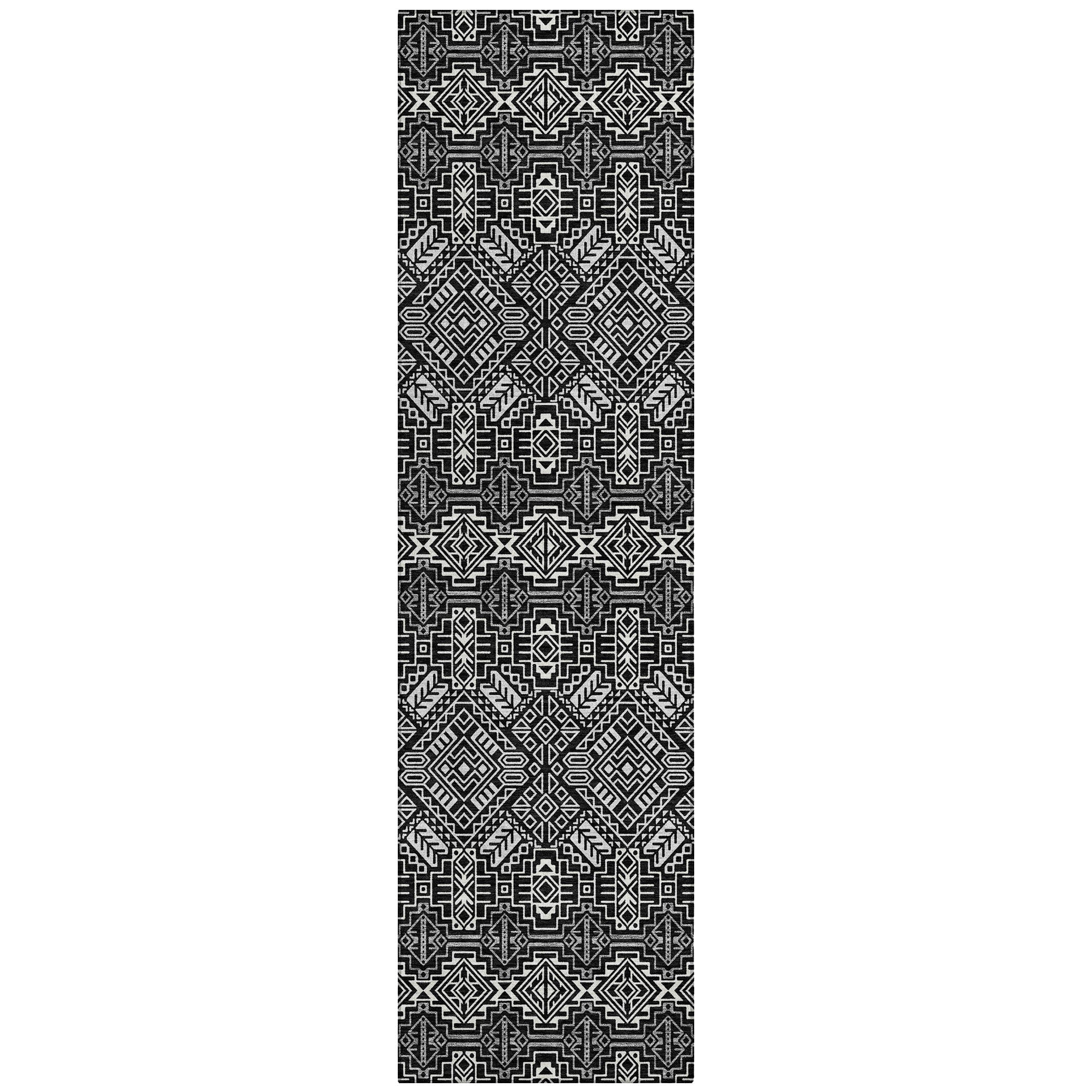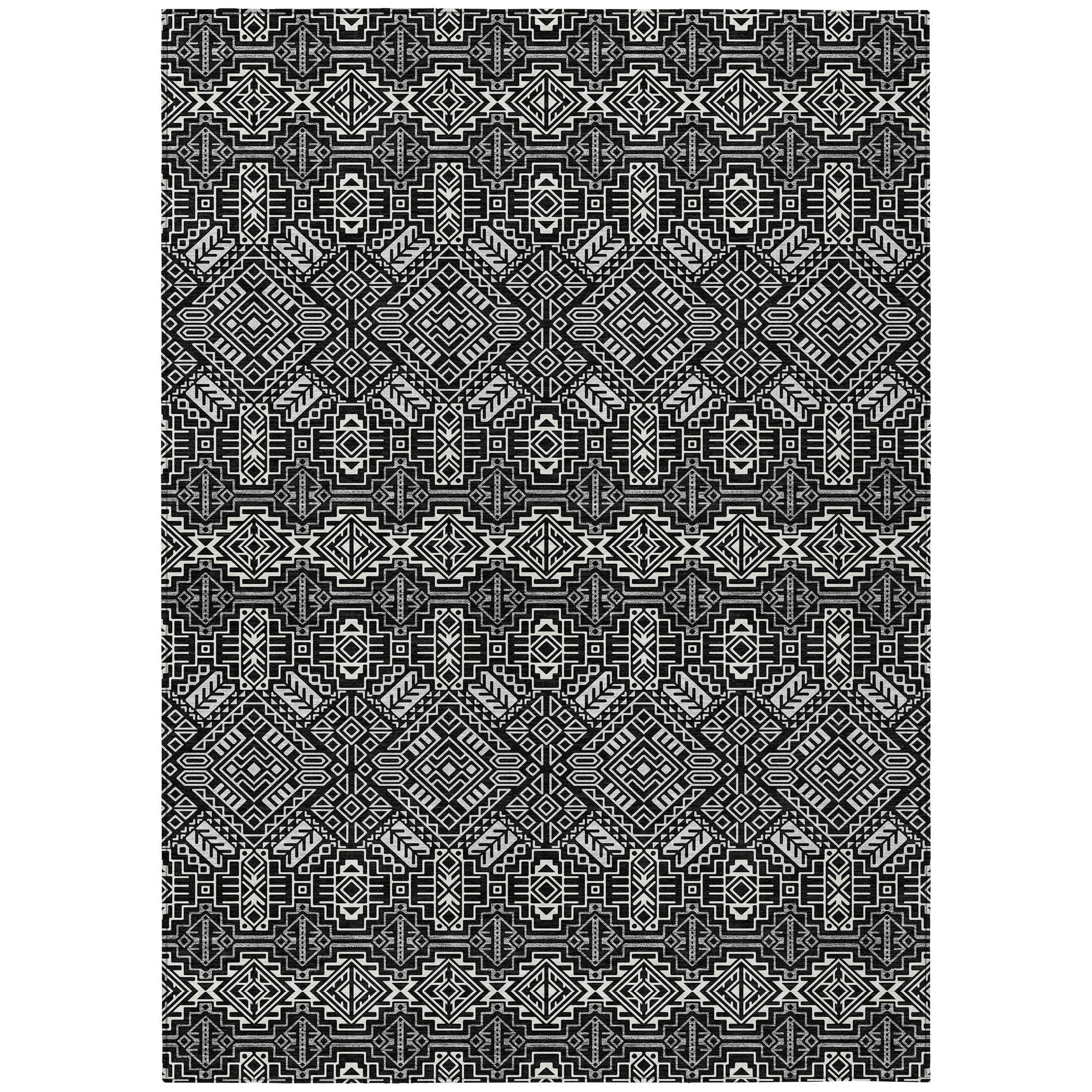 Elevate your living space with the Chantille ACN970 Black area rug. Embrace the beauty of tribal patterns that seamlessly flow in horizontal serenity, infusing a Southwest charm into your transitional decor. Crafted with UV stabilization, this rug promises enduring rich colors that won't fade over time. Its ultra-thin design effortlessly complements your interior without overpowering it, creating a harmonious balance in any room. Plus, the rug is conveniently machine-washable, making it ideal for busy households with pets and children. Bring style and functionality together with this versatile and easy-to-maintain rug for a cozy and inviting home ambiance.